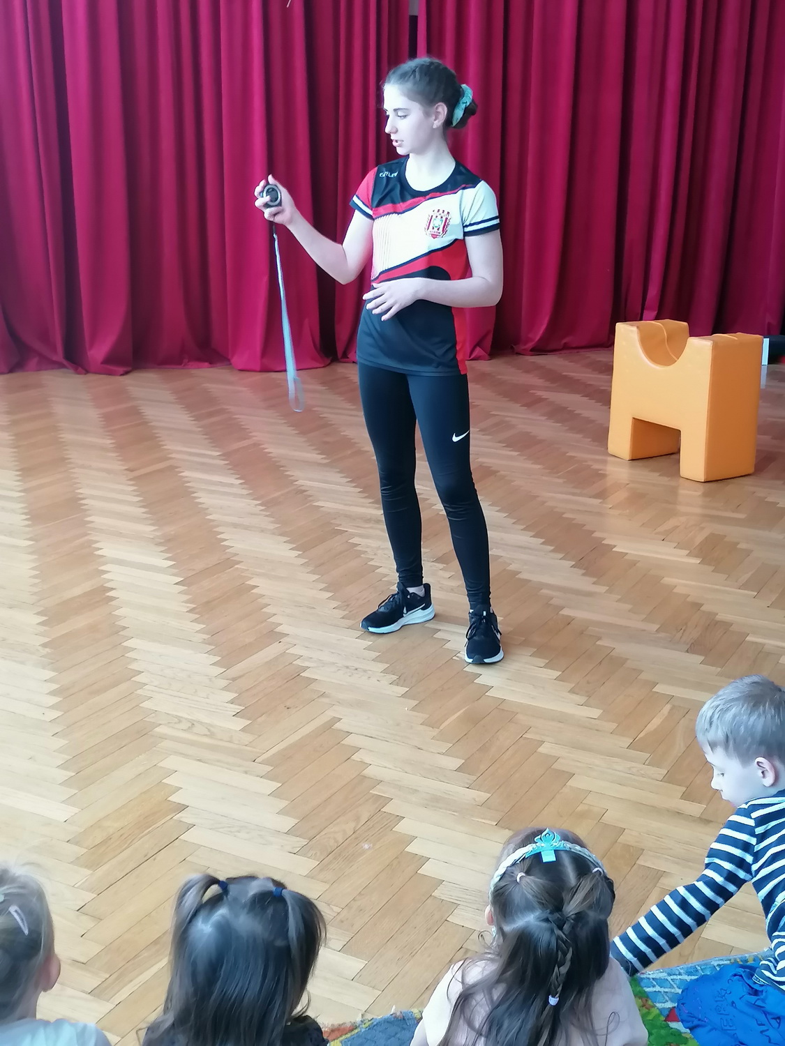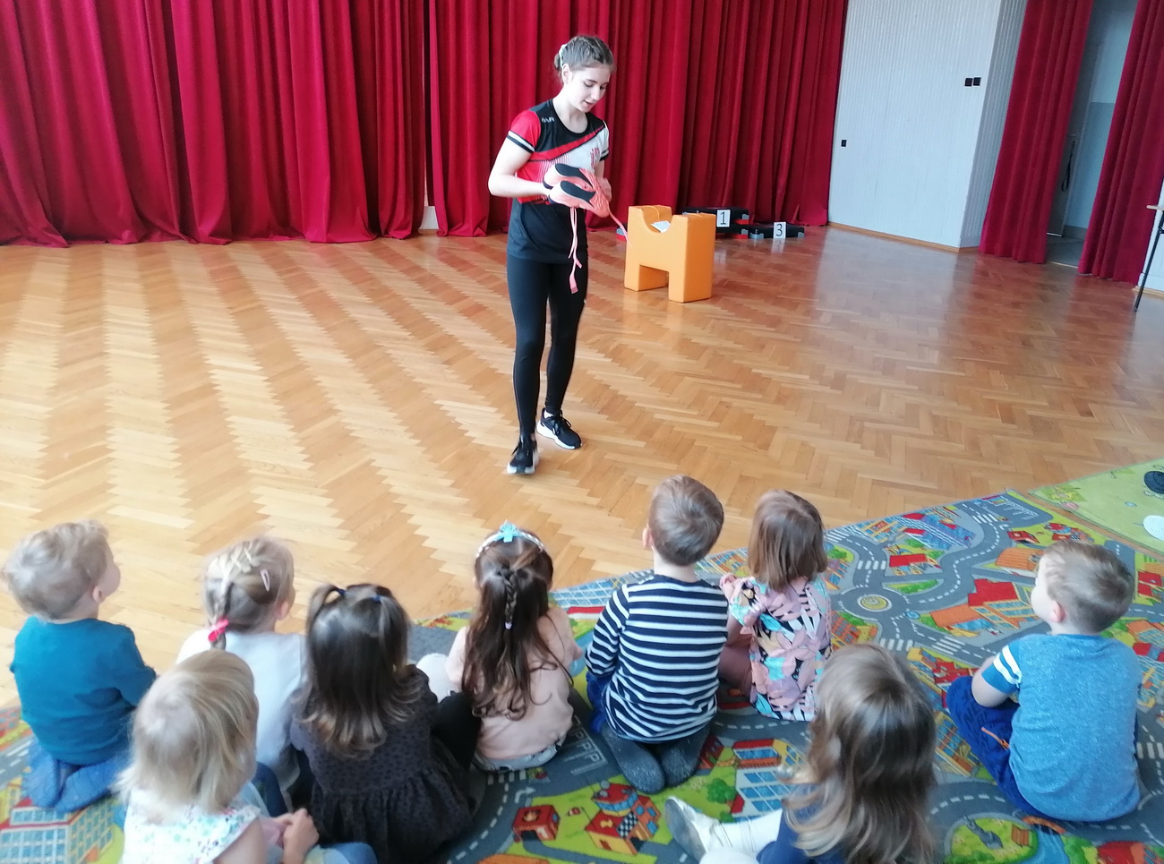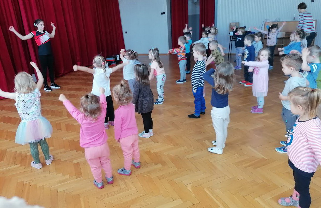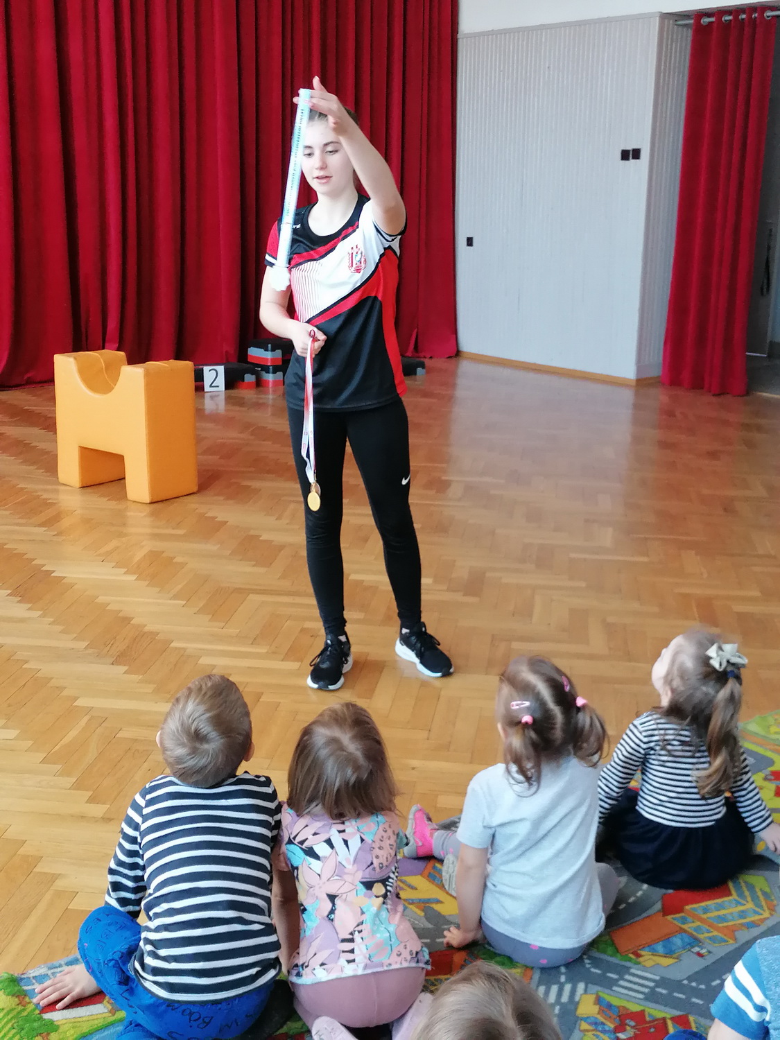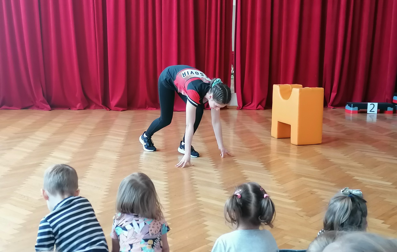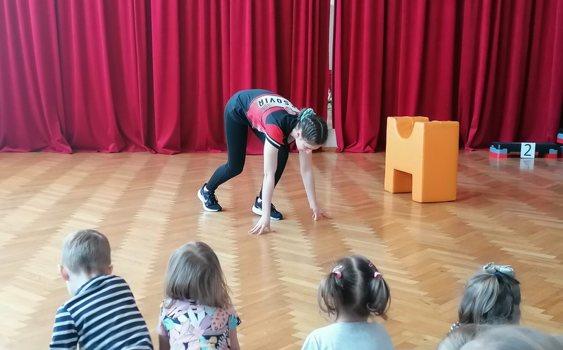 Anna opowiedziała przedszkolakom, na czym polega uprawianie lekkiej atletyki, jakiego sprzętu używa podczas treningów, jaki jest odpowiedni strój i buty (by nie narazić się na kontuzje) oraz jak przygotowuje się do zawodów. Opowiedziała również o swoich sukcesach, pokazując zdobyte medale. Podczas spotkania dzielne przedszkolaki mogły przez chwilę zobaczyć, jak wygląda wstęp do treningu, uczestnicząc w rozgrzewce poprowadzonej przez naszego gościa.