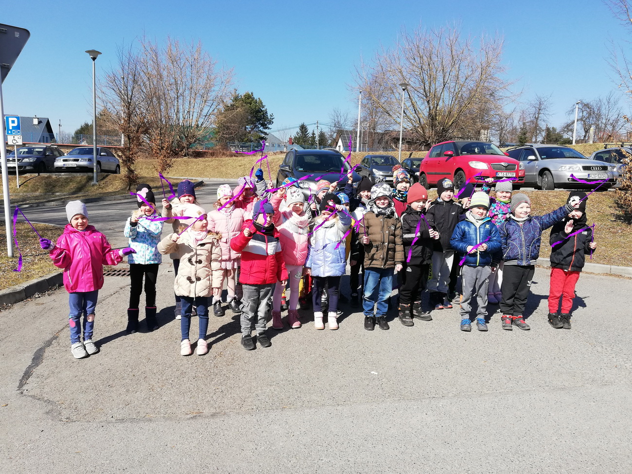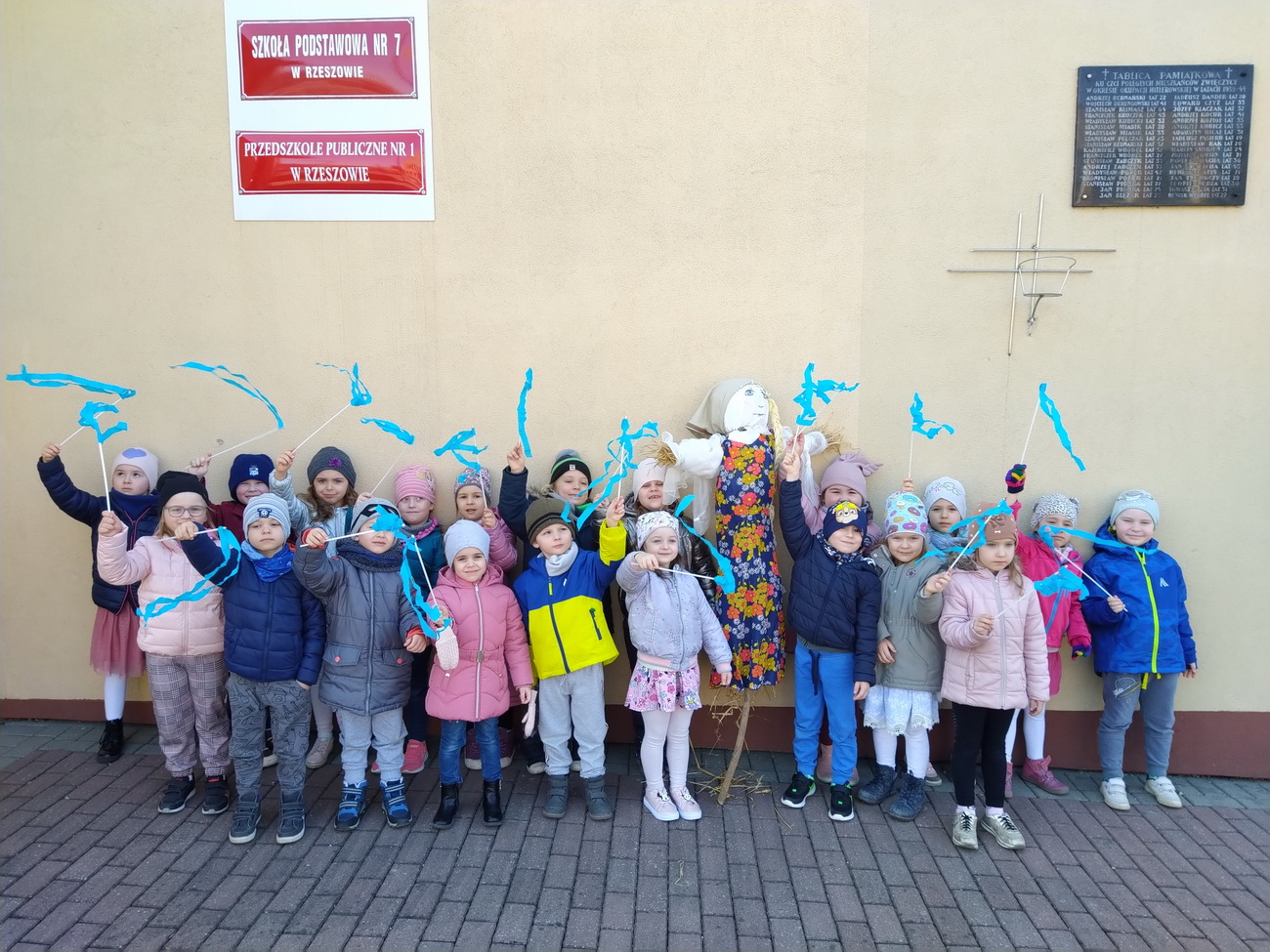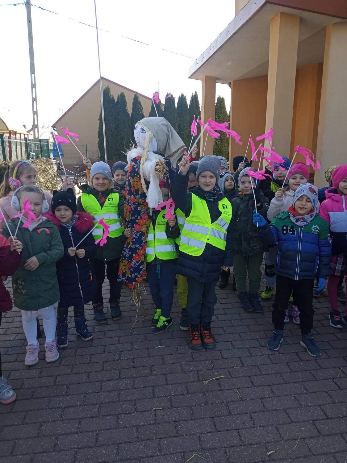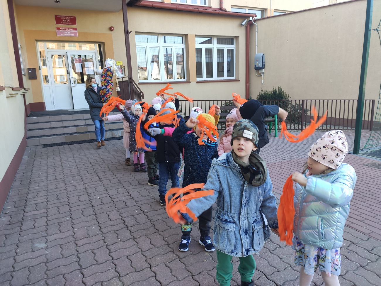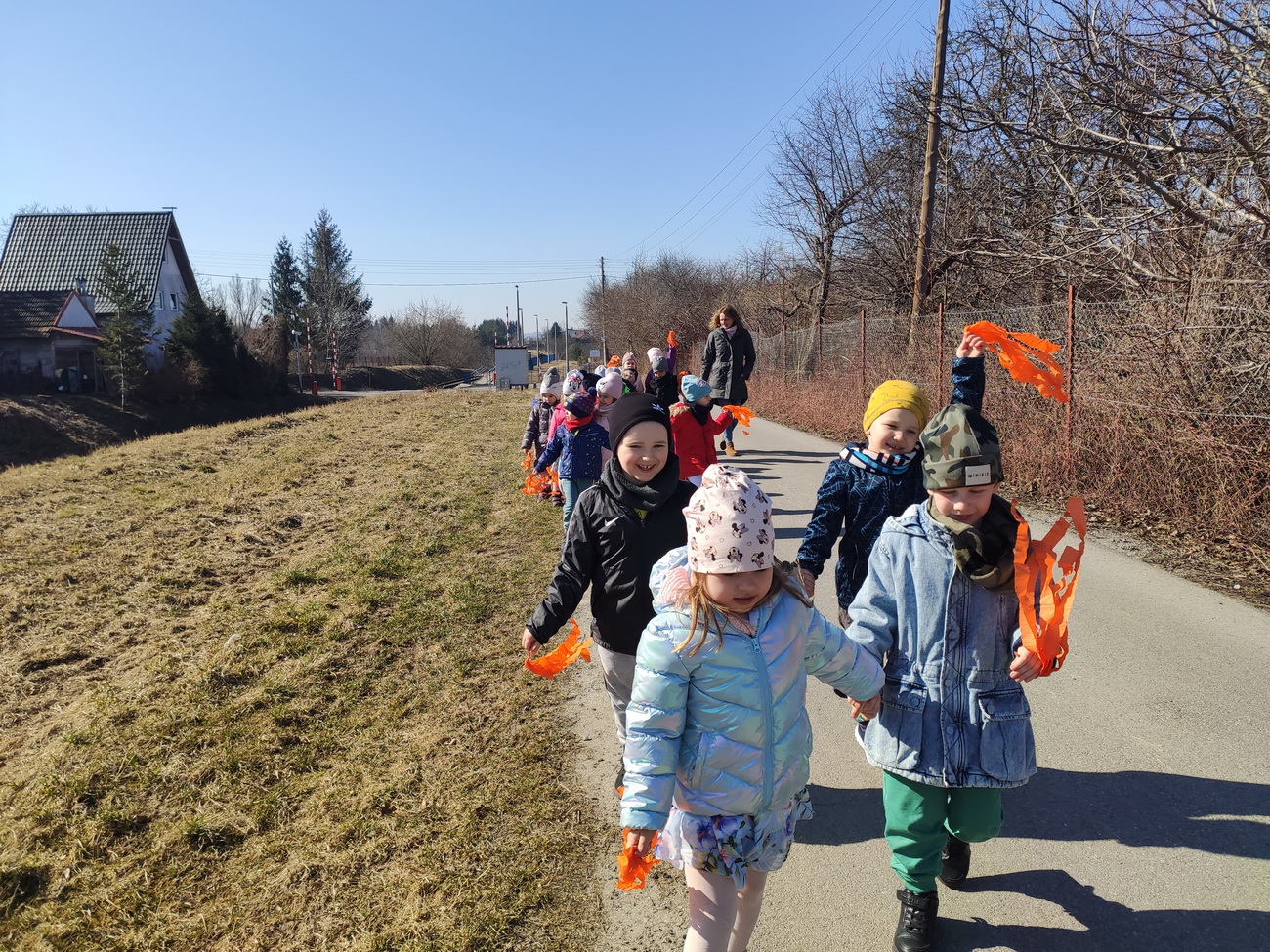 21 marca wszystkie grupy z przedszkola wzięły udział w “Zielonym korowodzie”, aby powitać nową porę roku – wiosnę. Zgodnie z tradycją, na czele korowodu stanęła marzanna, czyli symbol pożegnania zimy. Dzieci śpiewały piosenki o pani wiośnie i obserwowały bogactwa budzącej się do życia przyrody. Wcześniej każda grupa przygotowała kolorowe gaiki z bibułki. Wymachując nimi, dzieci głośno powtarzały, że “żegnają zimę, witają wiosnę”. Podczas przemarszu wszyscy poczuli pierwsze promyki wiosennego słońca. Oby zostały z nami na dłużej.