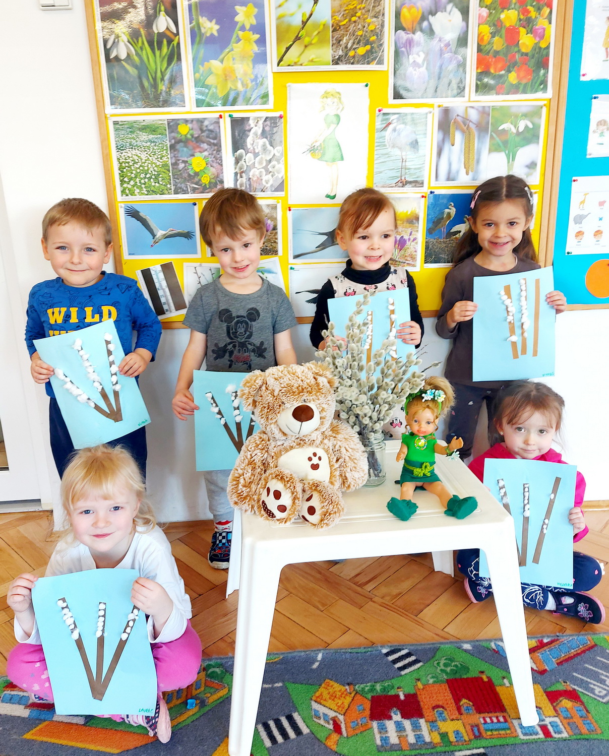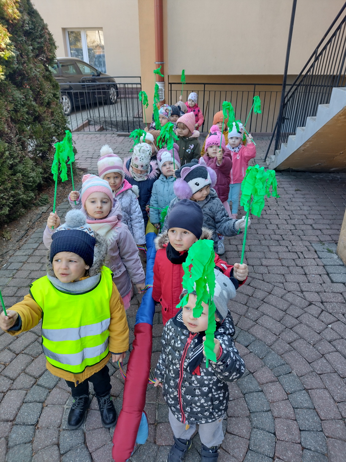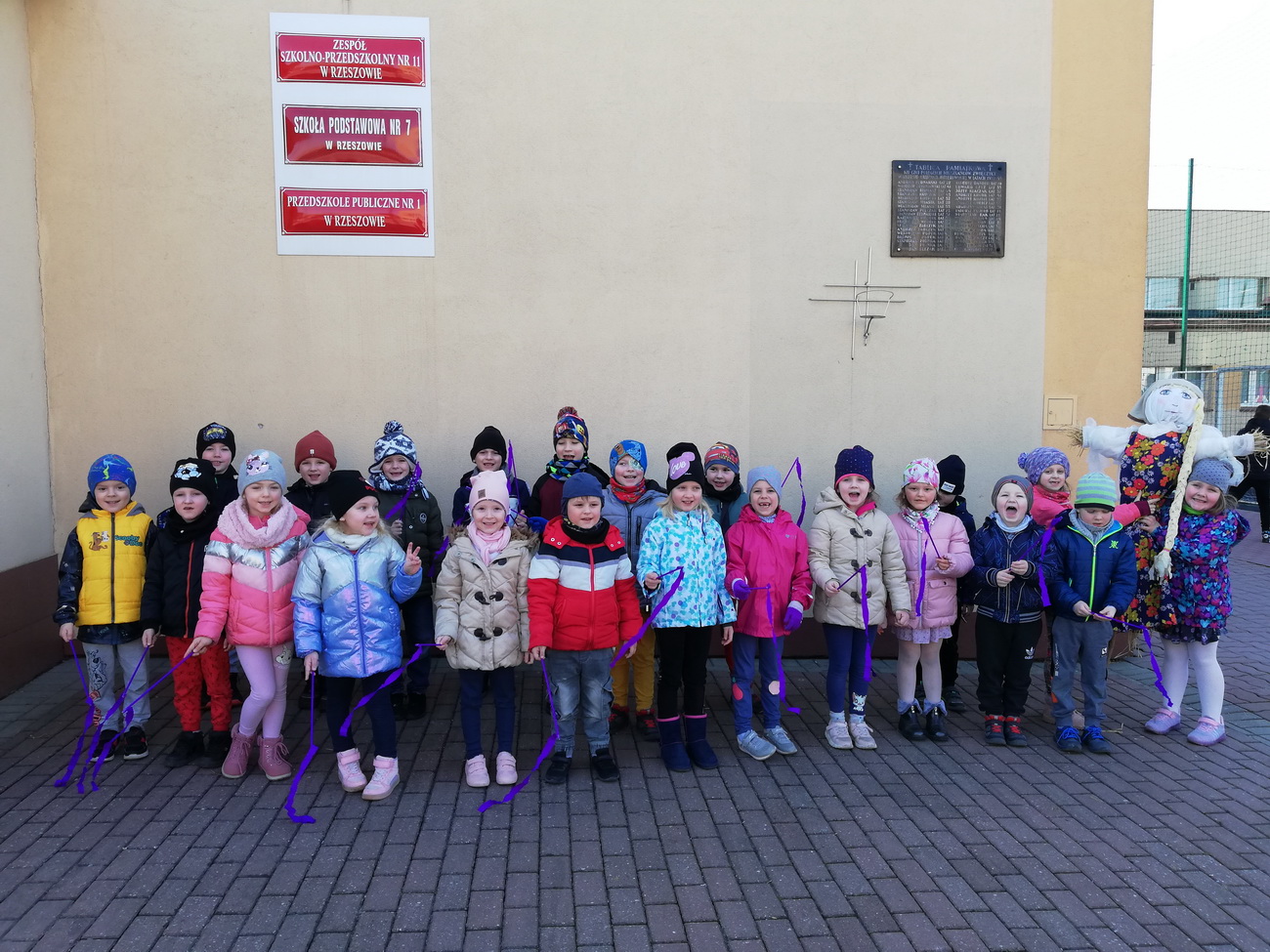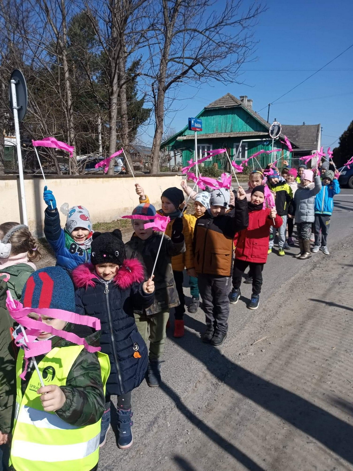 21 marca wszystkie grupy z przedszkola wzięły udział w “Zielonym korowodzie”, aby powitać nową porę roku – wiosnę. Zgodnie z tradycją, na czele korowodu stanęła marzanna, czyli symbol pożegnania zimy. Dzieci śpiewały piosenki o pani wiośnie i obserwowały bogactwa budzącej się do życia przyrody. Wcześniej każda grupa przygotowała kolorowe gaiki z bibułki. Wymachując nimi, dzieci głośno powtarzały, że “żegnają zimę, witają wiosnę”. Podczas przemarszu wszyscy poczuli pierwsze promyki wiosennego słońca. Oby zostały z nami na dłużej.