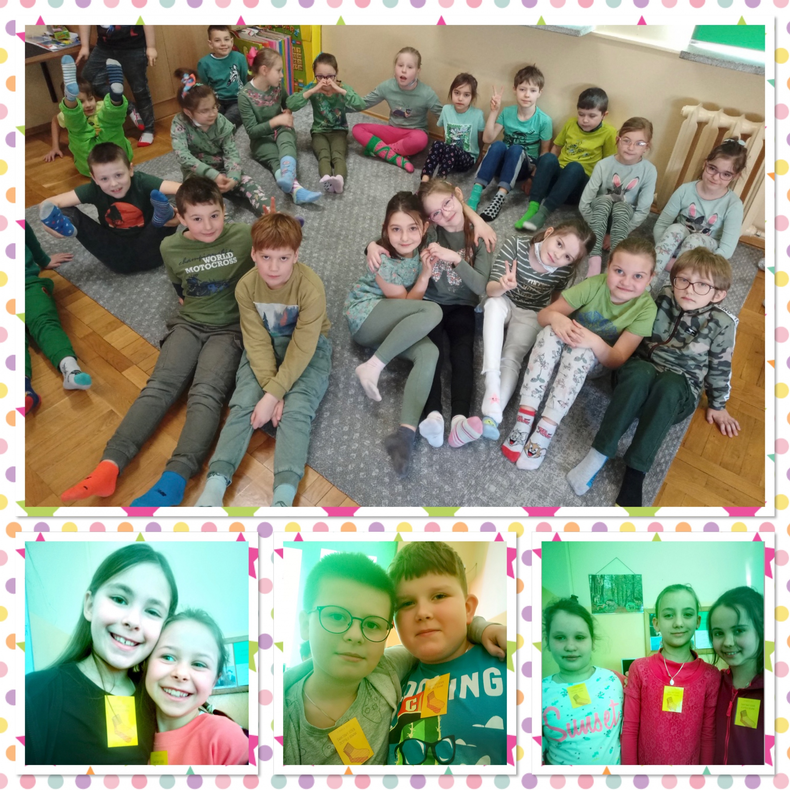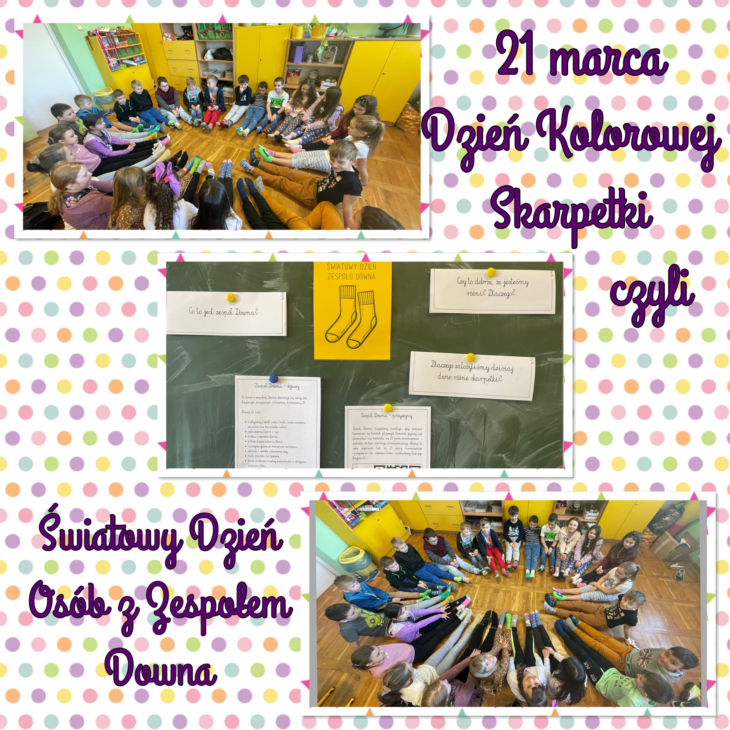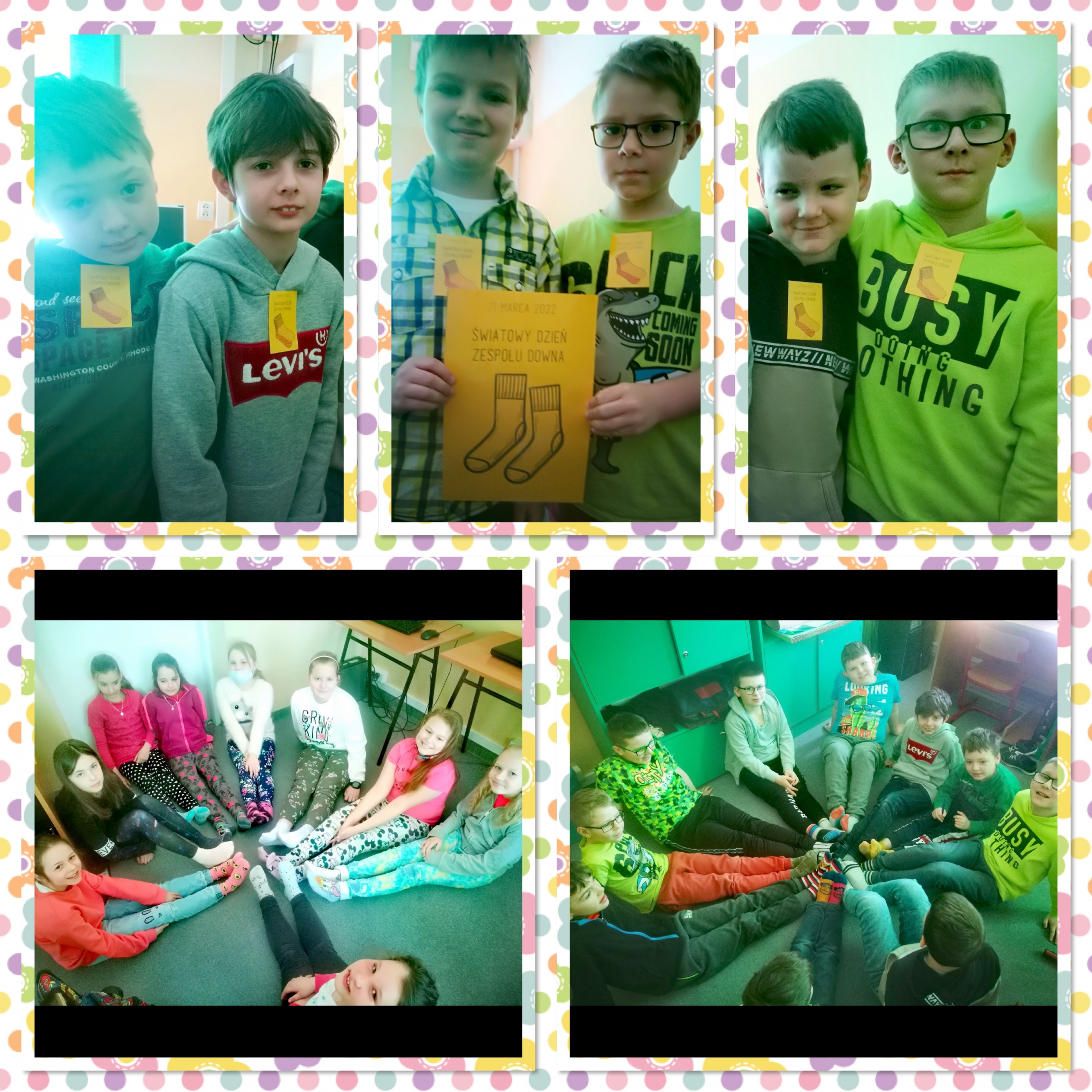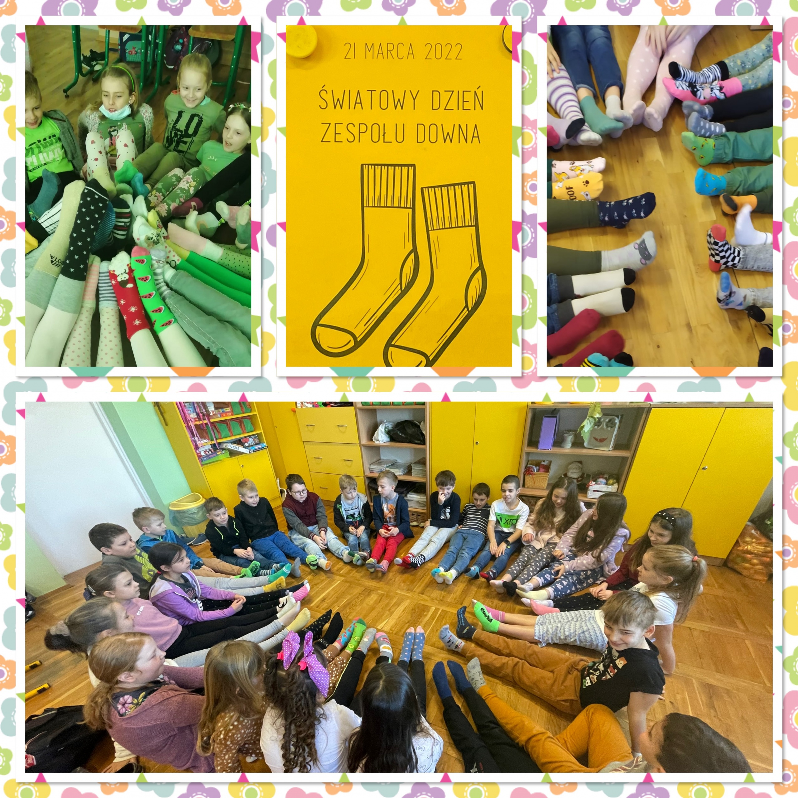 Uczniowie klas 1-3 w dniu 21 marca obchodzili Światowy Dzień Zespołu Downa, nazywany również Dniem Kolorowej Skarpetki. Kolorowe skarpetki nie do pary są symbolem niedopasowania społecznego i genotypowego, z jakim borykają się osoby z zespołem Downa.