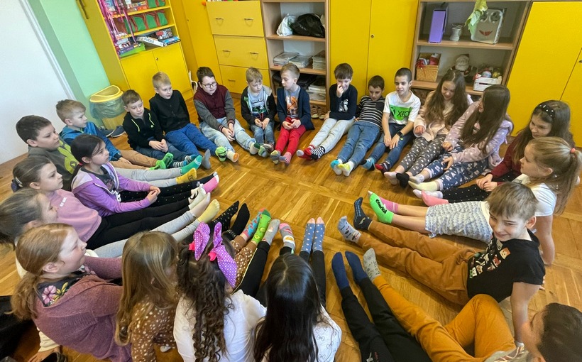 Uczniowie w trakcie zajęć dowiedzieli się o przyczynach i objawach zespołu Downa, a na znak solidarności założyli kolorowe skarpetki.
