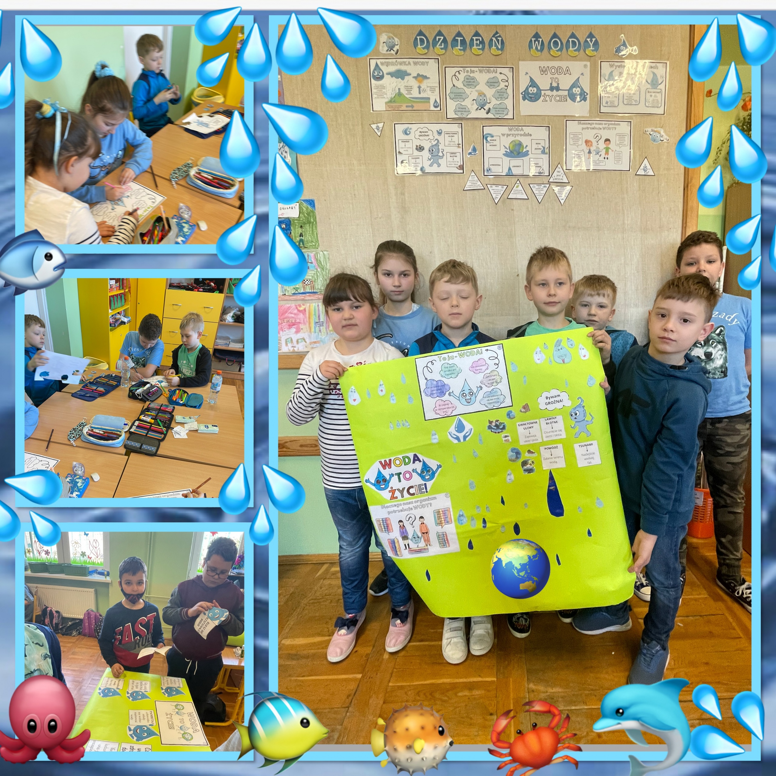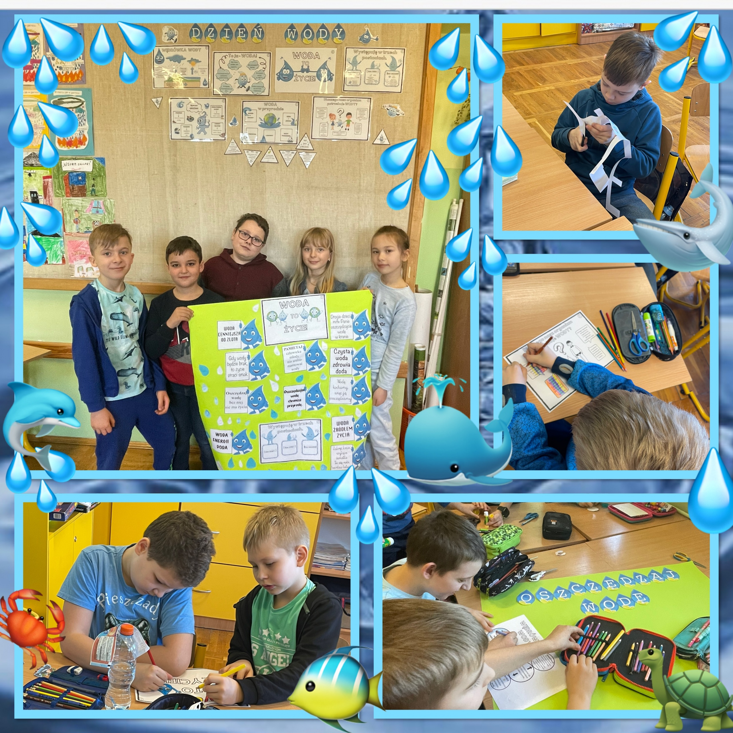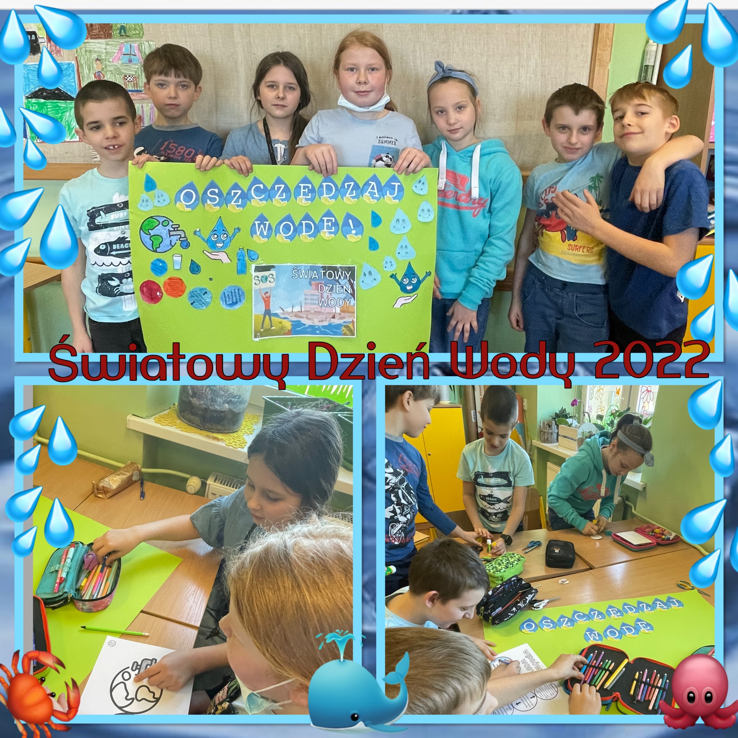 22 marca na świecie obchodzony jest Dzień Wody. W naszej szkole celebrowaliśmy go wspólnie z Polską Akcją Humanitarną pod hasłem “Oszczędzanie wody to za mało”. Korzystając z przygotowanych materiałów, uczniowie klas 1-3 oglądali filmy edukacyjne, rozwiązywali quiz, odpowiadali na pytania czy przygotowywali  plakaty. Tego dnia wszyscy ubrali się na niebiesko, aby podkreślić, jak ważna jest dla nas woda, zaś zajęcia z pewnością podniosły świadomość na temat globalnych wodnych wyzwań.