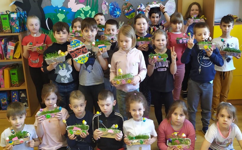 Nikt z nas nie wyobraża sobie Wielkanocy bez jej tradycji i symboli – pisanek, baranka, zajączka, wielkanocnej baby czy mazurka. W naszej szkole najmłodsze klasy z okazji Świąt Wielkanocnych przygotowywały dekoracje, pisanki oraz siały owies i rzeżuchę. Nasi uczniowie przypominali wielkanocne zwyczaje, jak np. chodzenie z gaikiem czy kogutkiem. Klasy 2b i 3b podjęły wyzwanie, aby spełnić marzenie siostry naszego absolwenta i wykonały dla niej kartki świąteczne, które zostały wysłane.