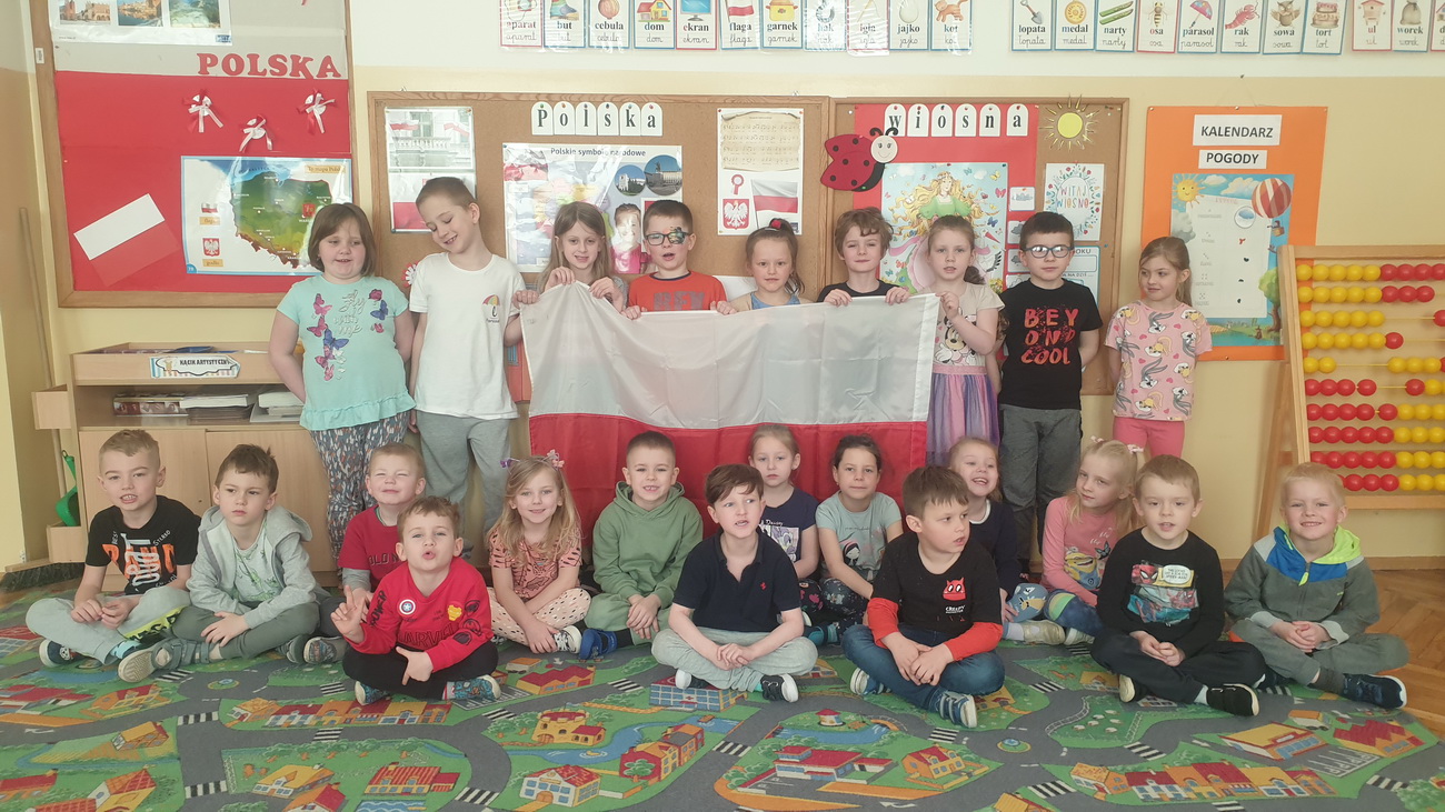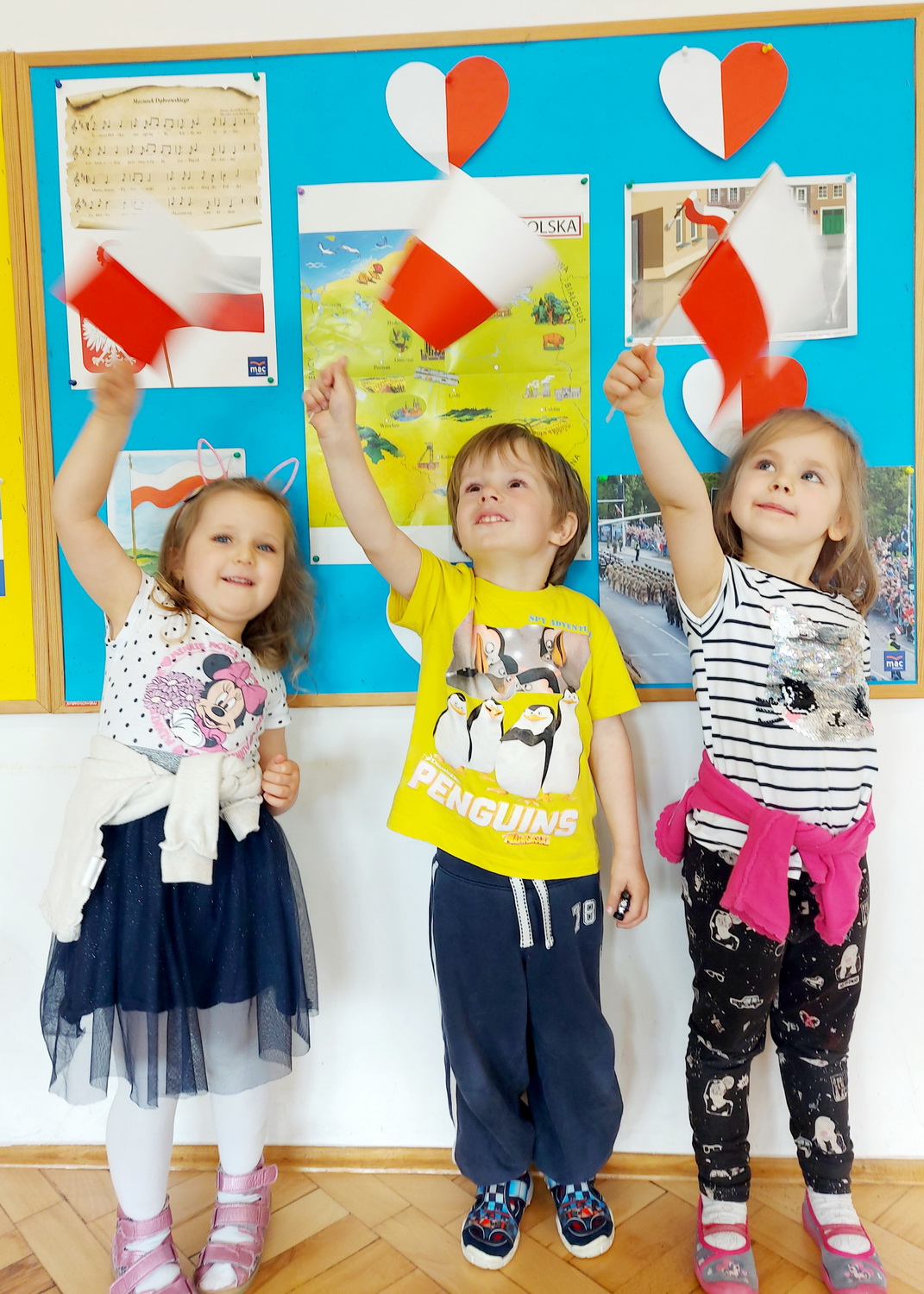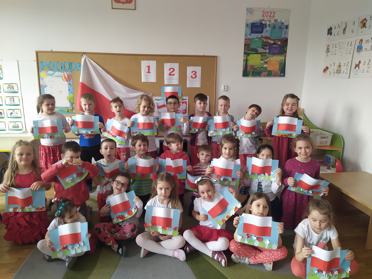2 maja obchodzony jest Dzień Flagi Rzeczypospolitej Polskiej. My także postanowiliśmy uczcić to wyjątkowe święto. Aby pogłębić u dzieci emocjonalny stosunek do Ojczyzny, na początku maja w każdej grupie zrealizowane zostały treści o tematyce patriotycznej. Przedszkolaki w czasie zajęć miały okazję przypomnieć sobie symboliczną wymowę barw polskiej flagi. Ponadto najstarsza grupa przedszkolna, Misie, 5 maja wzięła udział w uroczystości „Przedszkolaki z Biało-czerwoną”.