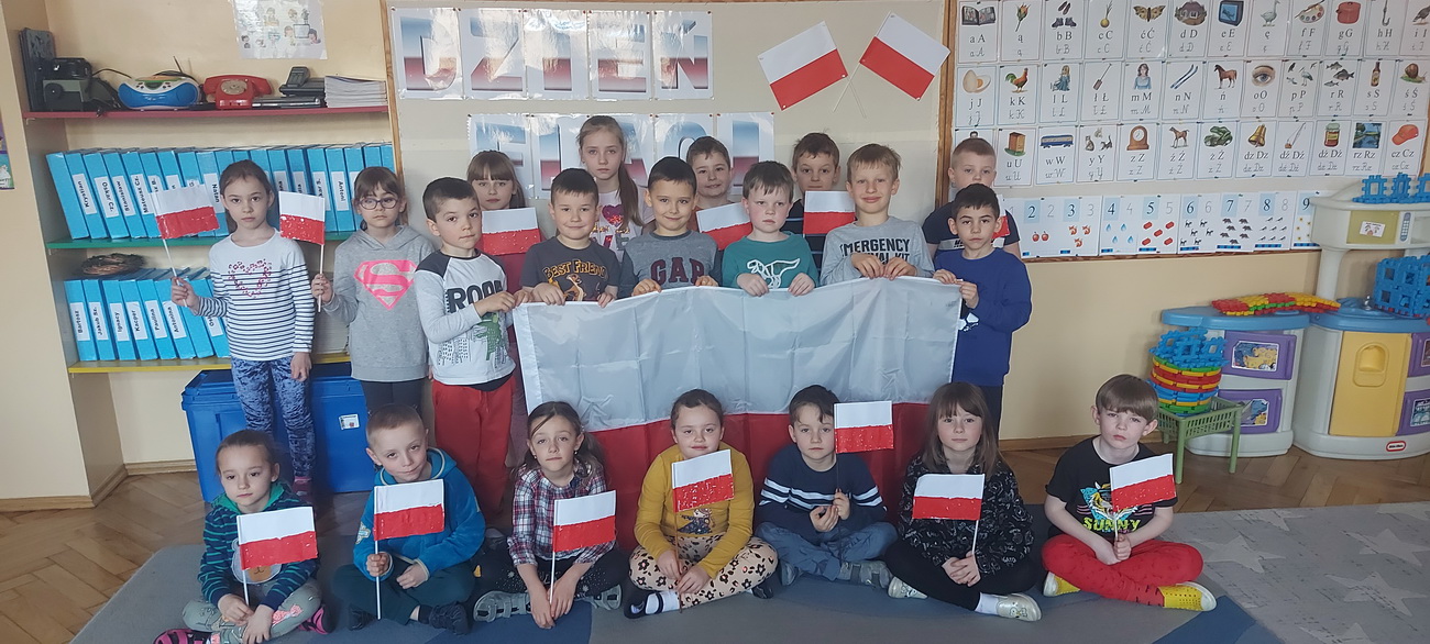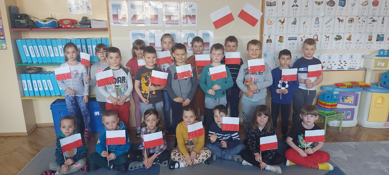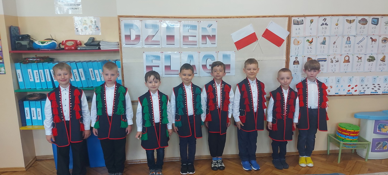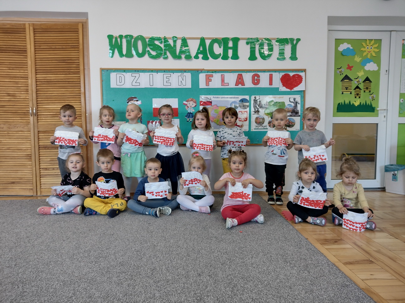 2 maja obchodzony jest Dzień Flagi Rzeczypospolitej Polskiej. My także postanowiliśmy uczcić to wyjątkowe święto. Aby pogłębić u dzieci emocjonalny stosunek do Ojczyzny, na początku maja w każdej grupie zrealizowane zostały treści o tematyce patriotycznej. Przedszkolaki w czasie zajęć miały okazję przypomnieć sobie symboliczną wymowę barw polskiej flagi. Ponadto najstarsza grupa przedszkolna, Misie, 5 maja wzięła udział w uroczystości „Przedszkolaki z Biało-czerwoną”.