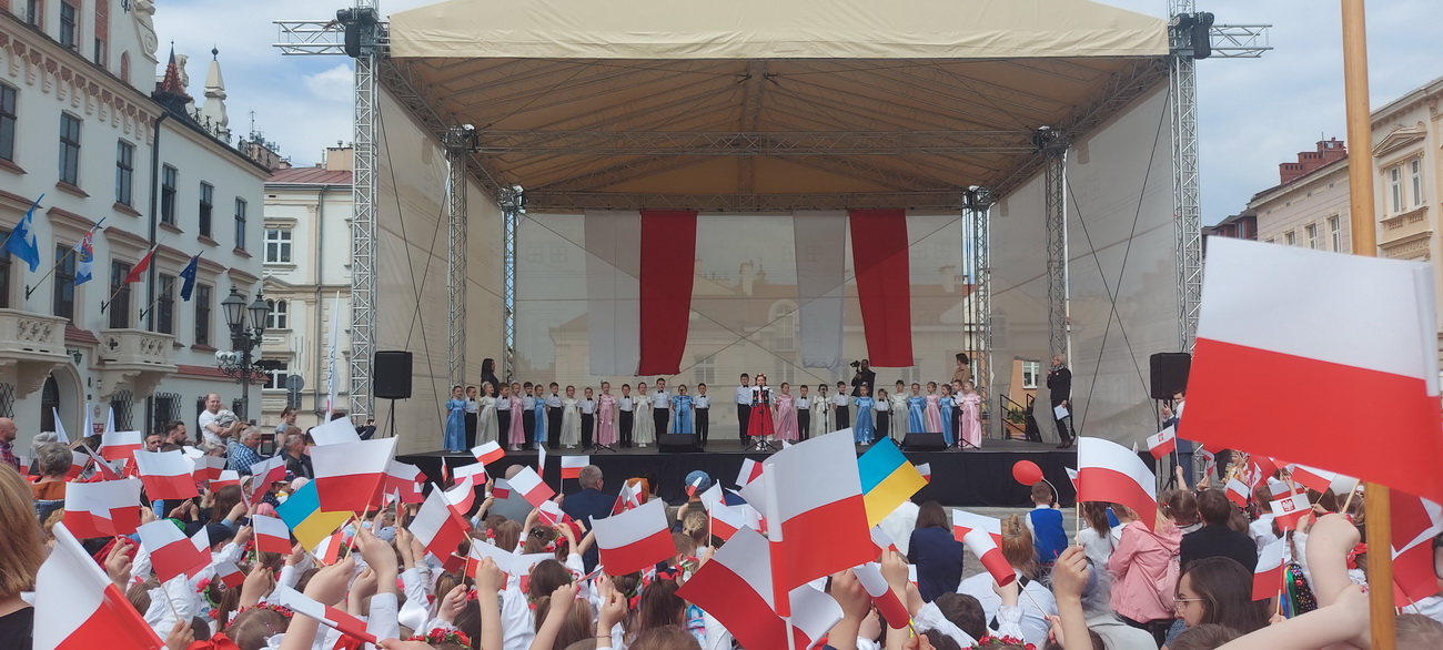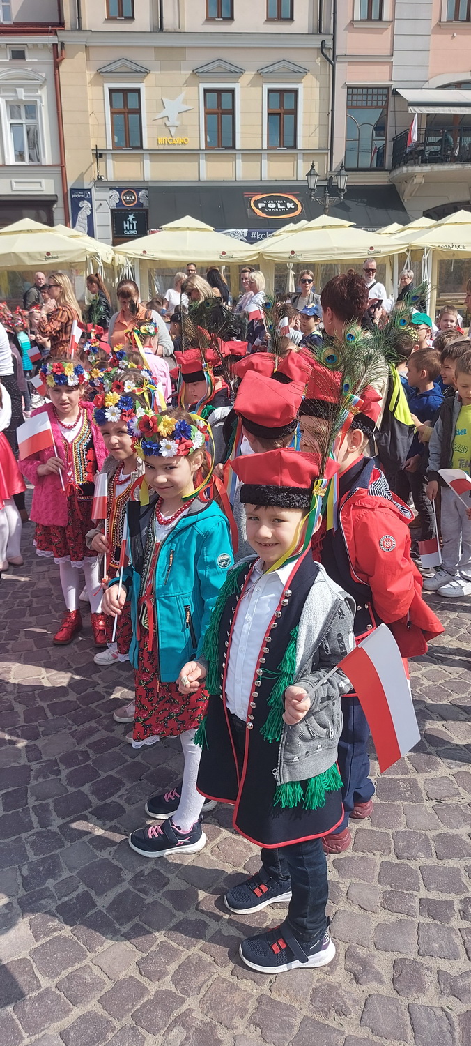 Już po raz dwunasty dzieci z rzeszowskich przedszkoli spotkały się na rzeszowskim Rynku, aby uczcić Święto Flagi, recytując wspólnie wiersze, a także śpiewając piosenki o tematyce patriotycznej. W dłoniach przedszkolaków powiewały biało–czerwone chorągiewki. W ten sposób najmłodsi wyrazili swoją przynależność narodową oraz szacunek do symboli narodowych. Nasi wychowankowie założyli na tą uroczystość stroje krakowskie, zakupione z funduszy zebranych podczas kiermaszy świątecznych (zorganizowanych we współpracy z Radą Rodziców naszego przedszkola).