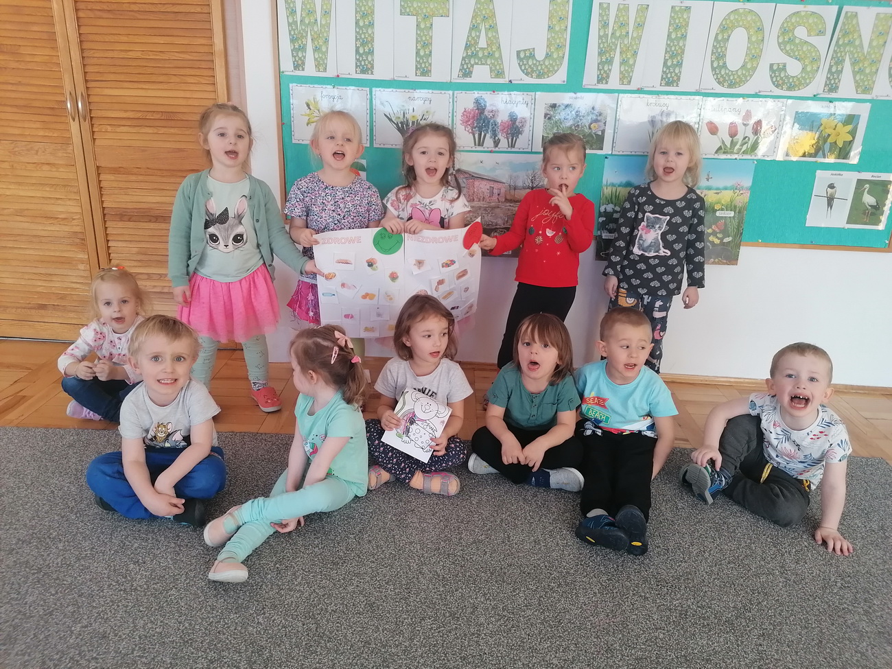 Od lutego do kwietnia bieżącego roku w grupie Żabki i Słoneczka realizowana była Innowacja pedagogiczna „Zdrowa i żwawa przedszkolna gromada”, której głównym celem było planowanie nawyków zdrowego odżywania się i promocja aktywności fizycznej u dzieci.