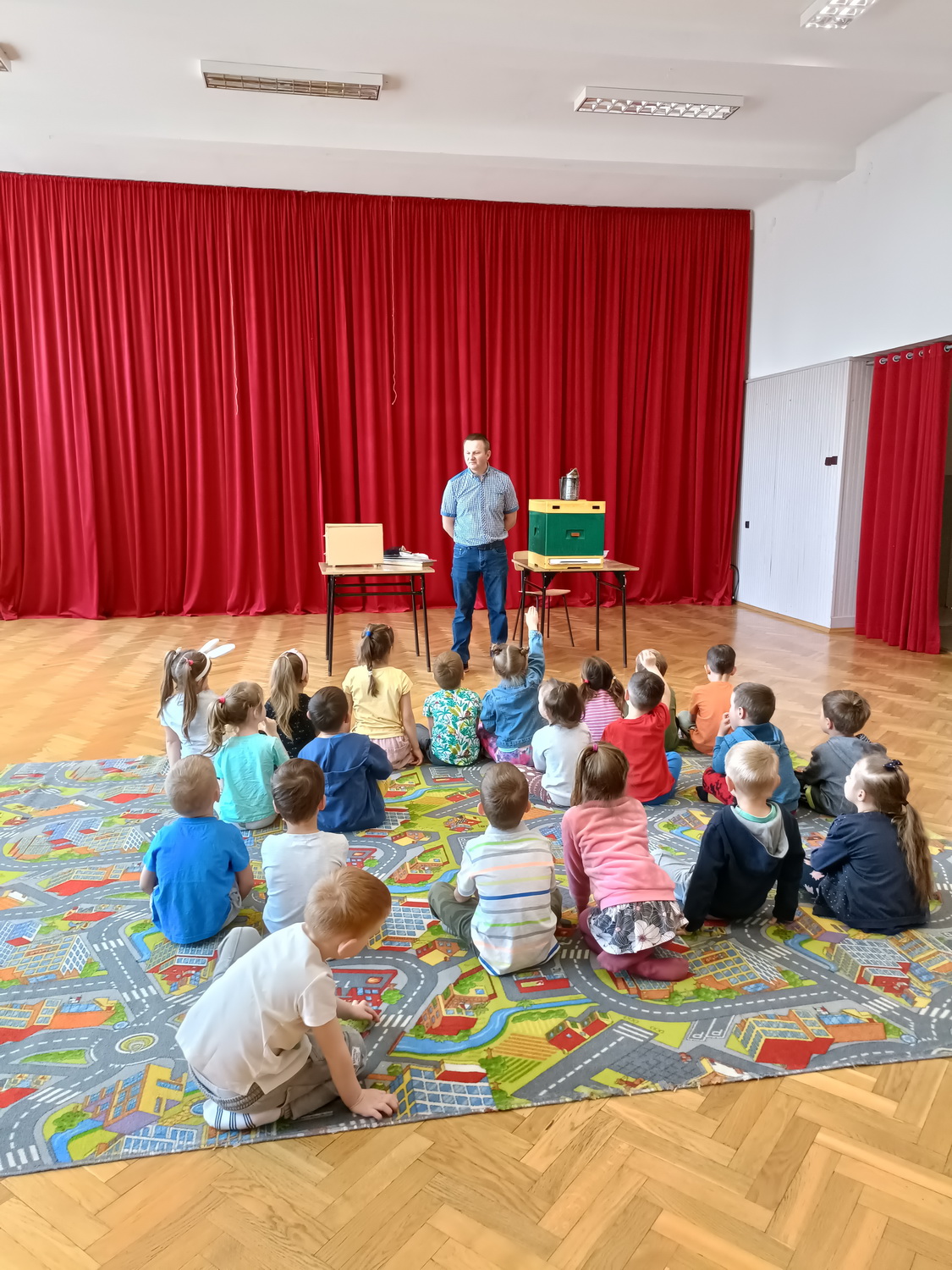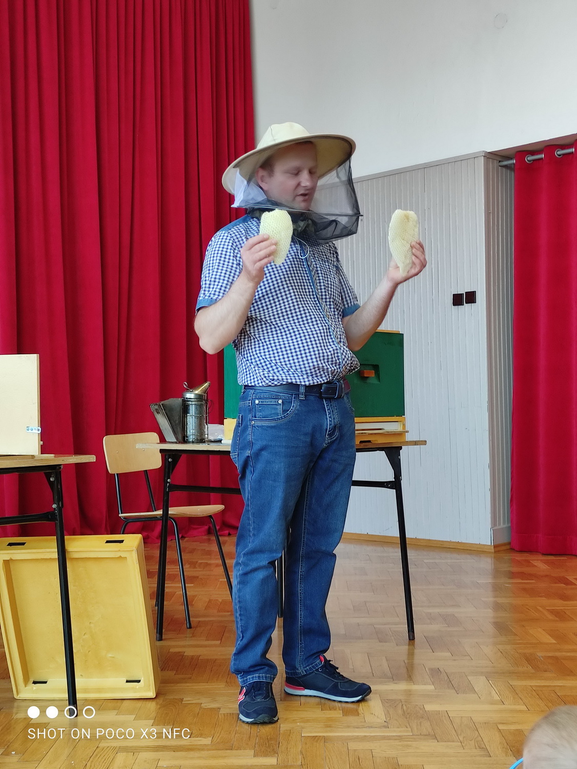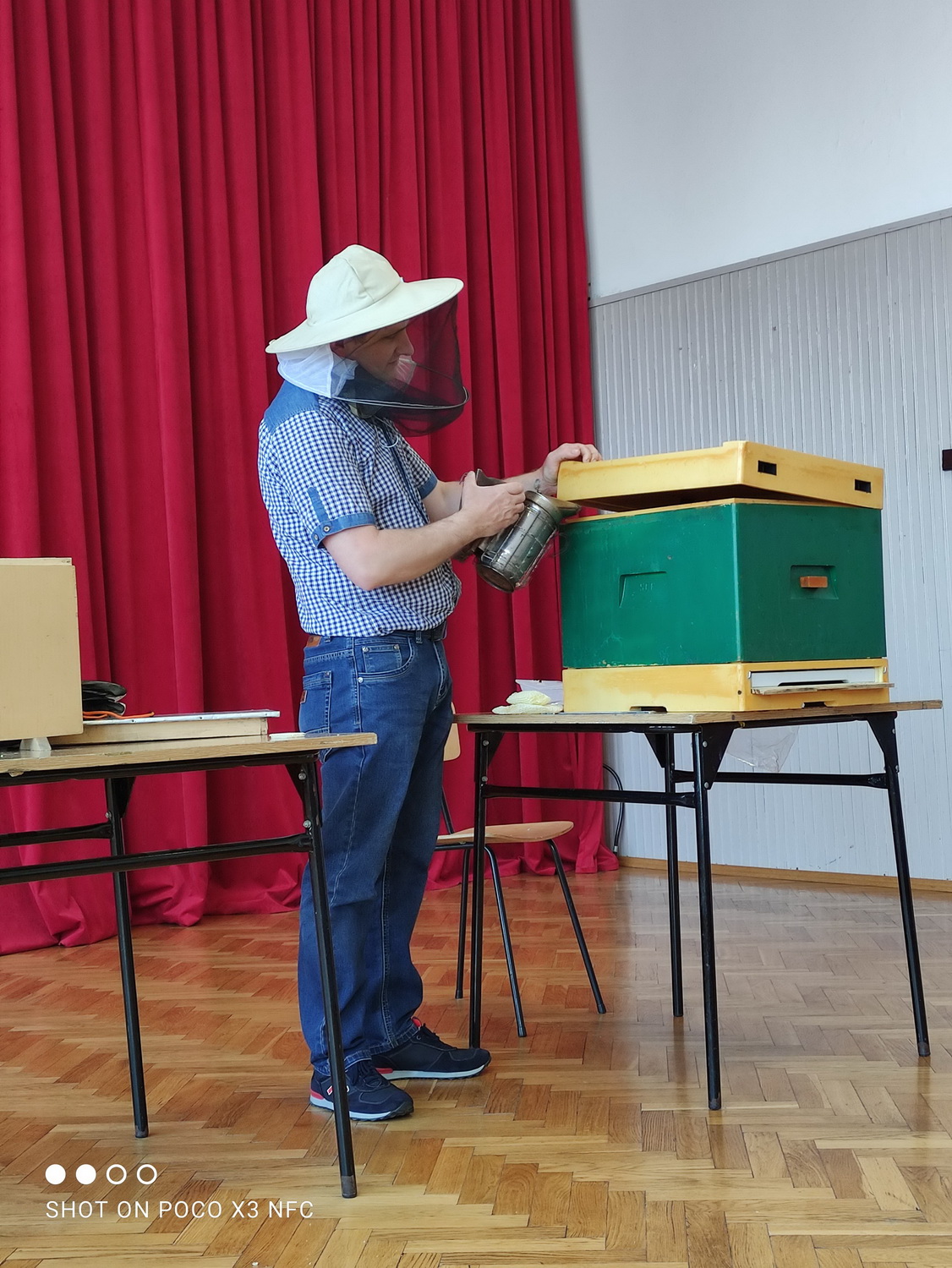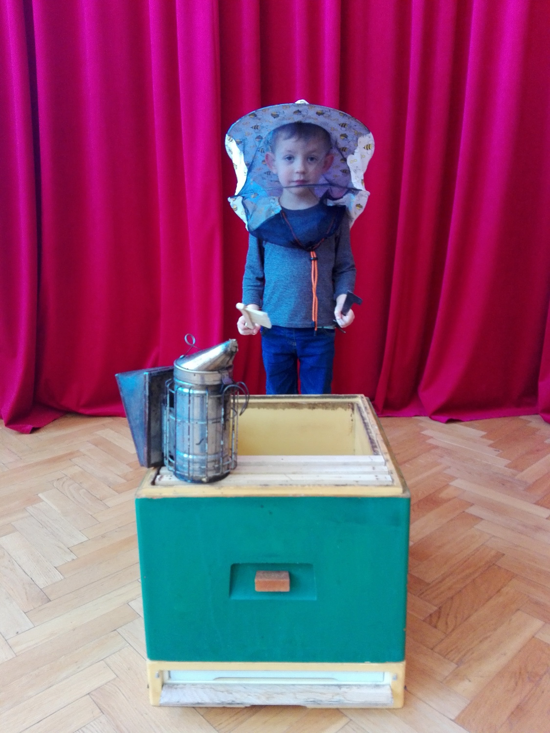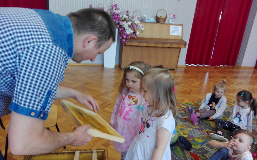 Jak powstaje miód? Jak długo żyją pszczoły? Jak porozumiewają się między sobą te niezwykłe owady? Dlaczego w ulu rządzi tylko jedna królowa? Na te i inne pytania odpowiadał pan Piotr – pszczelarz, który 10 maja odwiedził naszych młodszych przedszkolaków. Dzięki spotkaniu i niezwykle interesującym opowieściom, dzieci poznały wiele niesamowitych ciekawostek na temat pszczelarstwa. Dzieci miały okazję obejrzeć z bliska podstawowe narzędzia pracy pszczelarza, takie jak podkurzacz, dymka czy specjalny kapelusz. Poznały też budowę pszczelego domu – ula, przyjrzały się z bliska ramce z plastrem pszczelim, a nawet spróbowały pysznego miodu.