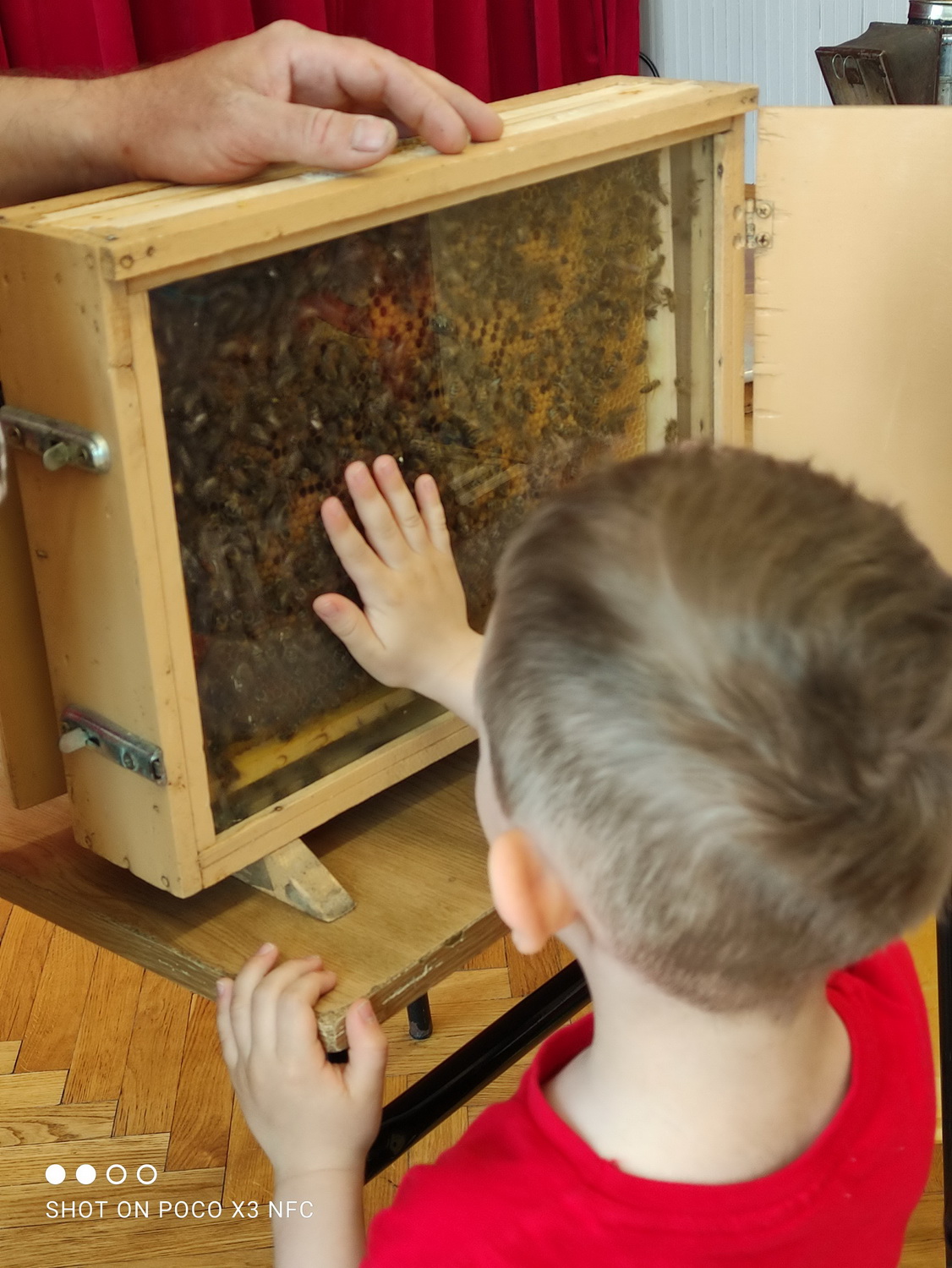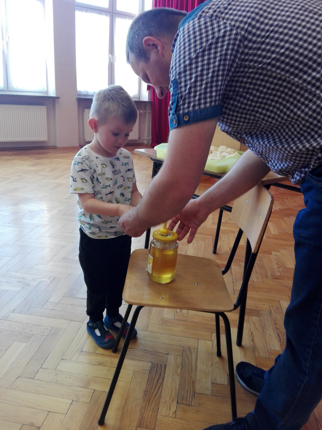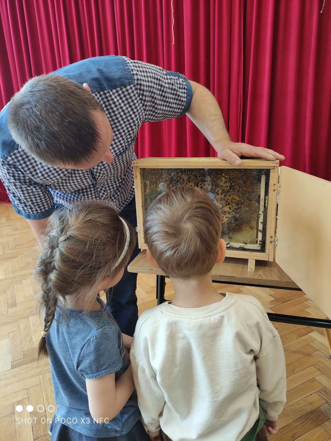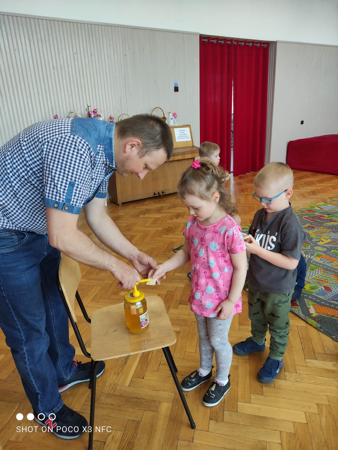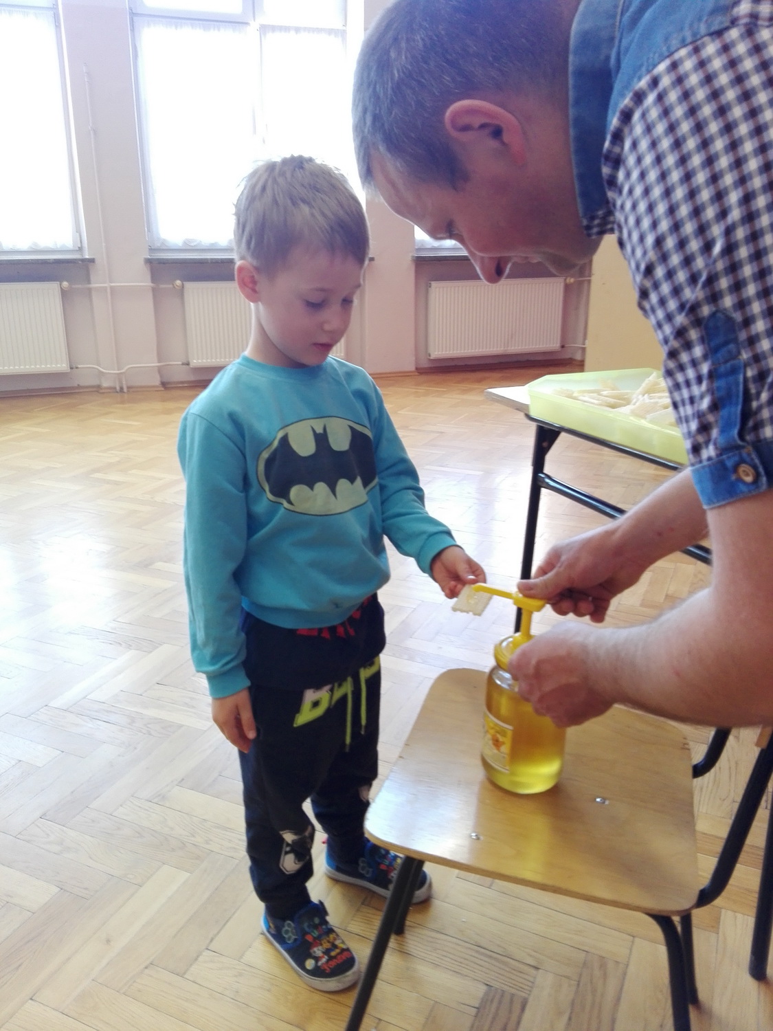 Nie trzeba chyba dodawać, że dzieci były wprost zachwycone lekcją na temat pszczół, a na pamiątkę tego spotkania każdy otrzymał mały słoiczek miodu do domu. Dziękujemy za miłą wizytę i poświęcony czas!