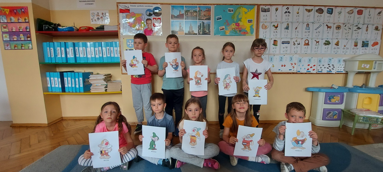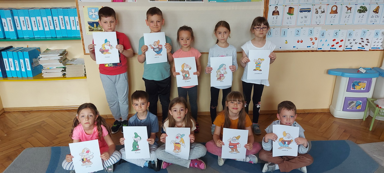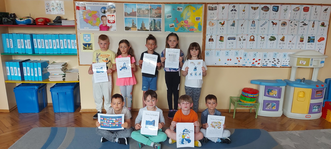 9 maja grupa Misie świętowała Dzień Unii Europejskiej. Głównym celem zajęć było kształtowanie wśród przedszkolaków poczucia przynależności narodowej i europejskiej. Misie utrwaliły wiadomości o Europie – kontynencie, na którym mieszkają. Dowiedziały się również, iż niektóre kraje Europy dawno temu postanowiły połączyć się w jedną wielką rodzinę państw, która nosi nazwę Unia Europejska. Od 2004 roku również Polska jest jej członkiem. W trakcie zajęć dzieci rozmawiały na temat symboli UE: flagi, hymnu, a także o jej stolicy, walucie czy maskotce – Syriuszu. Poznały także ciekawe miejsca i atrakcje turystyczne, które można zobaczyć w krajach Unii Europejskiej.