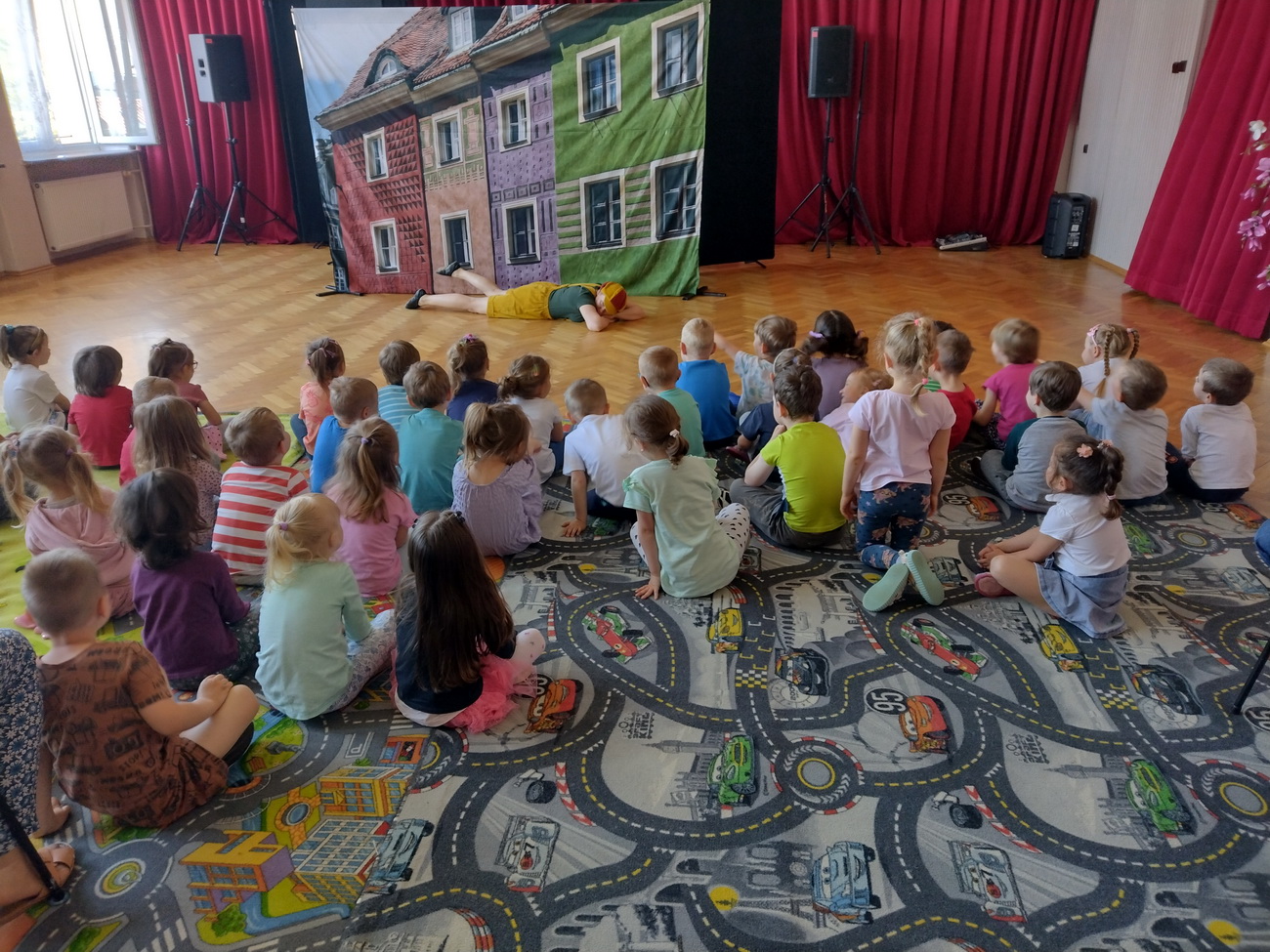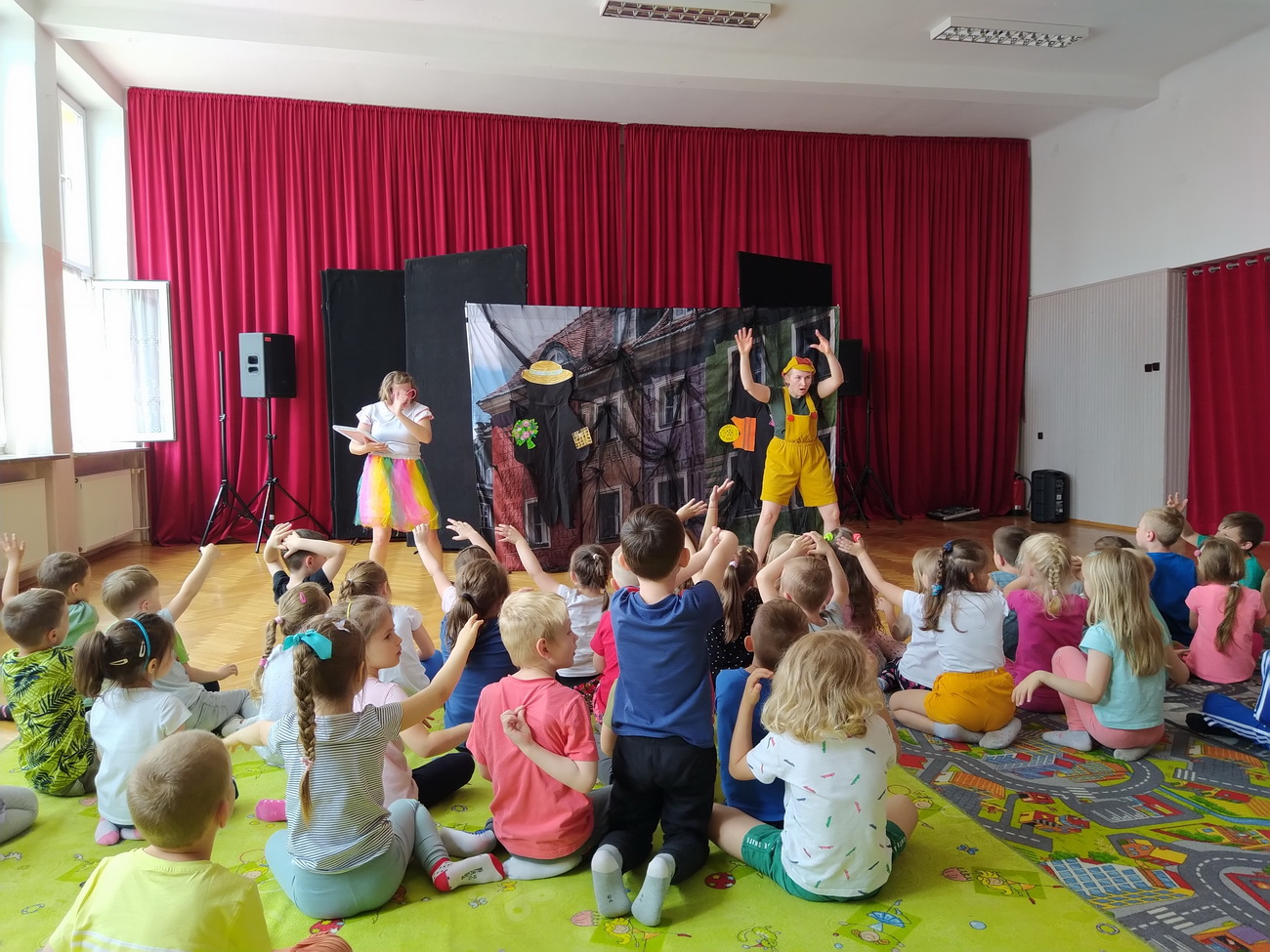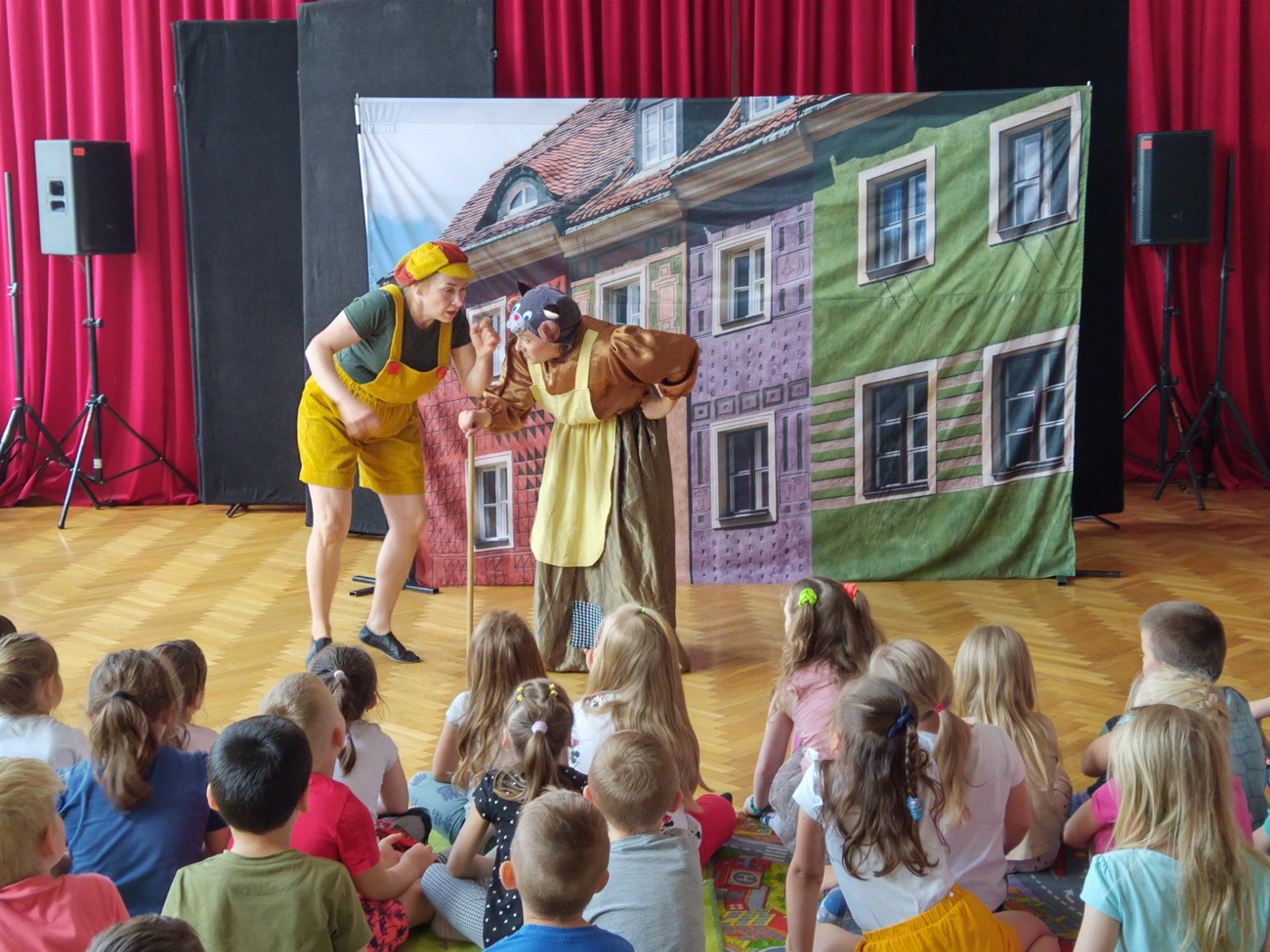 W środę, 1 czerwca w naszym przedszkolu gościł teatr Zielony Melonik ze spektaklem pt. „Nerwy do konserwy”. Dzieci poznały historię małego Henia, który, jak każde dziecko, toczy walkę z nudą. Gdy ta wkrada się, górę bierze złość. Psoty i niemądre pomysły skrywają się pod postacią kota Balerona, starającego się zwieść Henia na manowce. Bajka opowiada o splocie niefortunnych zdarzeń, z którymi mierzy się chłopiec. Rozczarowany i smutny szuka sposobów na nudę i gniew. Z pomocą wyobraźni i słusznych rad nasz mały bohater dostrzeże zalety pozytywnych emocji.