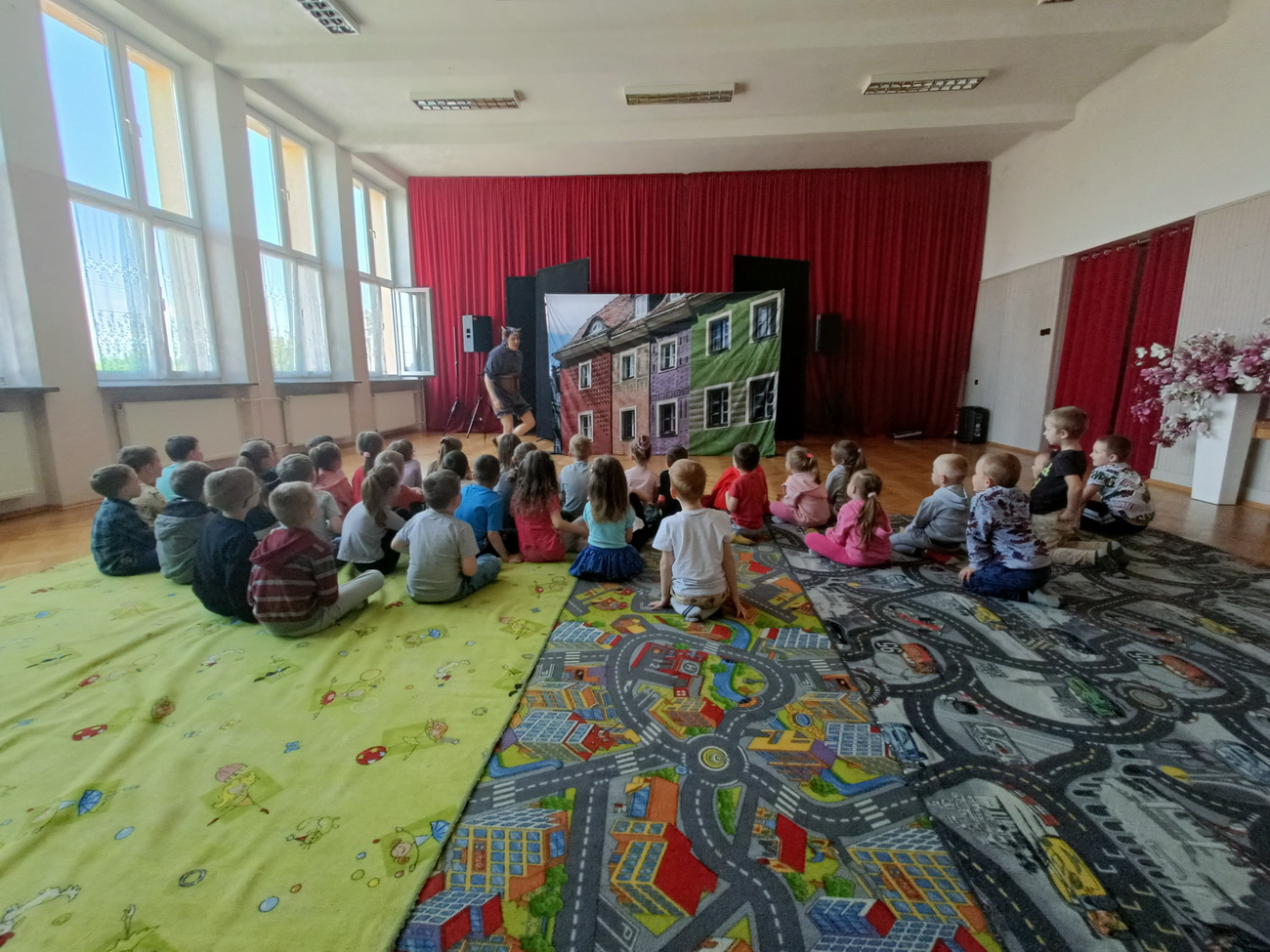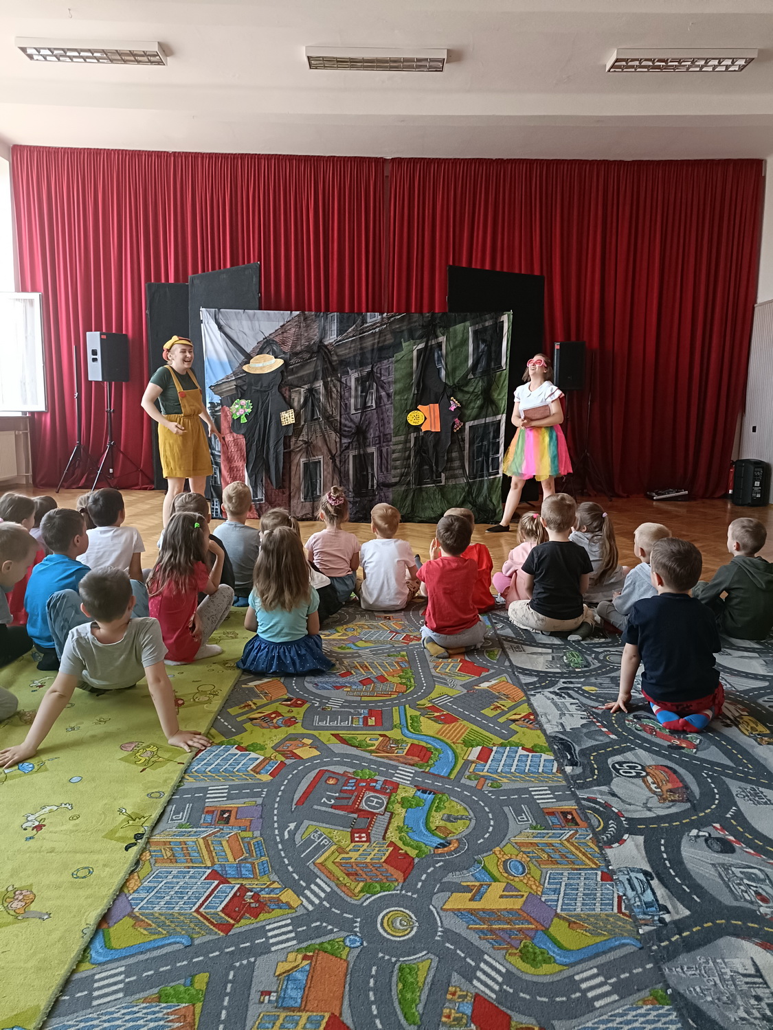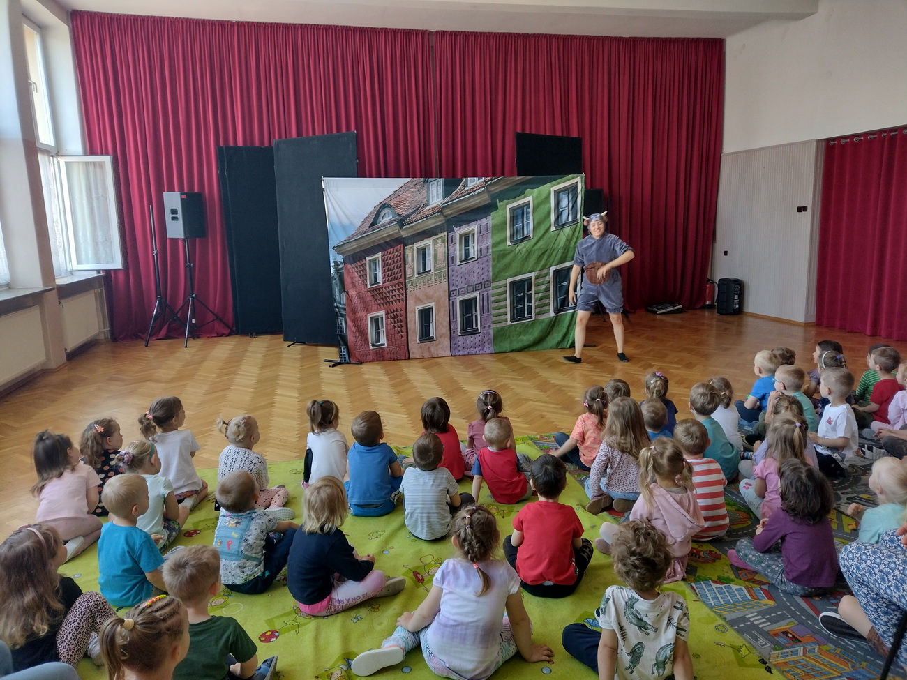 W środę, 1 czerwca w naszym przedszkolu gościł teatr Zielony Melonik ze spektaklem pt. „Nerwy do konserwy”. Dzieci poznały historię małego Henia, który, jak każde dziecko, toczy walkę z nudą. Gdy ta wkrada się, górę bierze złość. Psoty i niemądre pomysły skrywają się pod postacią kota Balerona, starającego się zwieść Henia na manowce. Bajka opowiada o splocie niefortunnych zdarzeń, z którymi mierzy się chłopiec. Rozczarowany i smutny szuka sposobów na nudę i gniew. Z pomocą wyobraźni i słusznych rad nasz mały bohater dostrzeże zalety pozytywnych emocji.