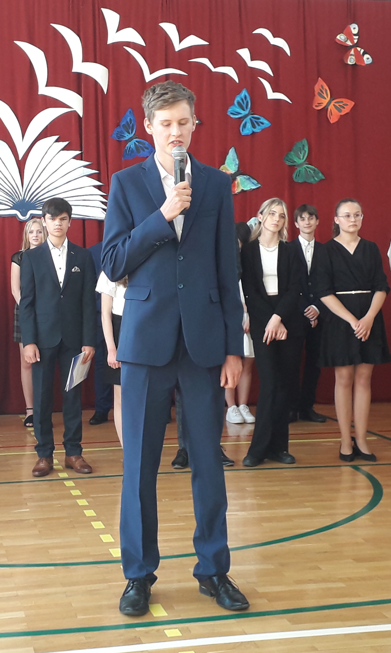 Absolwenci Szkoły Podstawowej nr 7 wspominali lata spędzone w naszej szkole, podziękowali dyrekcji, wychowawcom i nauczycielom za empatię, trud i serce włożone w pracę, a także zaprezentowali swoje umiejętności recytatorskie i wokalne. Ci, którzy osiągnęli najwyższe wyniki w nauce lub wyróżnili się szczególnymi osiągnięciami otrzymali gratulacje i nagrody z rąk dyrektora szkoły, Pana Piotra Kłęka i wychowawców. Do zgromadzonych w sali rodziców i nauczycieli popłynęły podziękowania za wzorową współpracę, a do absolwentów życzenia konstynuowania edukacji w swojej wymarzonej szkole i wielu sukcesów.
