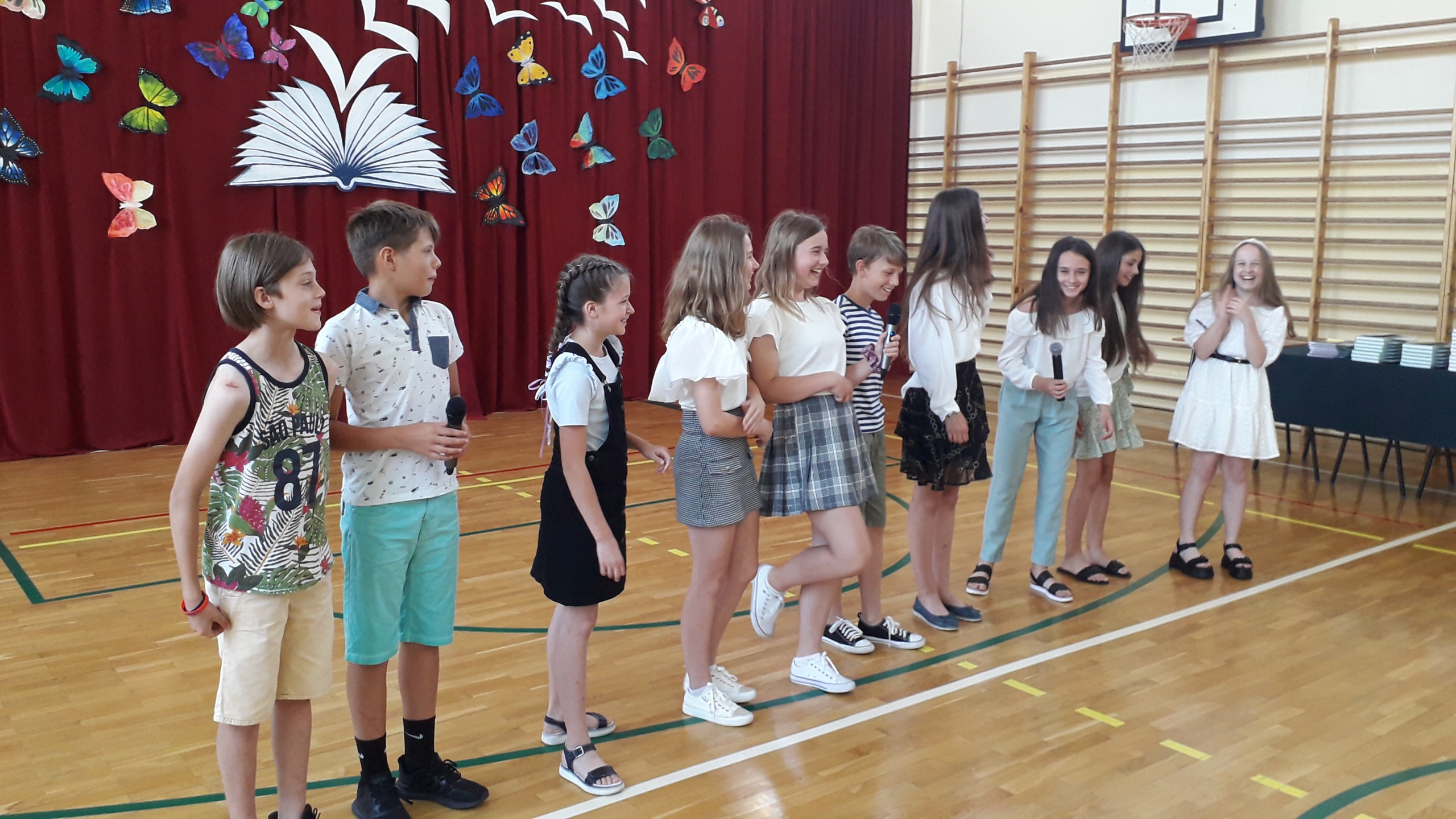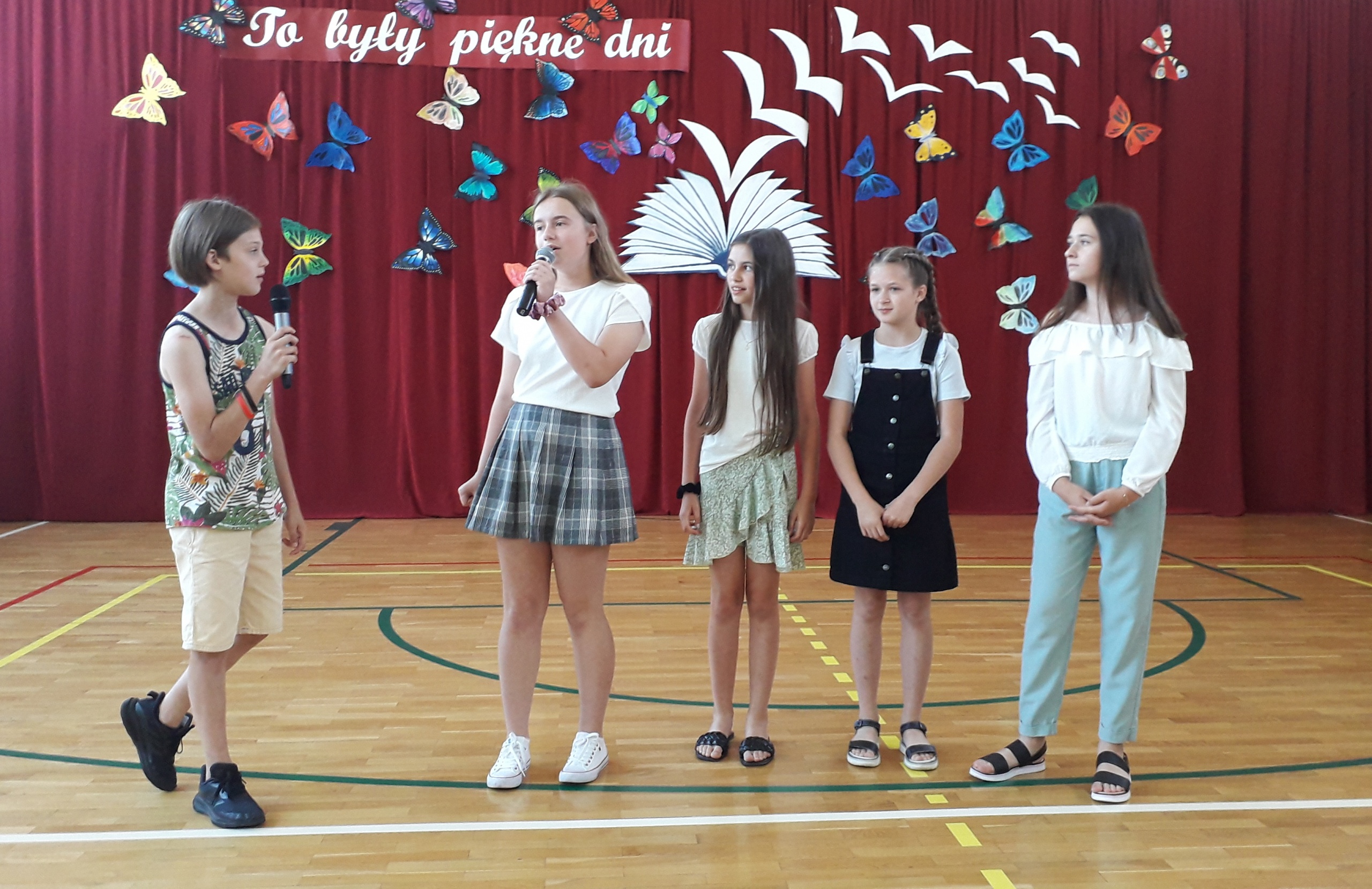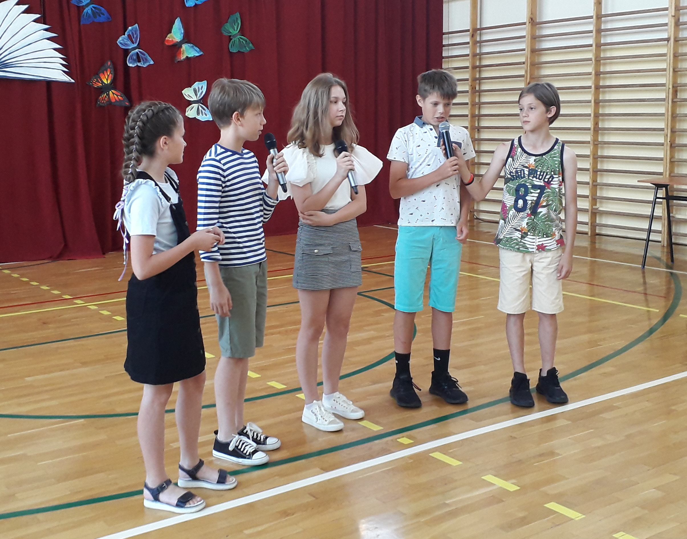 W piątek, 24 czerwca, miało miejsce uroczyste zakończenie roku szkolnego 2021/2022. Z krótkim programem artystycznym wystąpiły klasy piąte. Uczniowie w zabawny i przebojowy sposób wyrazili swoją radość z nadchodzących wakacji. Całość dopełniały melodie znanych piosenek. Za bezpieczne doprowadzenie okrętu, zwanego szkołą, do przystani, podziękował całemu gronu pedagogicznemu przewodniczący Rady Rodziców, Pan Grzegorz Karpiuk. Następnie odbyło się wręczenie świadectw z paskiem, listów gratulacyjnych i nagród książkowych. Dyrektor Zespołu Szkolno-Przedszkolnego nr 11, Pan Piotr Kłęk, życzył wszystkim wspaniałych, słonecznych i bezpiecznych wakacji. Później, po raz ostatni w tym roku szkolnym, uczniowie spotkali się ze swoimi wychowawcami w salach lekcyjnych.