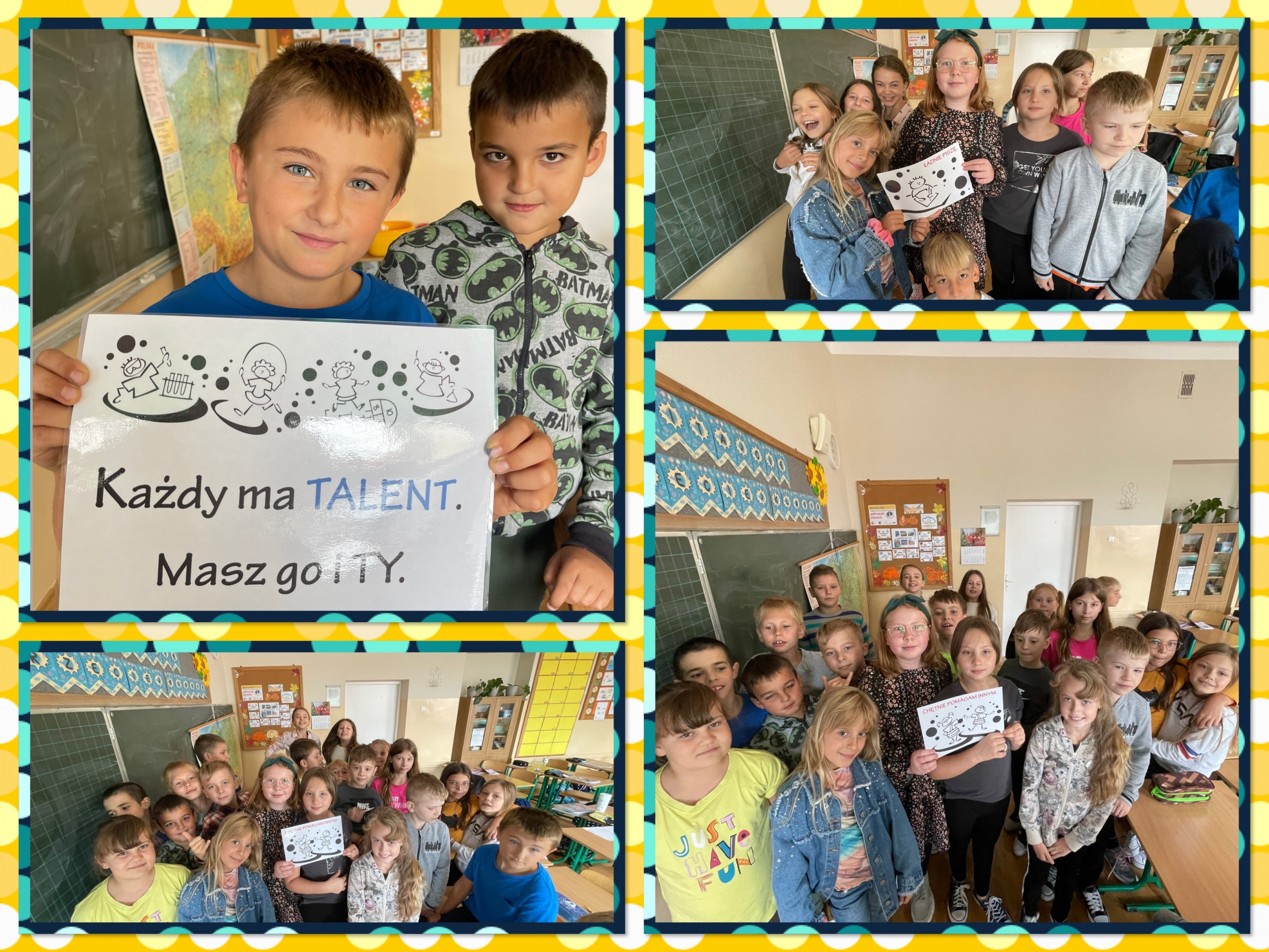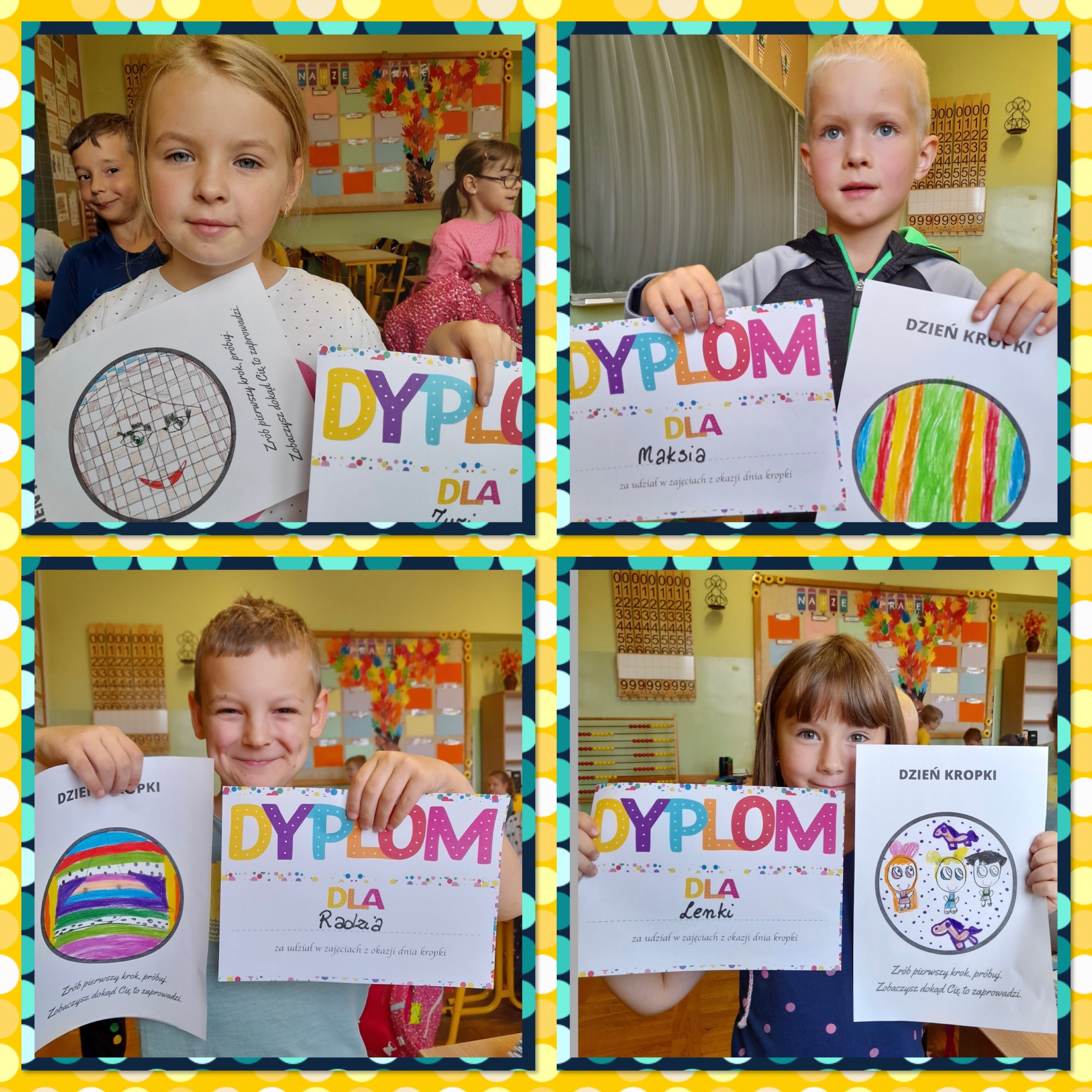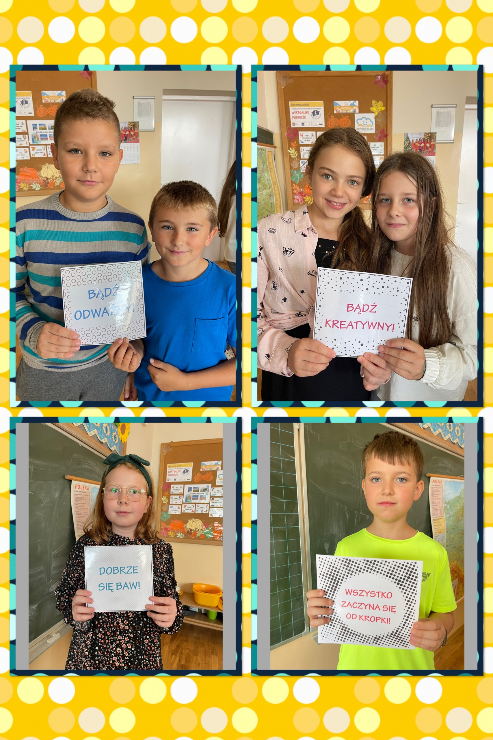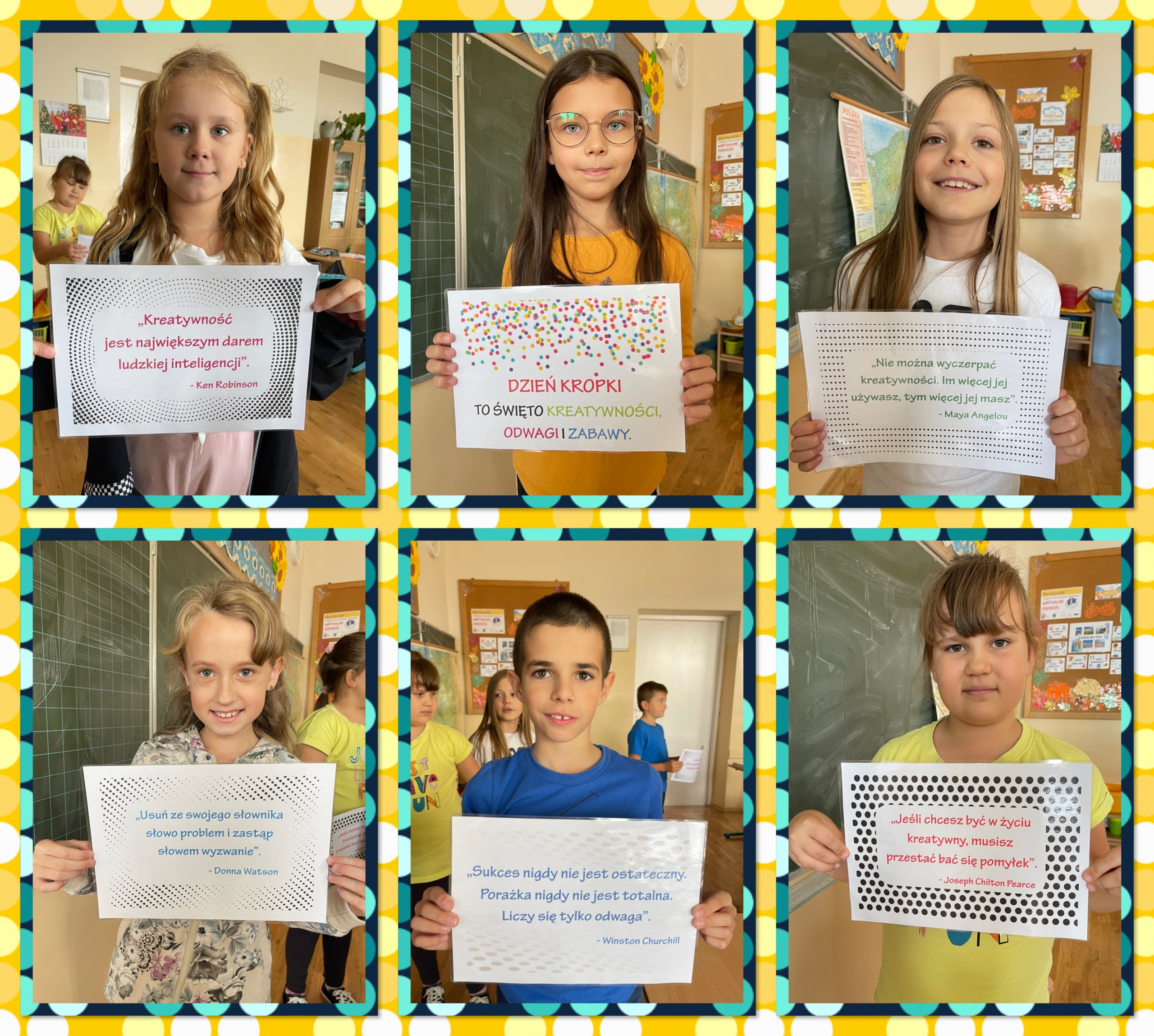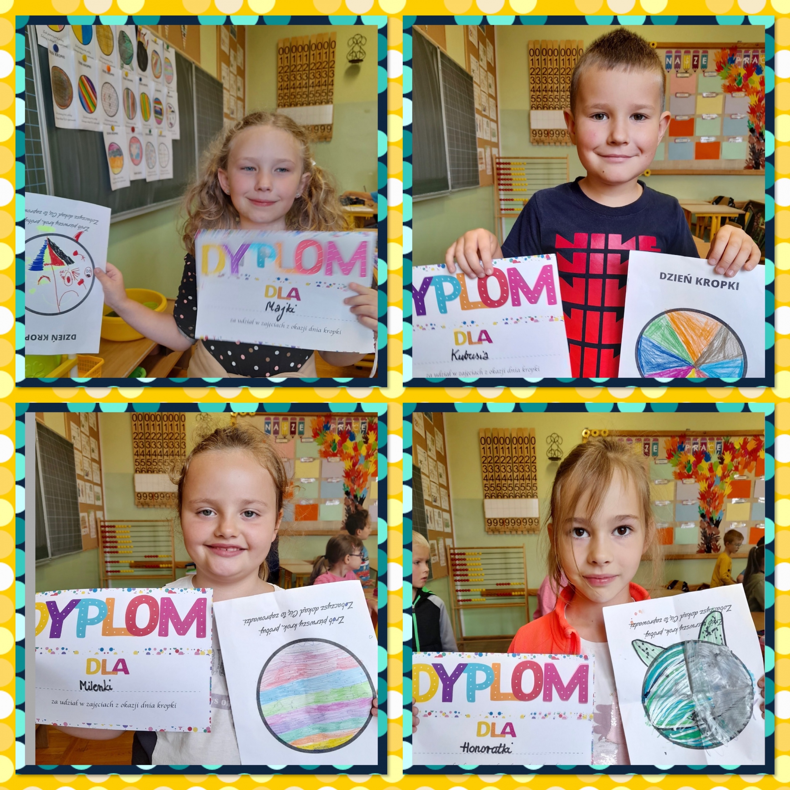 Od rana na korytarzach naszej szkoły królowały stylizacje w kropki. Uczniowie klas 1a, 1b oraz 3b podczas zajęć wzięły udział w kropkowych wyzwaniach i mogli stworzyć swoje indywidualne kropki. Każda z nich jest niepowtarzalna i unikatowa, tak jak talenty i mocne strony naszych uczniów. Dużym zainteresowaniem cieszyła się też sesja w fotobudce.