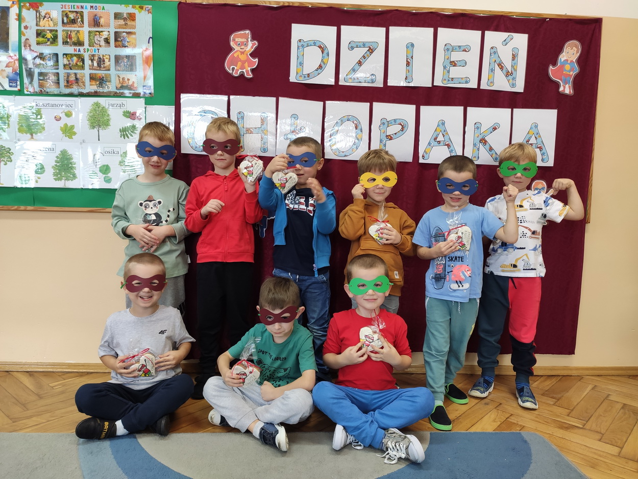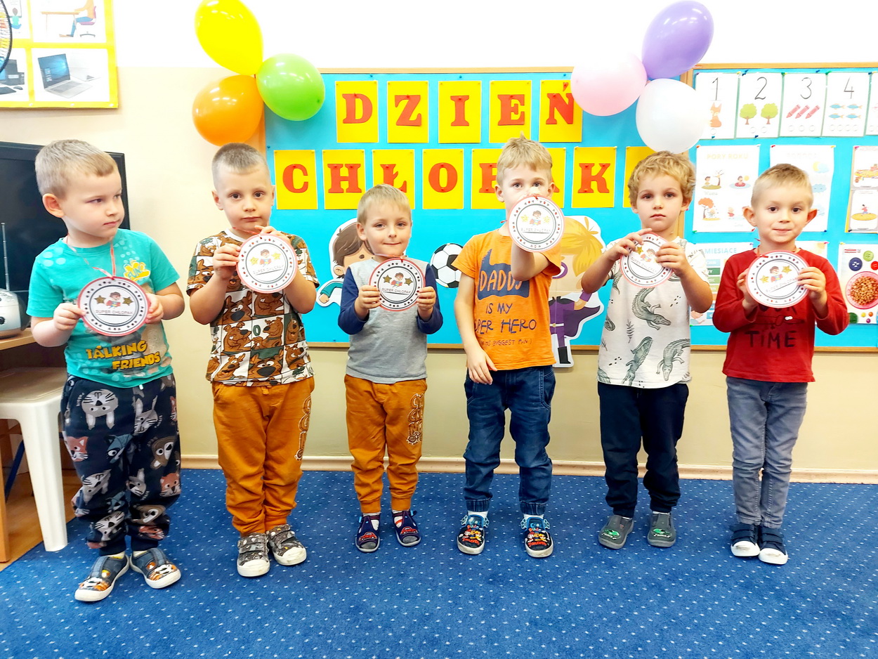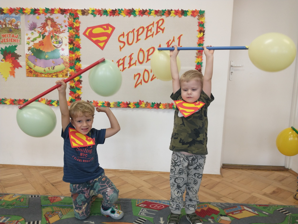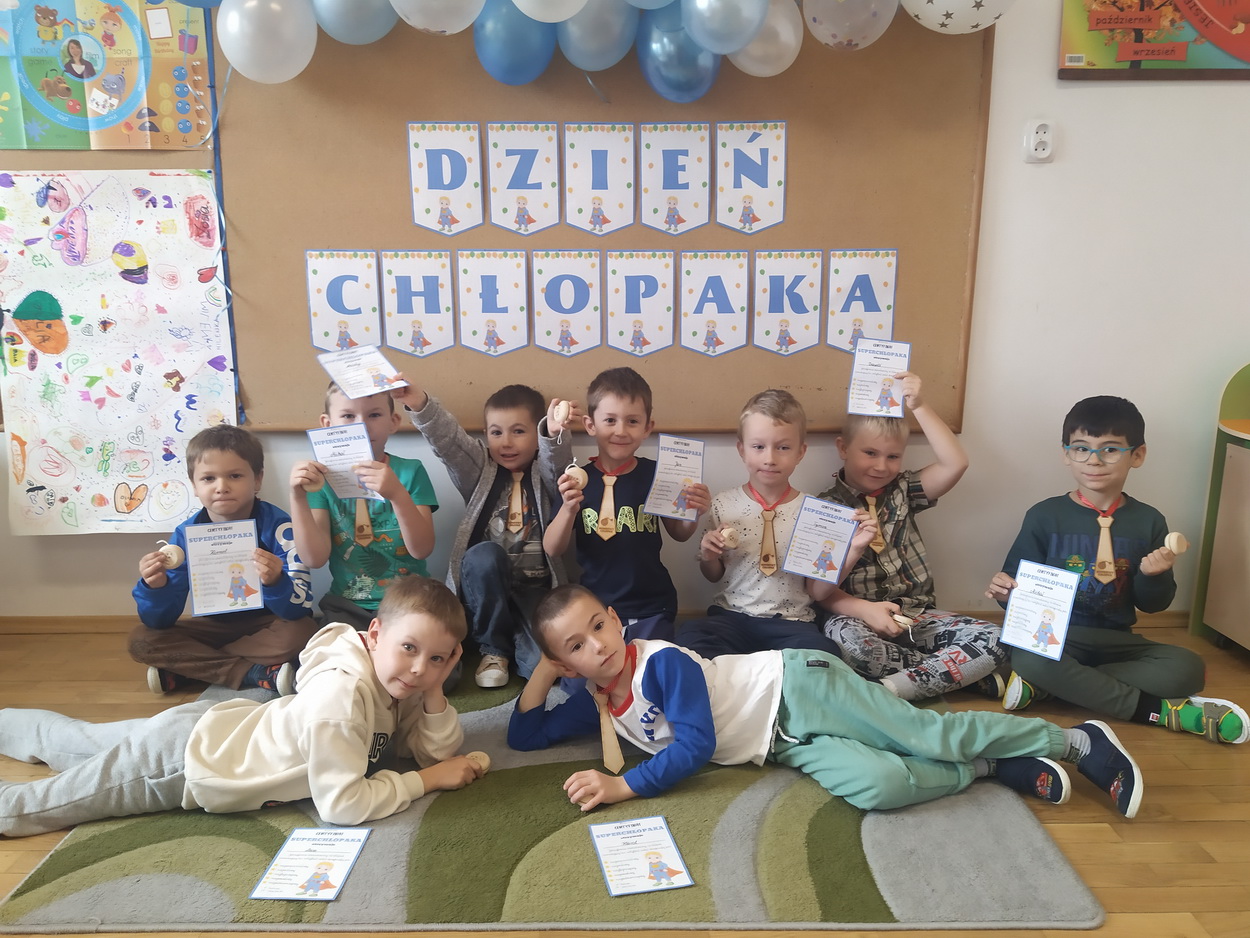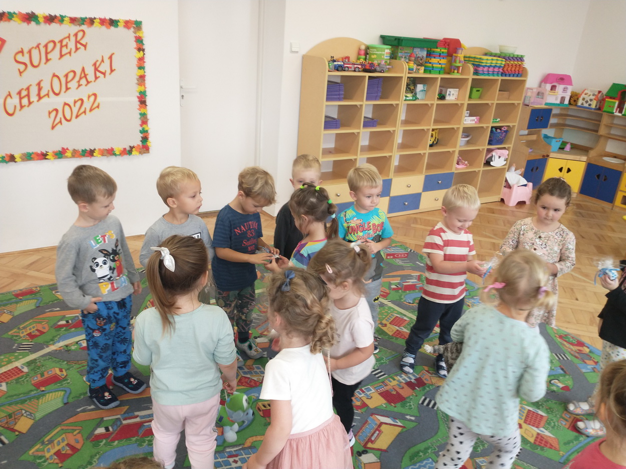 30 września obchodziliśmy w naszym przedszkolu szczególne święto, czyli Dzień Chłopaka. Aby sprawić radość chłopcom, dziewczynki zaśpiewały im uroczyste „Sto lat” oraz przygotowały drobne upominki. Podczas wspólnych zabaw i tańców, znalazł się czas na odznaczenie chłopców medalami „Superchłopaka”. Dzień pełen wrażeń, atrakcji i radości zakończył się sesją zdjęciową. Z przyjemnością i uśmiechem na twarzy będziemy wspominać to wydarzenie!