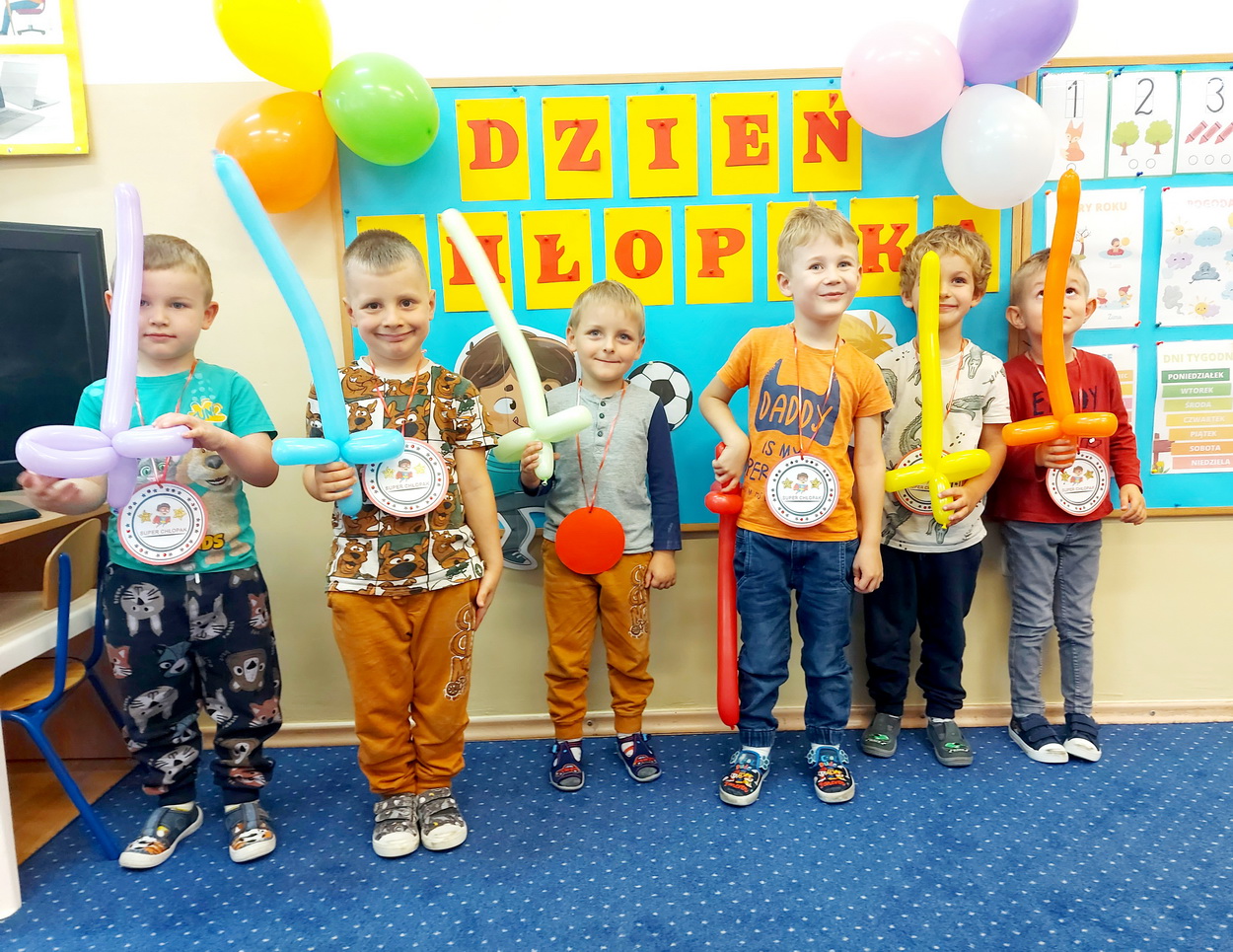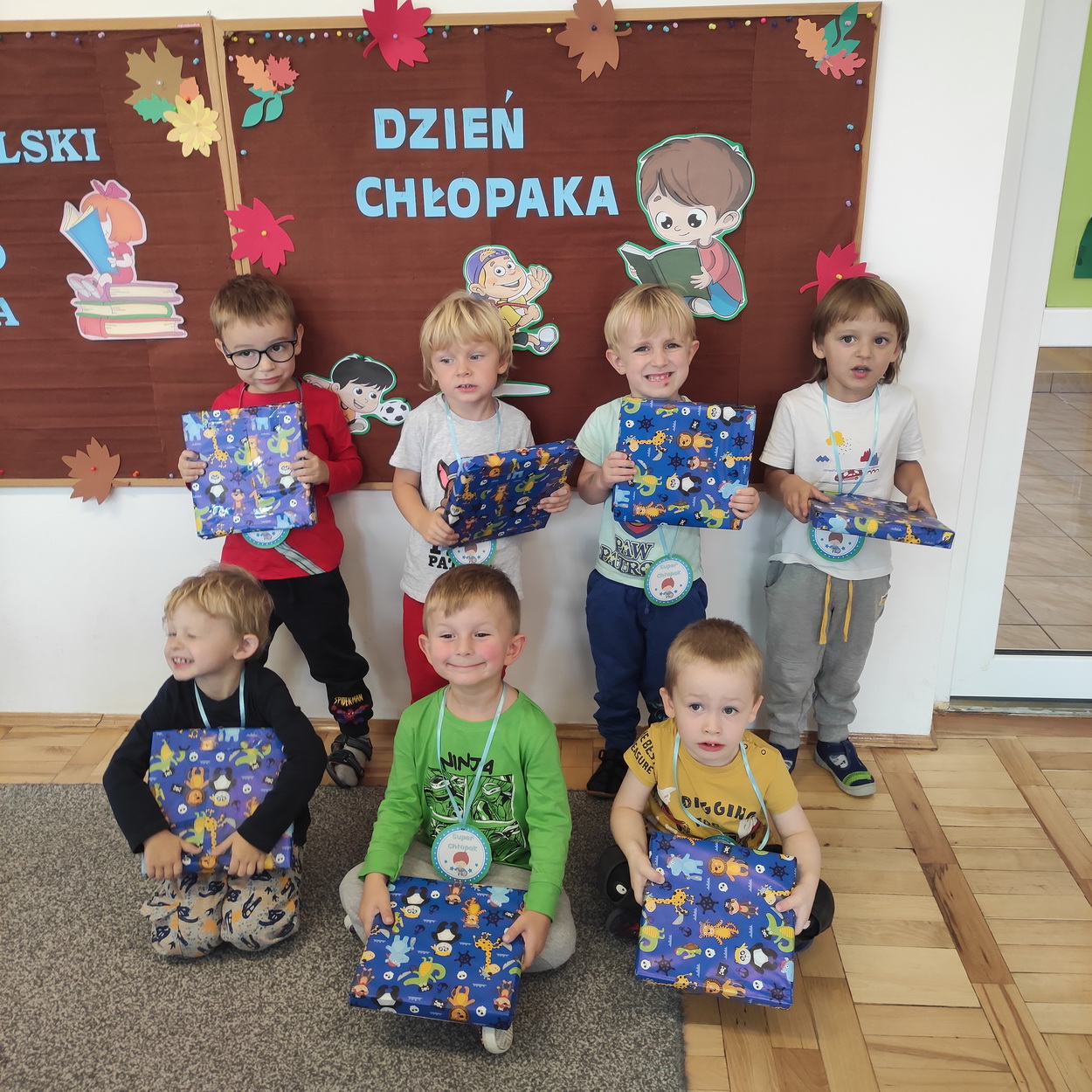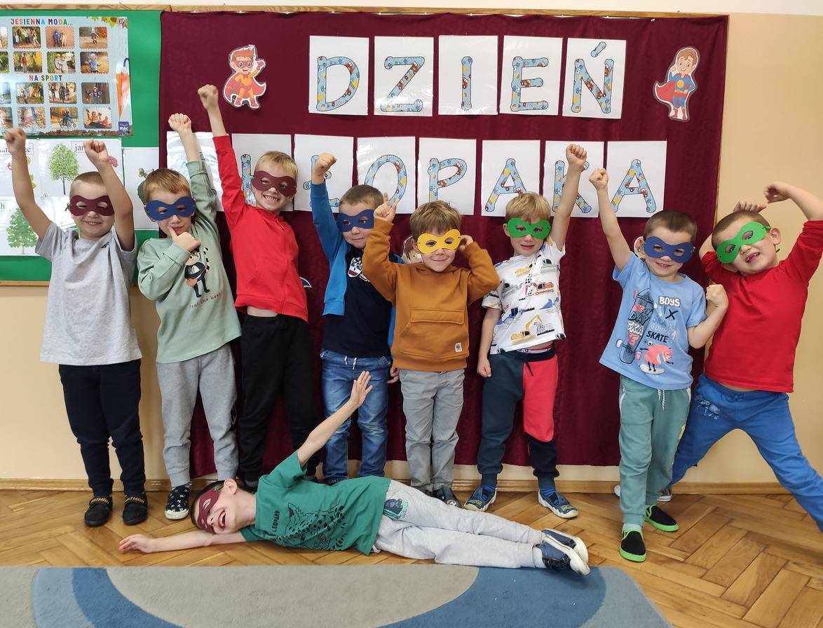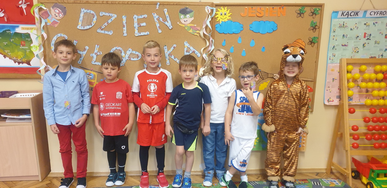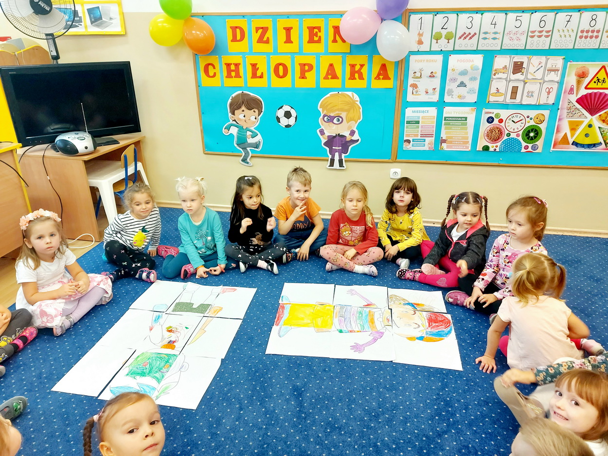 30 września obchodziliśmy w naszym przedszkolu szczególne święto, czyli Dzień Chłopaka. Aby sprawić radość chłopcom, dziewczynki zaśpiewały im uroczyste „Sto lat” oraz przygotowały drobne upominki. Podczas wspólnych zabaw i tańców, znalazł się czas na odznaczenie chłopców medalami „Superchłopaka”. Dzień pełen wrażeń, atrakcji i radości zakończył się sesją zdjęciową. Z przyjemnością i uśmiechem na twarzy będziemy wspominać to wydarzenie!