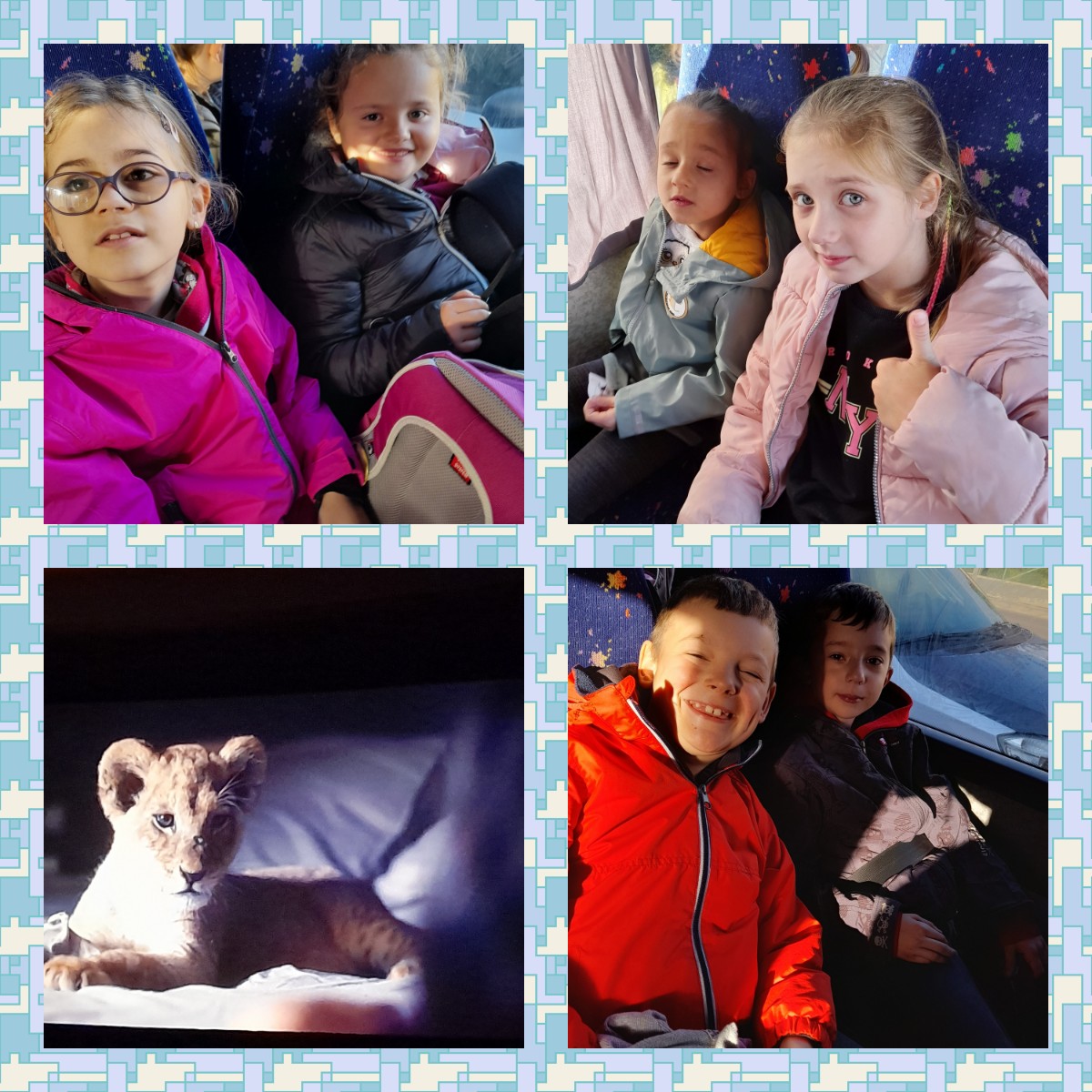 6 października 2022 r. klasy pierwsze wybrały się do Kina Zorza na wspaniały, przygodowy film pt. ”King: Mój przyjaciel lew”. Uczniowie z ogromnym zaciekawieniem śledzili losy nastoletniej Inés i jej brata Alexa. Rodzeństwo znalazło w domu małe lwiątko, które – jak dowiadują się z wiadomości telewizyjnych – uciekło z lotniska. Niespodziewany gość, któremu nadają imię King, szybko staje się ich najlepszym przyjacielem. Gdy okazuje się, że King jest poszukiwany i grozi mu niebezpieczeństwo, dzieciaki postanawiają pomóc mu wrócić do jego prawdziwego domu. W realizacji tego szalonego i odważnego planu może wesprzeć ich tylko jedna osoba – zwariowany dziadek Max, z którym wspólnie wyruszają w pełną przygód podróż. Po seansie filmowym dzieci wybrały się na spacer, korzystając z pięknej jesiennej aury.