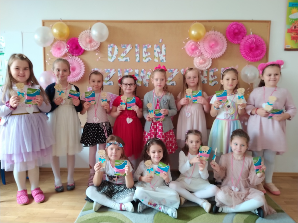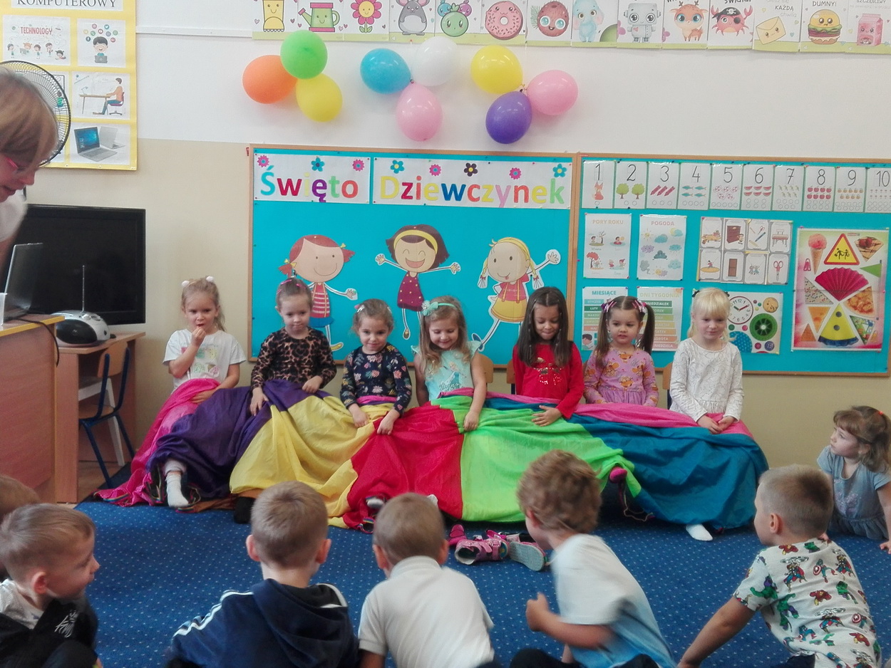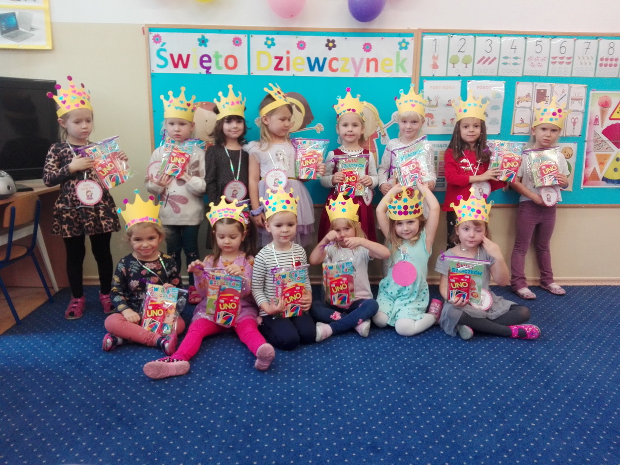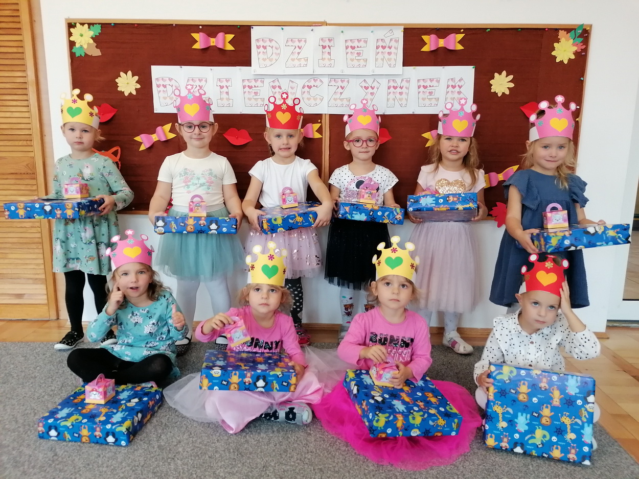 Dzień Dziewczynek to wyjątkowe wydarzenie, na które nasze małe damy czekały już od dłuższego czasu. Radosna atmosfera panowała od samego rana. Chłopcy złożyli życzenia, tradycyjnie zaśpiewali swoim koleżankom uroczyste „Sto lat” i wręczyli piękne laurki oraz niespodzianki. Chłopcy bardzo mocno starali się, aby ten dzień uczynić wyjątkowo miłym. Jako mali dżentelmeni wyręczali dziewczynki w codziennych obowiązkach, między innymi w porządkowaniu sali po zabawie. Było można usłyszeć taneczną muzykę, w rytm której bawiły się zarówno dziewczynki jak i chłopcy. Wiele radości sprawiły dzieciom przygotowane z tej okazji zabawy i konkurencje. Uśmiechnięte buzie przedszkolaków, a zwłaszcza dziewczynek świadczyły o miło spędzonym czasie.