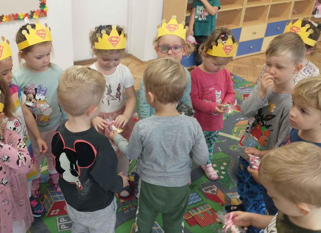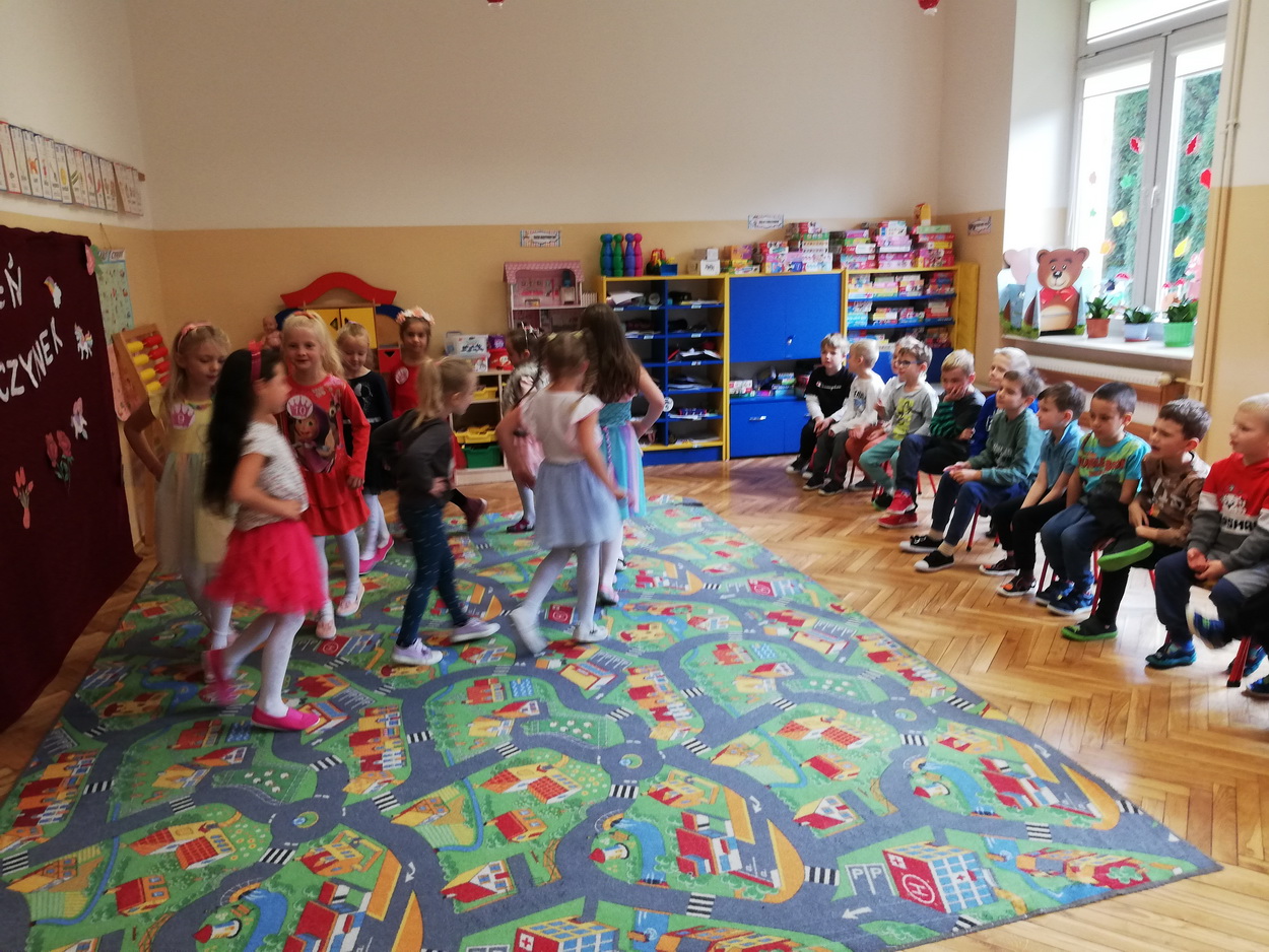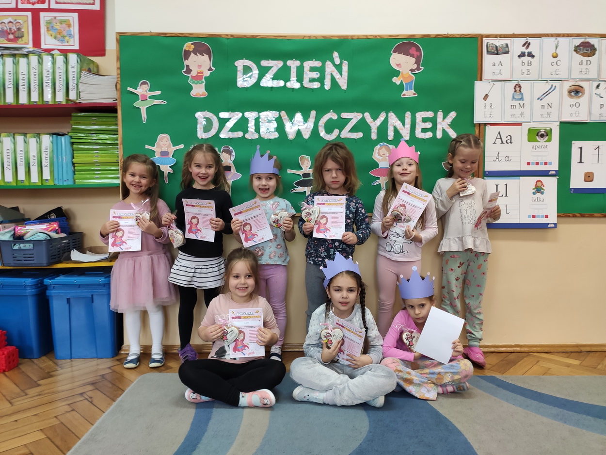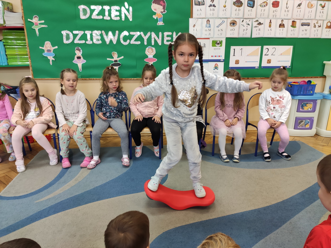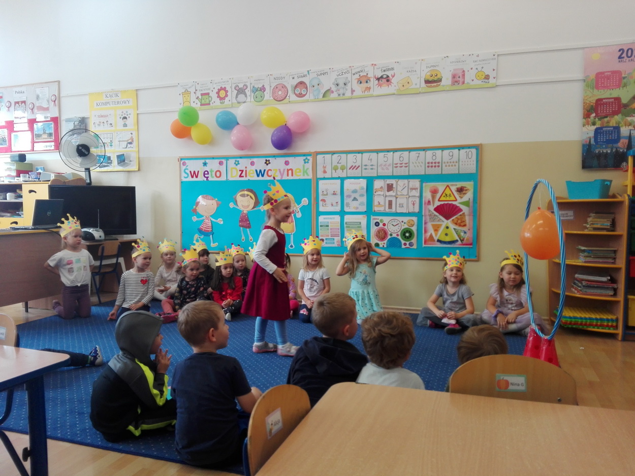 Dzień Dziewczynek to wyjątkowe wydarzenie, na które nasze małe damy czekały już od dłuższego czasu. Radosna atmosfera panowała od samego rana. Chłopcy złożyli życzenia, tradycyjnie zaśpiewali swoim koleżankom uroczyste „Sto lat” i wręczyli piękne laurki oraz niespodzianki. Chłopcy bardzo mocno starali się, aby ten dzień uczynić wyjątkowo miłym. Jako mali dżentelmeni wyręczali dziewczynki w codziennych obowiązkach, między innymi w porządkowaniu sali po zabawie. Było można usłyszeć taneczną muzykę, w rytm której bawiły się zarówno dziewczynki jak i chłopcy. Wiele radości sprawiły dzieciom przygotowane z tej okazji zabawy i konkurencje. Uśmiechnięte buzie przedszkolaków, a zwłaszcza dziewczynek świadczyły o miło spędzonym czasie.