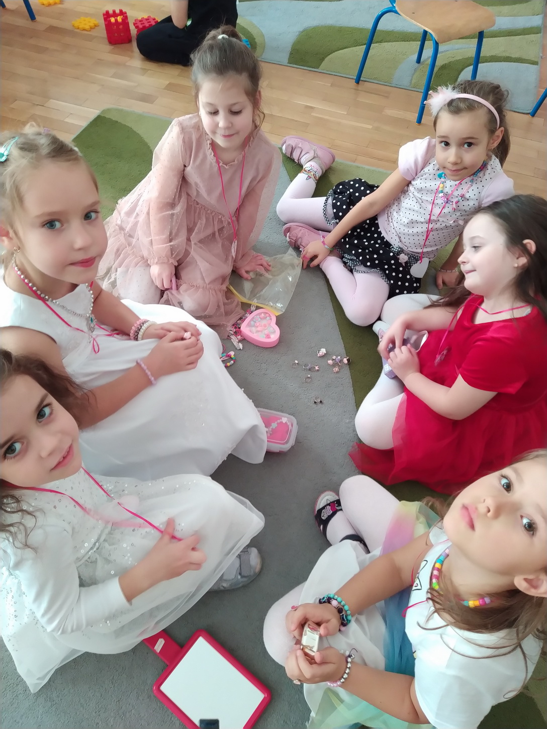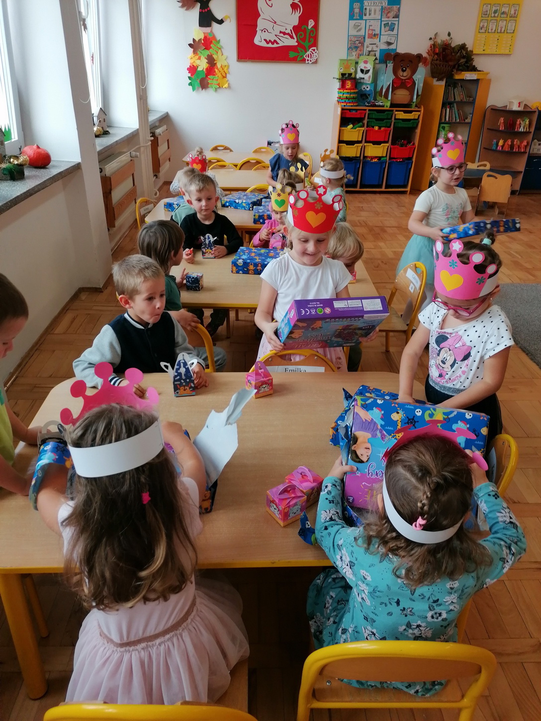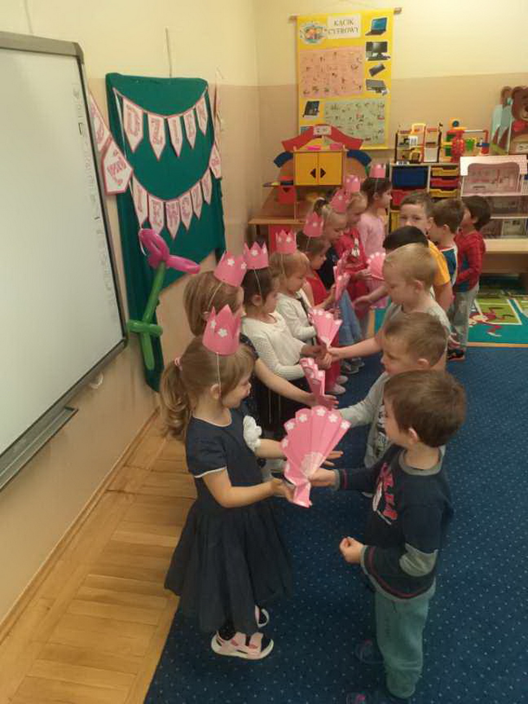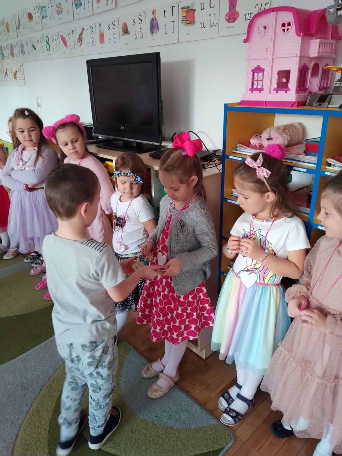 Dzień Dziewczynek, który corocznie obchodzimy w naszym przedszkolu, to doskonały sposób do kształtowania u dzieci nawyku obdarowywania upominkami swoich najbliższych. Wszystkie dziewczynki dziękują chłopcom za piękne życzenia.