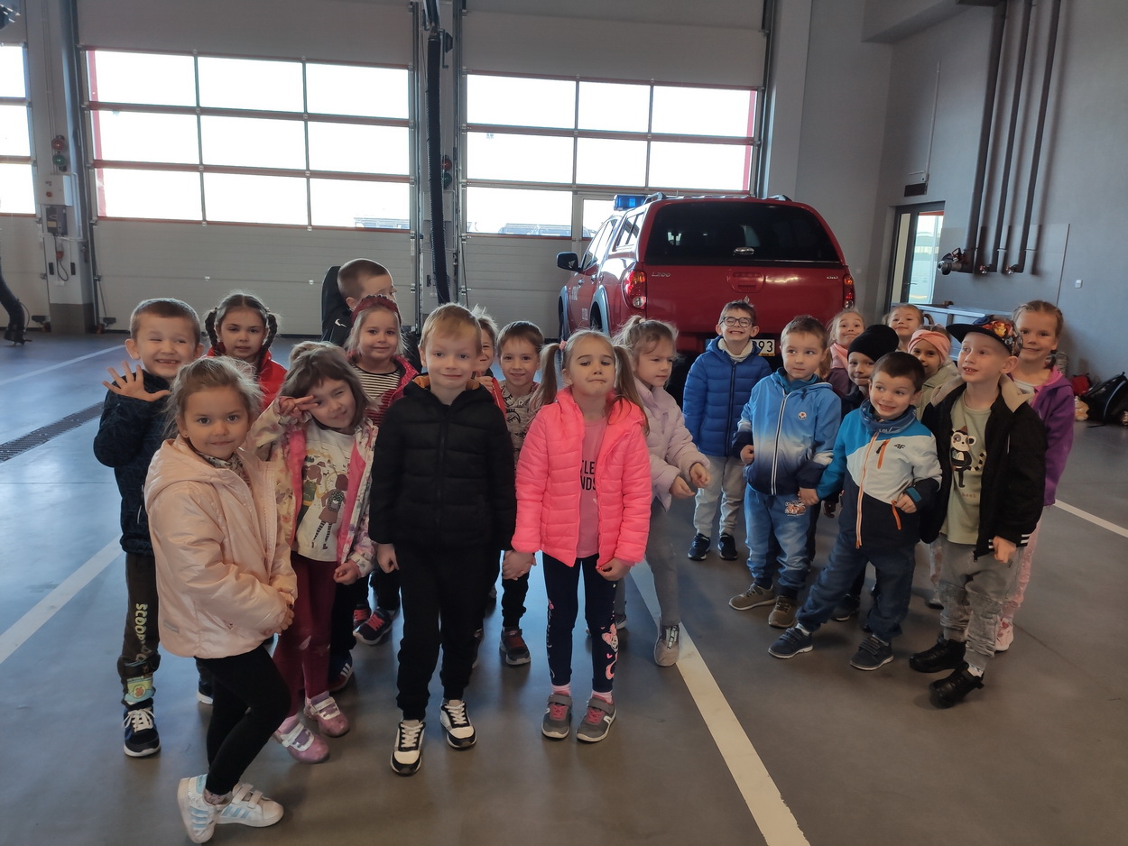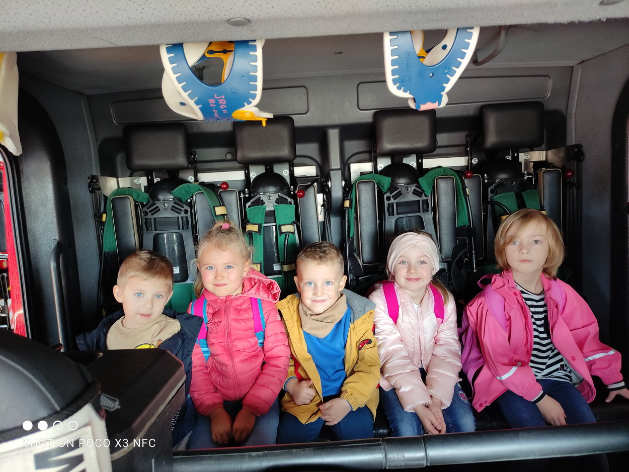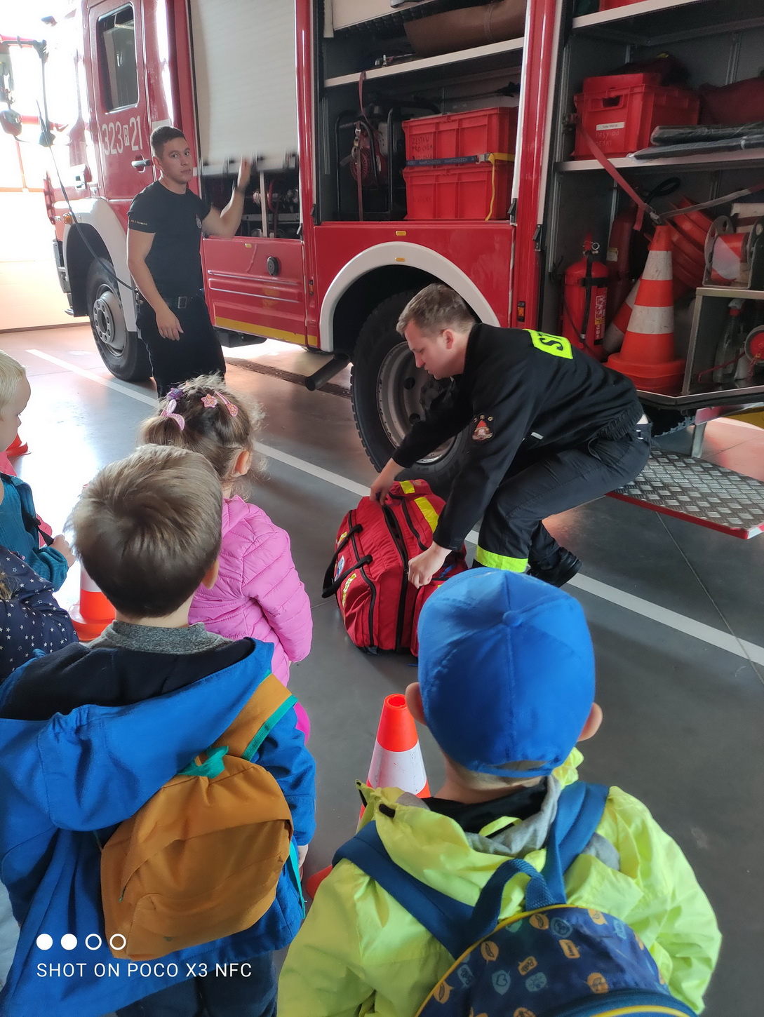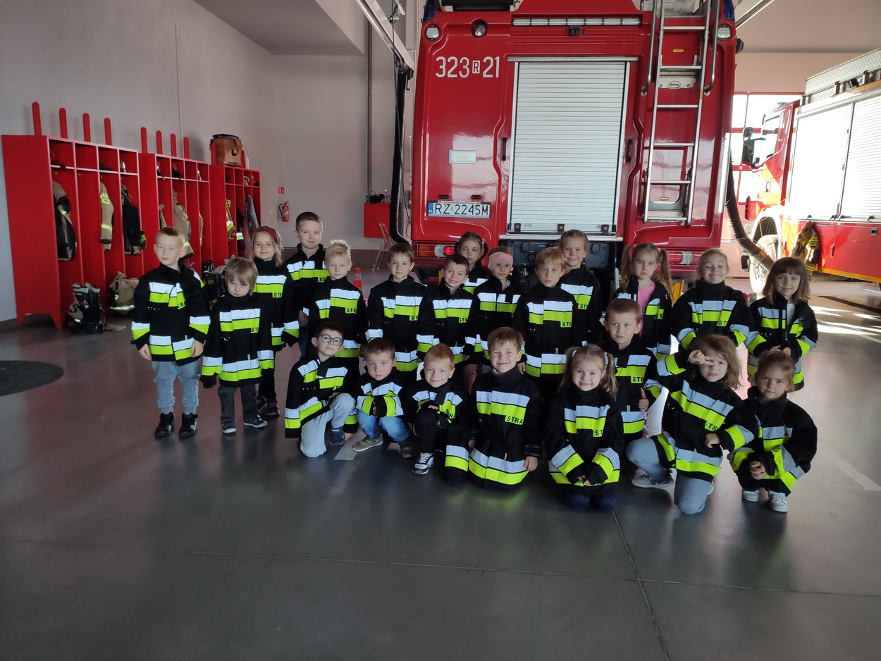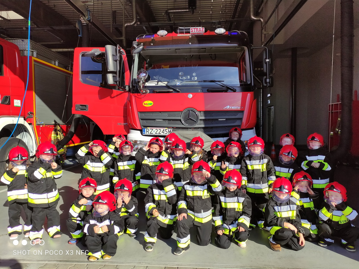 17 października dzieci z grup Biedronki i Tygryski wybrały się na wycieczkę do Państwowej Straży Pożarnej w Rzeszowie. Strażacy opowiedzieli dzieciom o odpowiedzialności, niebezpieczeństwach i trudnościach jakie spotykają podczas akcji ratowniczych. Przedszkolaki mogły z bliska obejrzeć samochody i sprzęt pożarniczy, a także obserwowały zjazd do akcji po metalowej rurze. Wielką atrakcją dla wszystkich było wejście do wozu strażackiego. Podsumowaniem spotkania było wcielenie się w rolę strażaka. Nasi wychowankowie ubrani się w stroje strażackie i hełmy musieli wydostać się z „zadymionego” pomieszczenia. Przekonali się jak cenna jest każda minuta, sprawność i szybkie działanie.