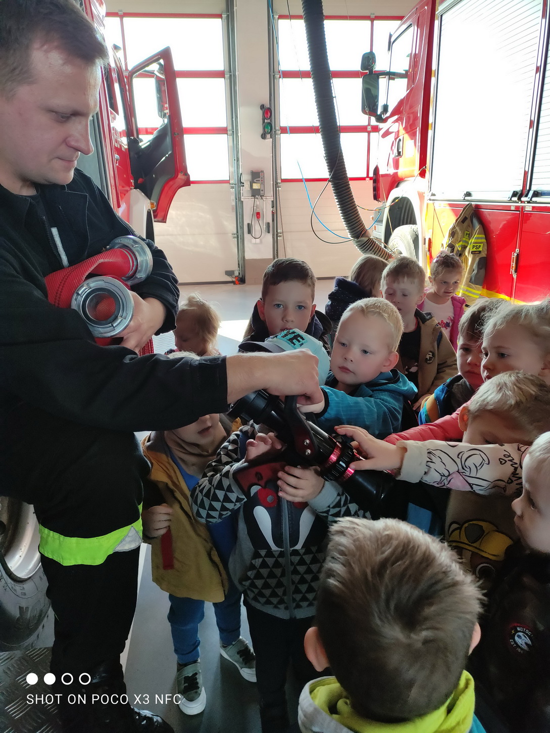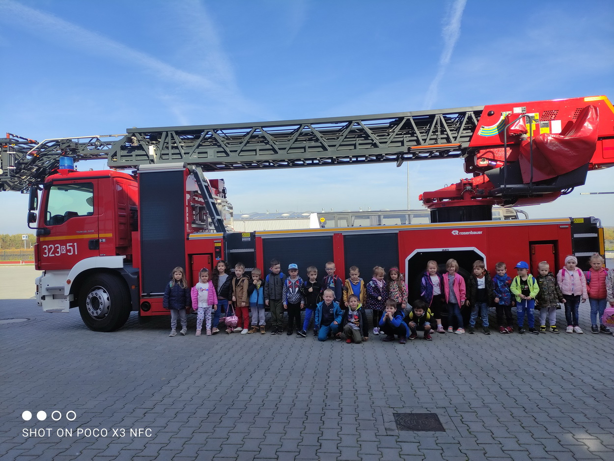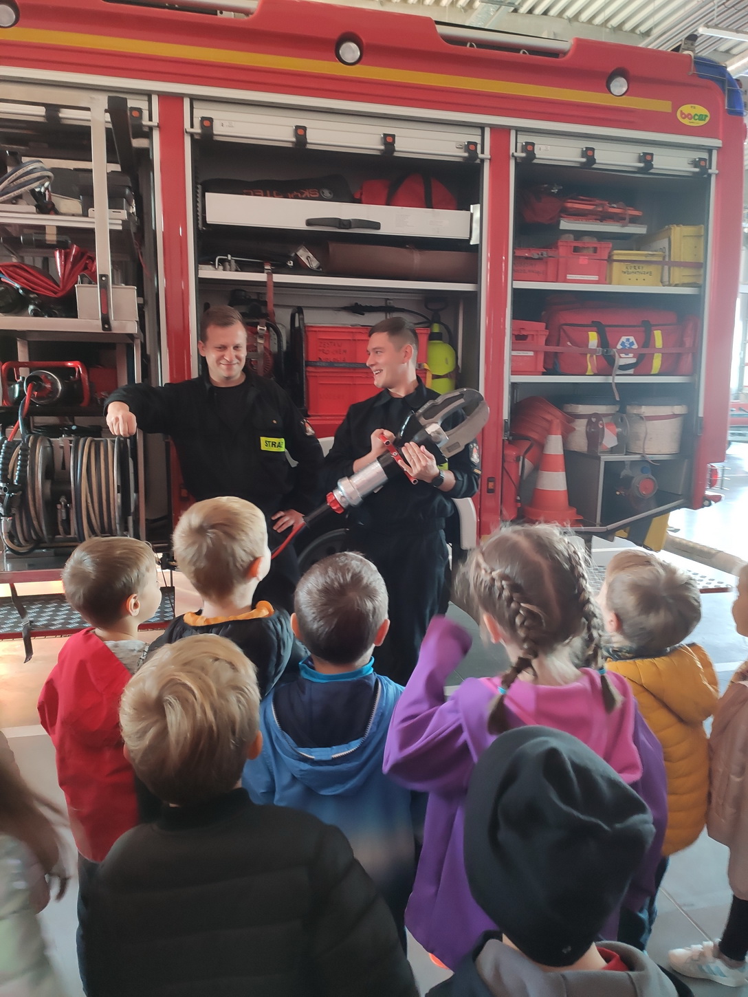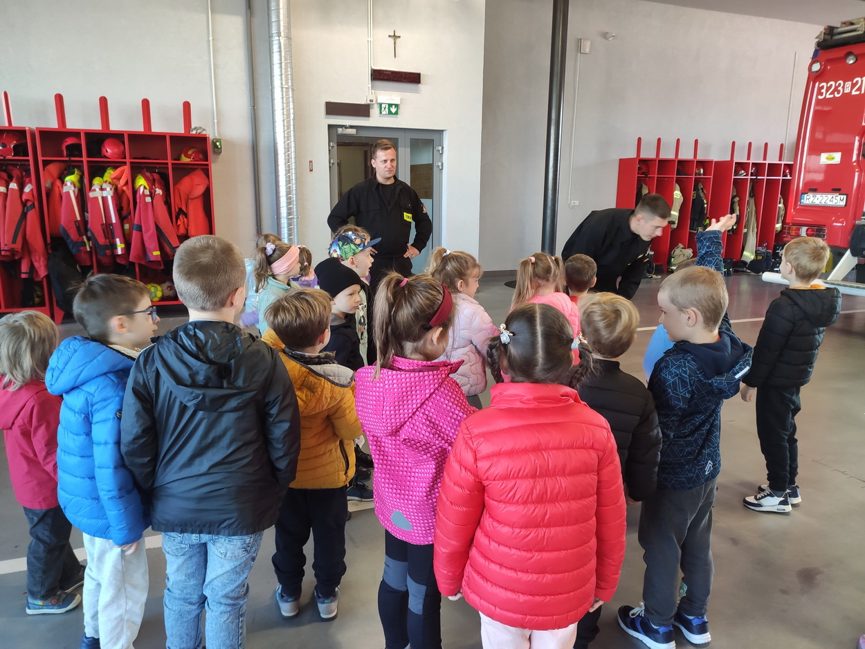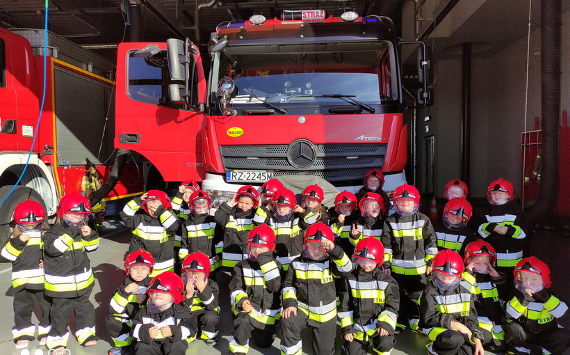 17 października dzieci z grup Biedronki i Tygryski wybrały się na wycieczkę do Państwowej Straży Pożarnej w Rzeszowie. Strażacy opowiedzieli dzieciom o odpowiedzialności, niebezpieczeństwach i trudnościach jakie spotykają podczas akcji ratowniczych. Przedszkolaki mogły z bliska obejrzeć samochody i sprzęt pożarniczy, a także obserwowały zjazd do akcji po metalowej rurze. Wielką atrakcją dla wszystkich było wejście do wozu strażackiego. Podsumowaniem spotkania było wcielenie się w rolę strażaka. Nasi wychowankowie ubrani się w stroje strażackie i hełmy musieli wydostać się z „zadymionego” pomieszczenia. Przekonali się jak cenna jest każda minuta, sprawność i szybkie działanie.