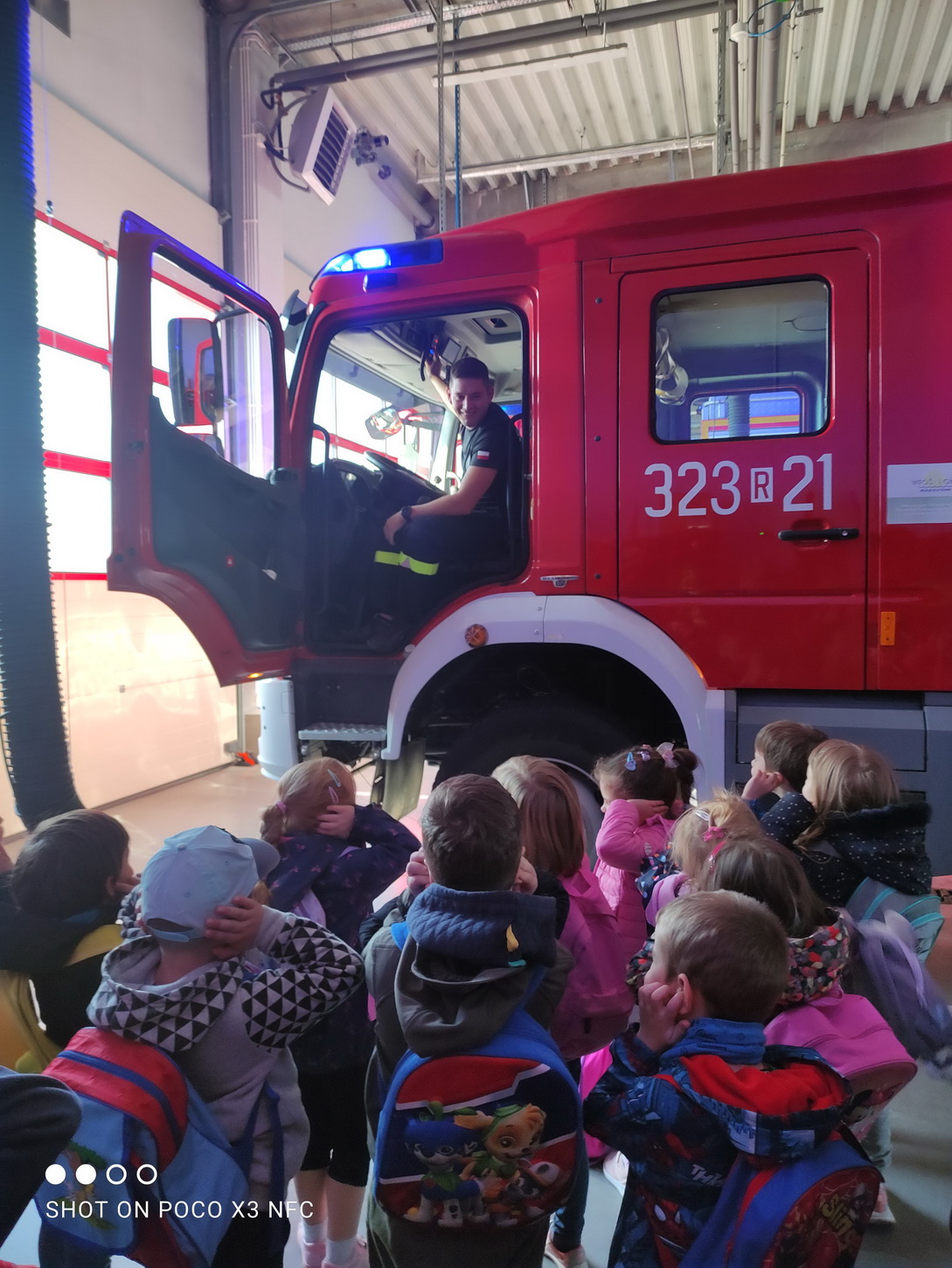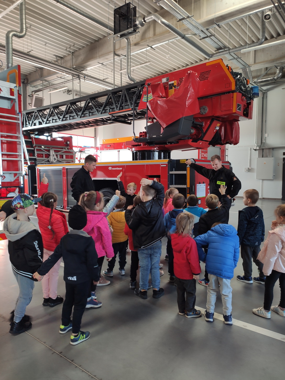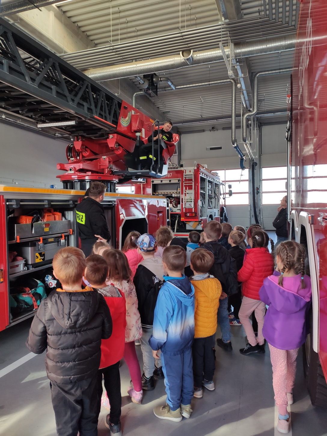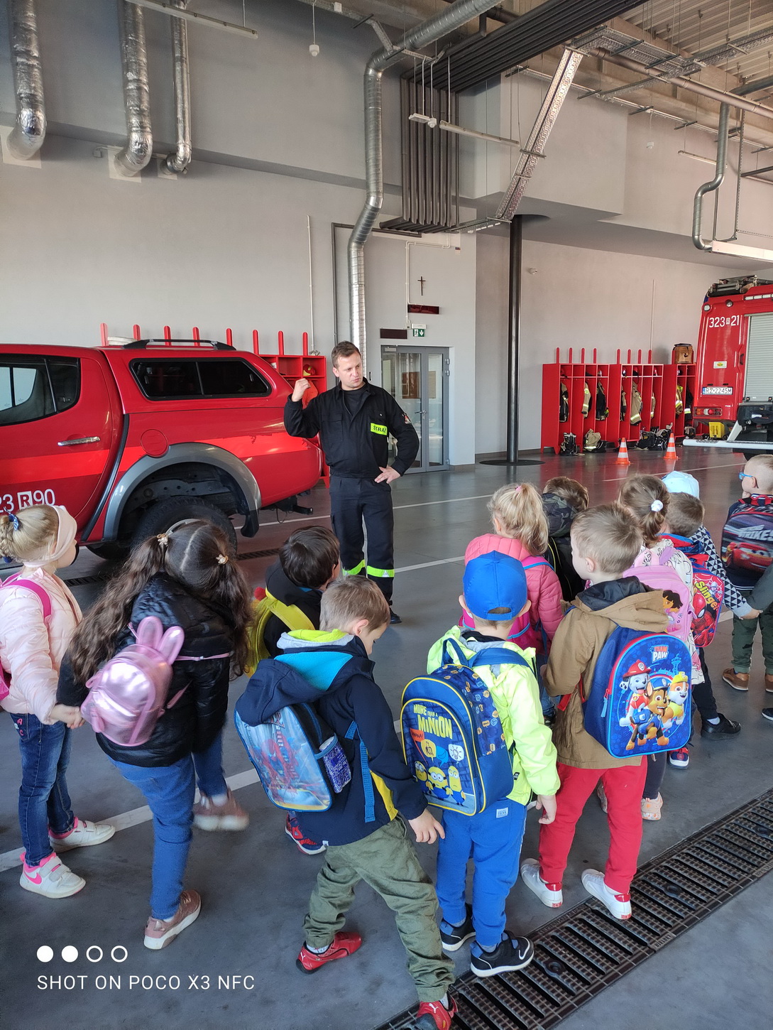 17 października dzieci z grup Biedronki i Tygryski wybrały się na wycieczkę do Państwowej Straży Pożarnej w Rzeszowie. Strażacy opowiedzieli dzieciom o odpowiedzialności, niebezpieczeństwach i trudnościach jakie spotykają podczas akcji ratowniczych. Przedszkolaki mogły z bliska obejrzeć samochody i sprzęt pożarniczy, a także obserwowały zjazd do akcji po metalowej rurze. Wielką atrakcją dla wszystkich było wejście do wozu strażackiego. Podsumowaniem spotkania było wcielenie się w rolę strażaka. Nasi wychowankowie ubrani się w stroje strażackie i hełmy musieli wydostać się z „zadymionego” pomieszczenia. Przekonali się jak cenna jest każda minuta, sprawność i szybkie działanie.
