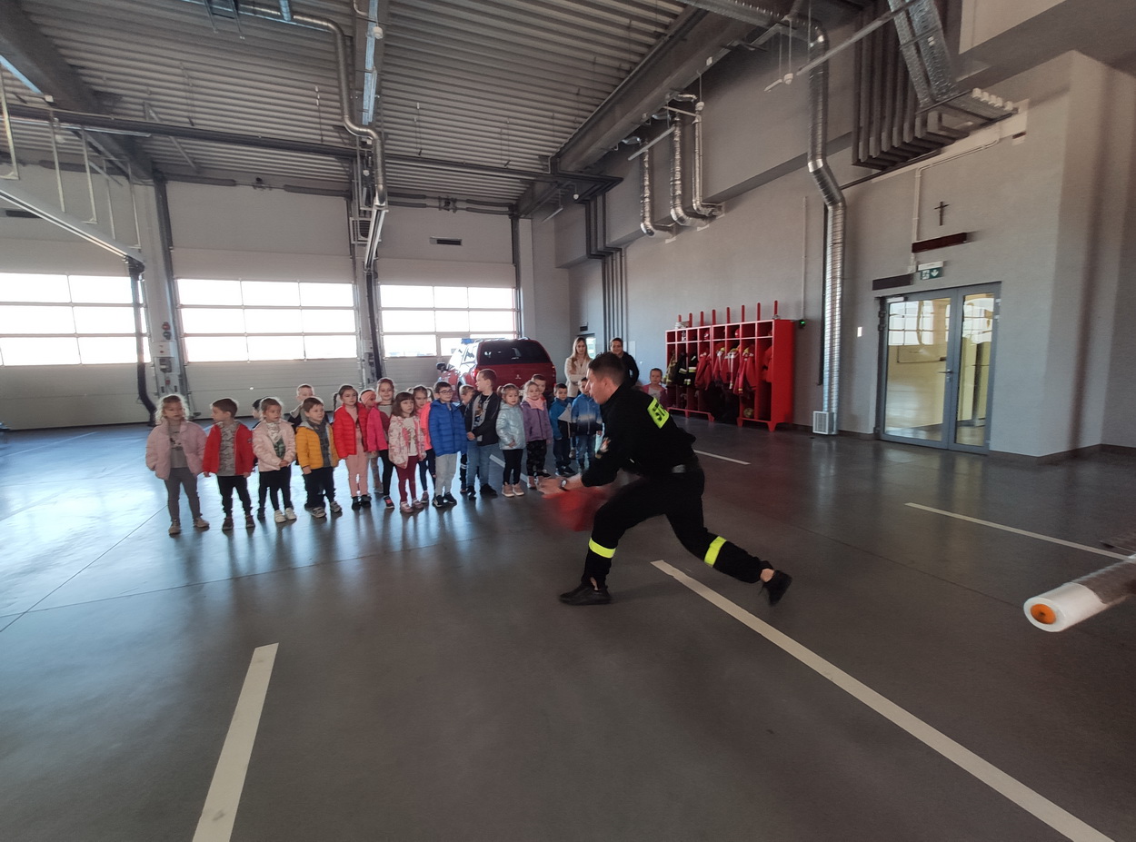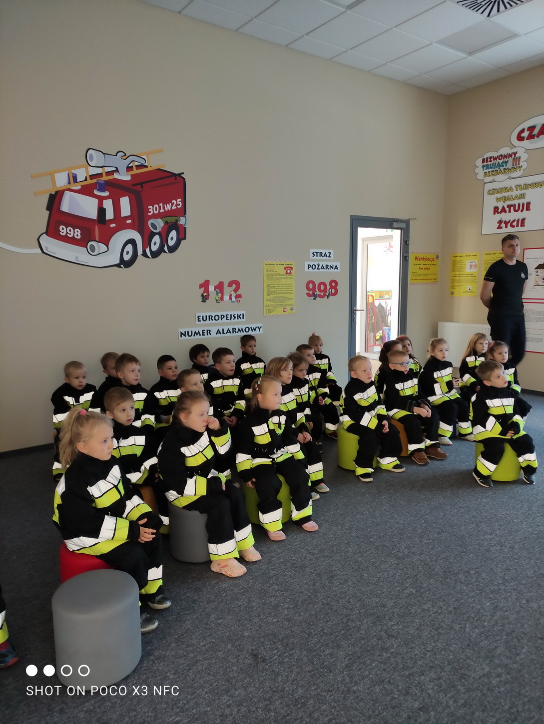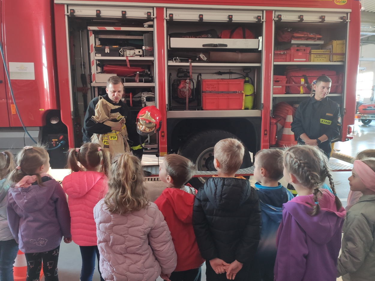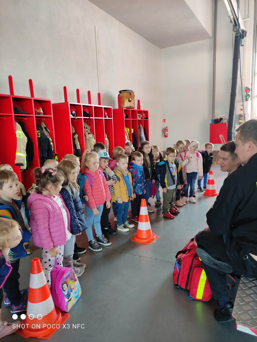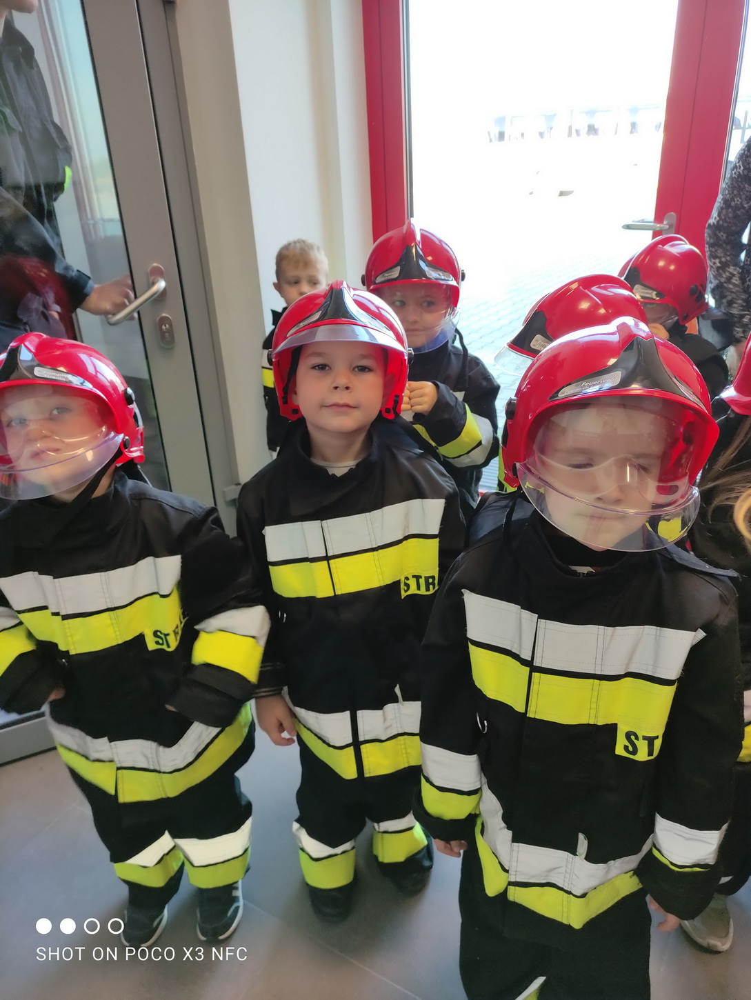 17 października dzieci z grup Biedronki i Tygryski wybrały się na wycieczkę do Państwowej Straży Pożarnej w Rzeszowie. Strażacy opowiedzieli dzieciom o odpowiedzialności, niebezpieczeństwach i trudnościach jakie spotykają podczas akcji ratowniczych. Przedszkolaki mogły z bliska obejrzeć samochody i sprzęt pożarniczy, a także obserwowały zjazd do akcji po metalowej rurze. Wielką atrakcją dla wszystkich było wejście do wozu strażackiego. Podsumowaniem spotkania było wcielenie się w rolę strażaka. Nasi wychowankowie ubrani się w stroje strażackie i hełmy musieli wydostać się z „zadymionego” pomieszczenia. Przekonali się jak cenna jest każda minuta, sprawność i szybkie działanie.