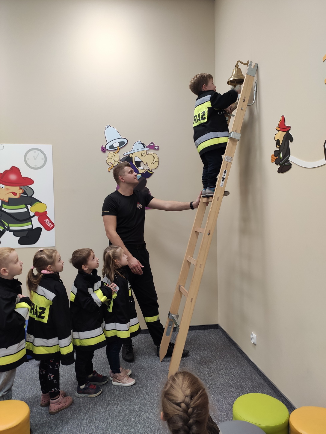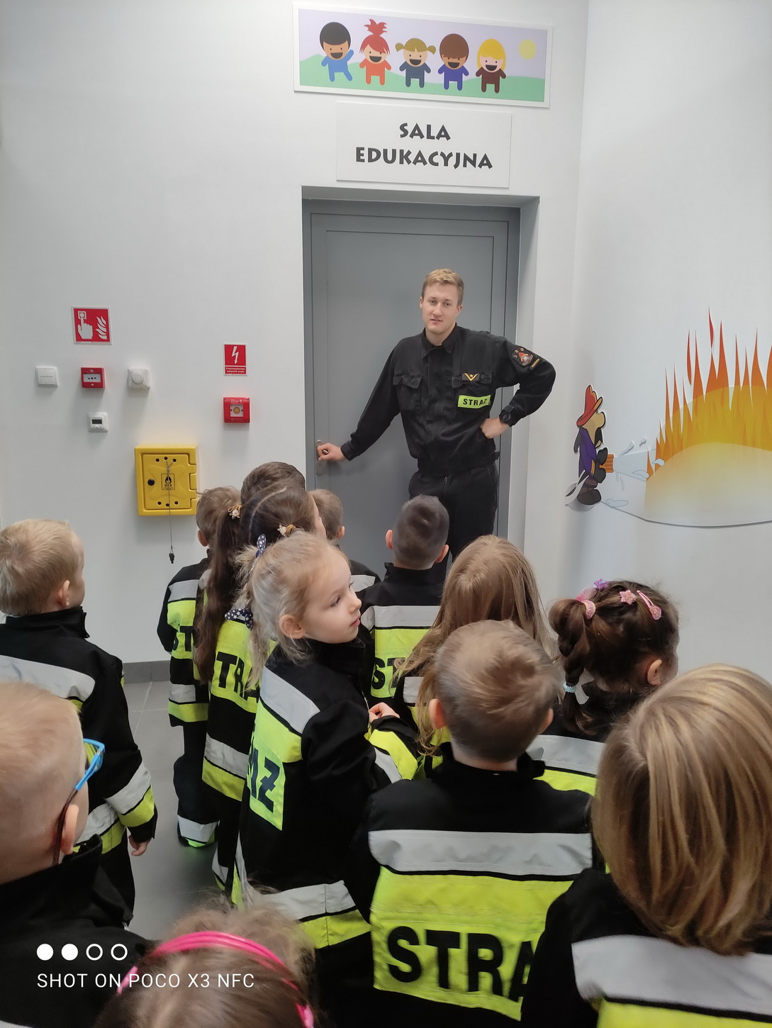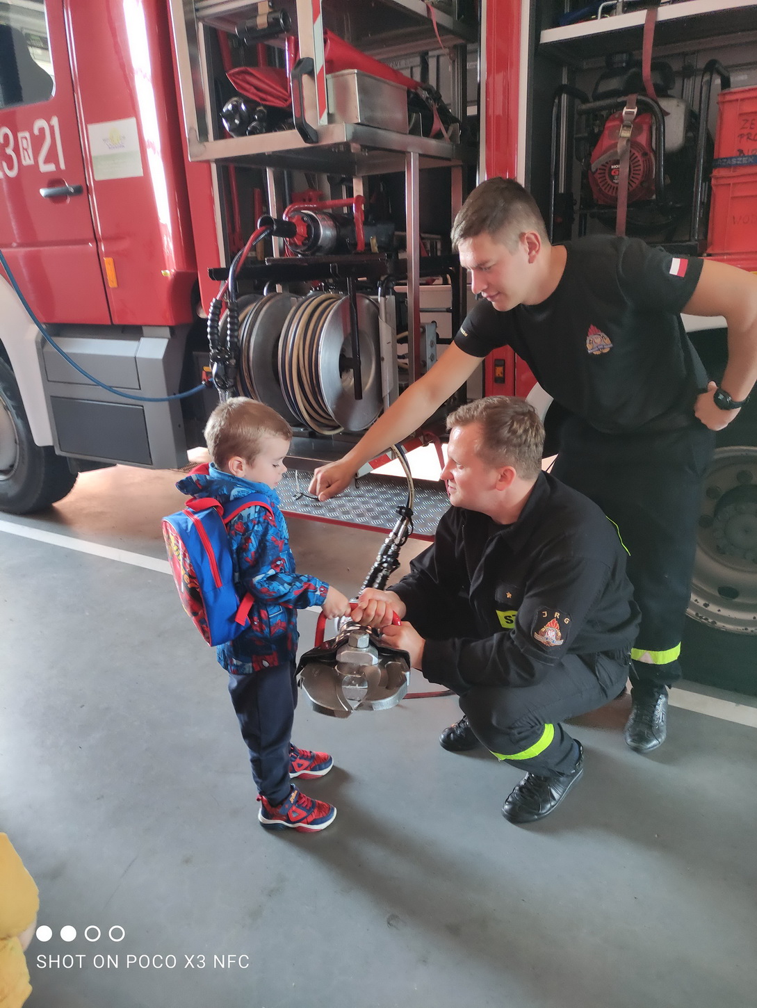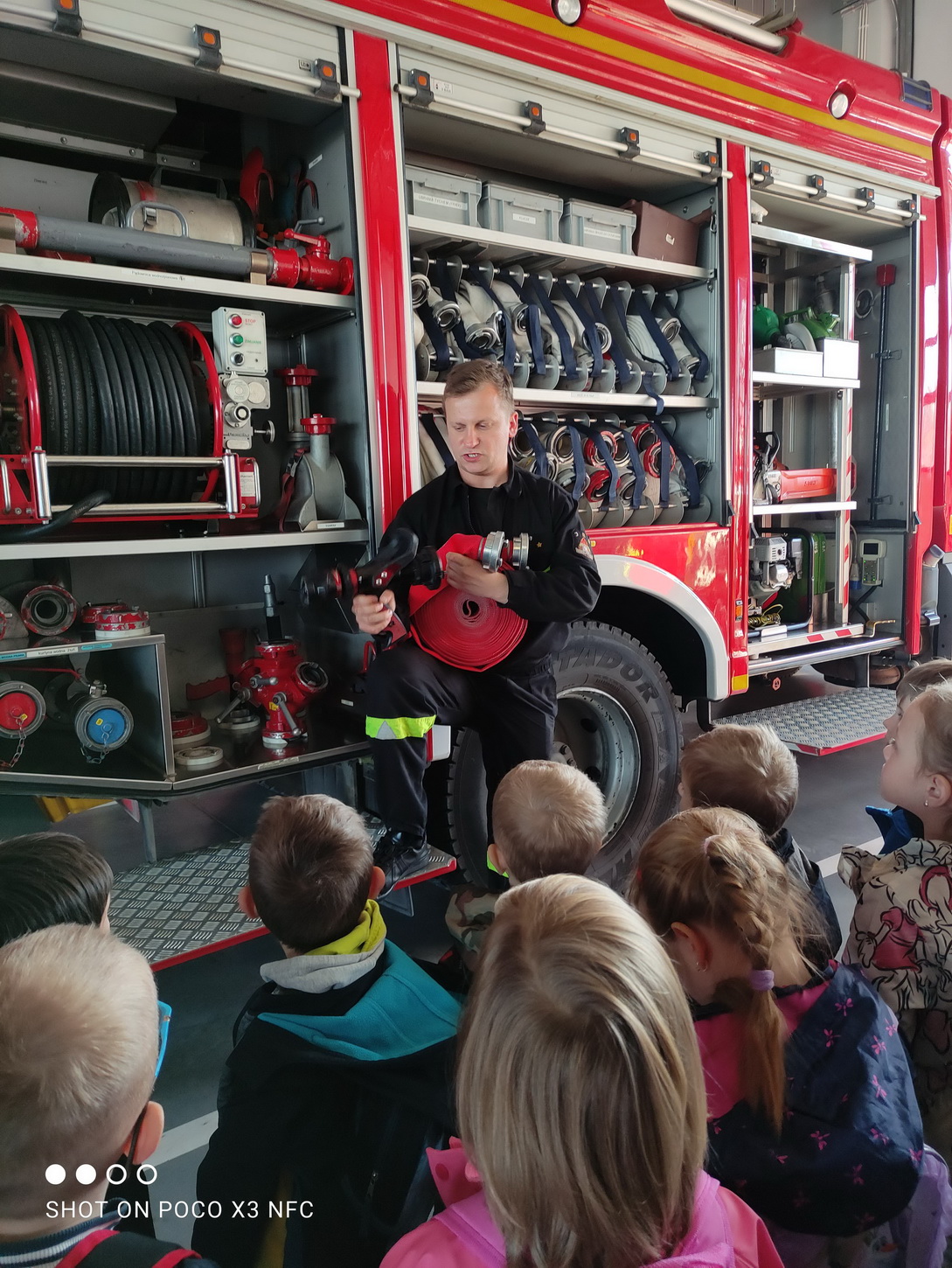17 października dzieci z grup Biedronki i Tygryski wybrały się na wycieczkę do Państwowej Straży Pożarnej w Rzeszowie. Strażacy opowiedzieli dzieciom o odpowiedzialności, niebezpieczeństwach i trudnościach jakie spotykają podczas akcji ratowniczych. Przedszkolaki mogły z bliska obejrzeć samochody i sprzęt pożarniczy, a także obserwowały zjazd do akcji po metalowej rurze. Wielką atrakcją dla wszystkich było wejście do wozu strażackiego. Podsumowaniem spotkania było wcielenie się w rolę strażaka. Nasi wychowankowie ubrani się w stroje strażackie i hełmy musieli wydostać się z „zadymionego” pomieszczenia. Przekonali się jak cenna jest każda minuta, sprawność i szybkie działanie.