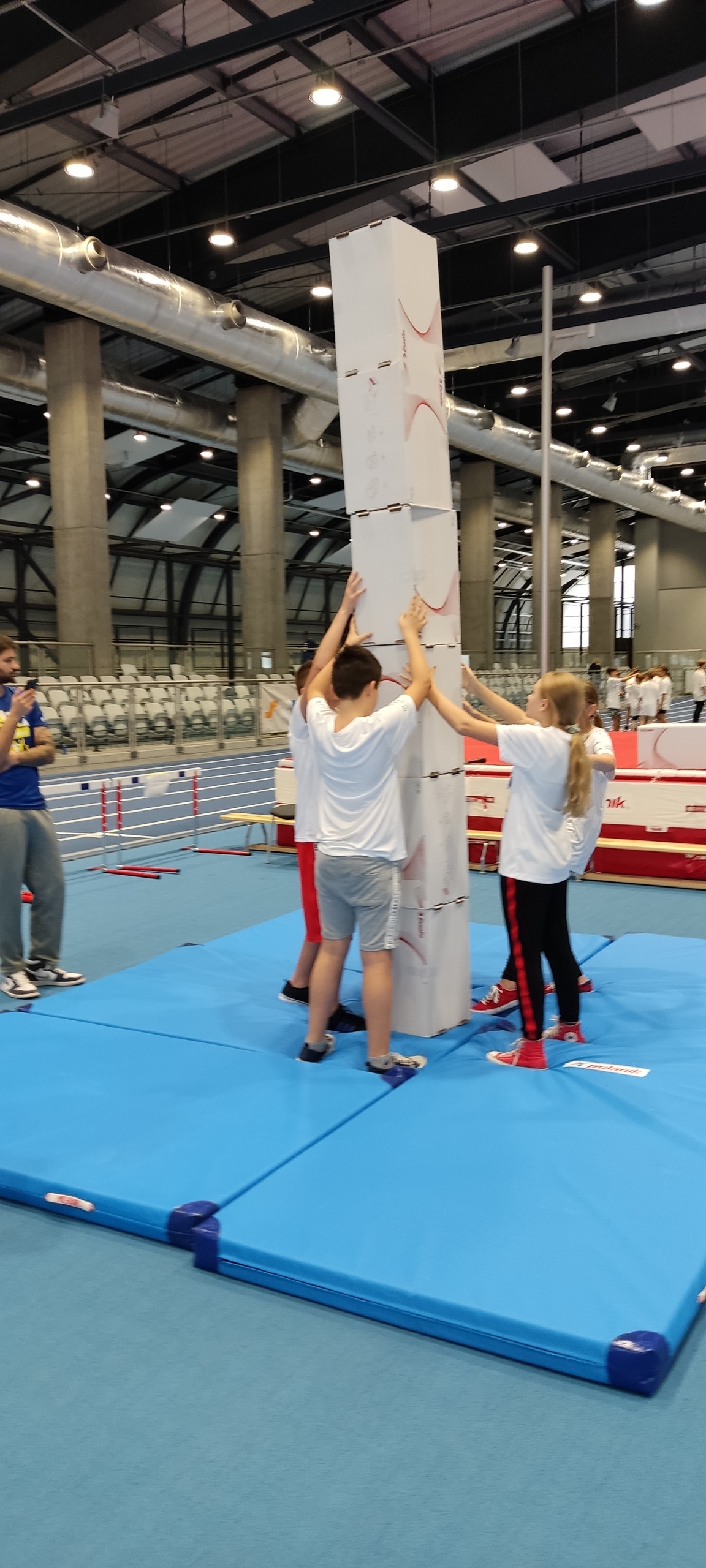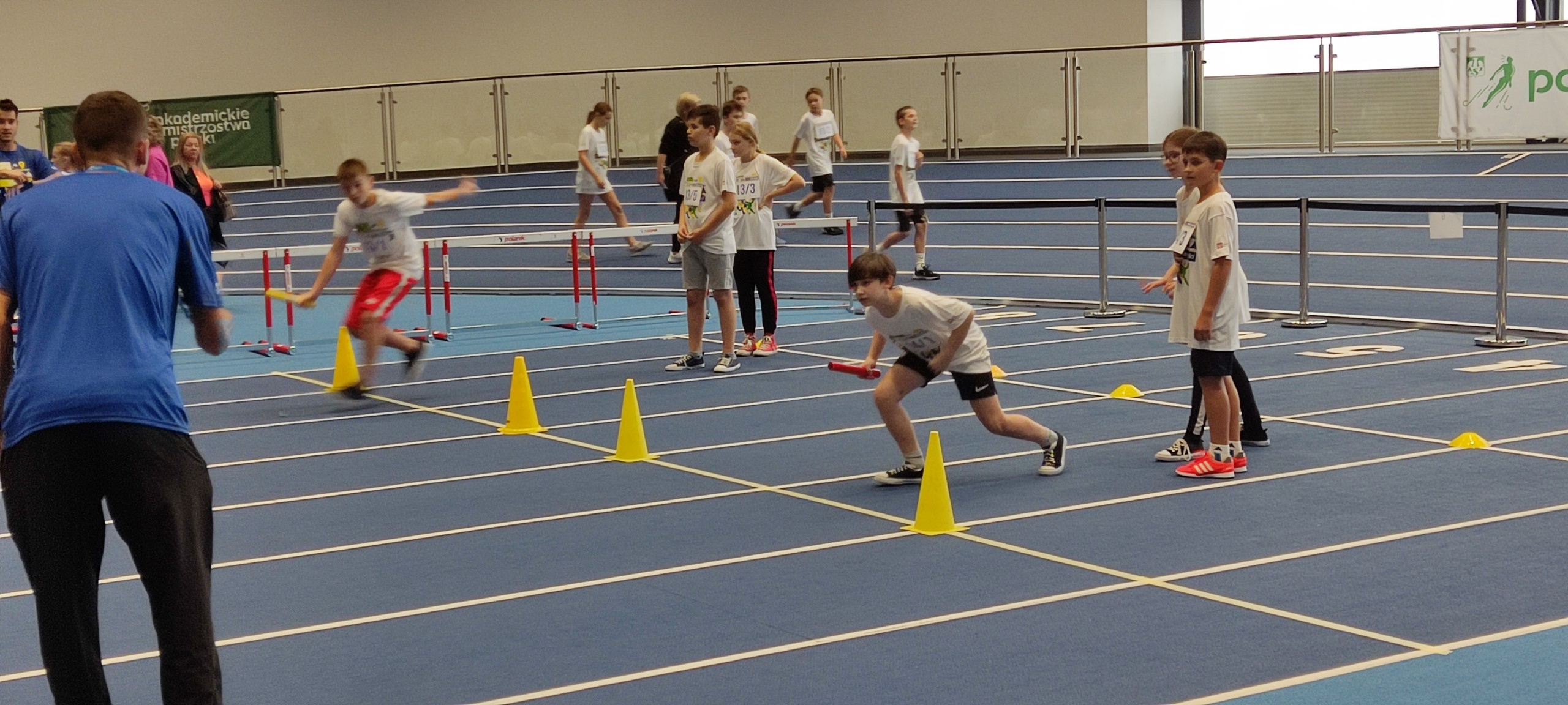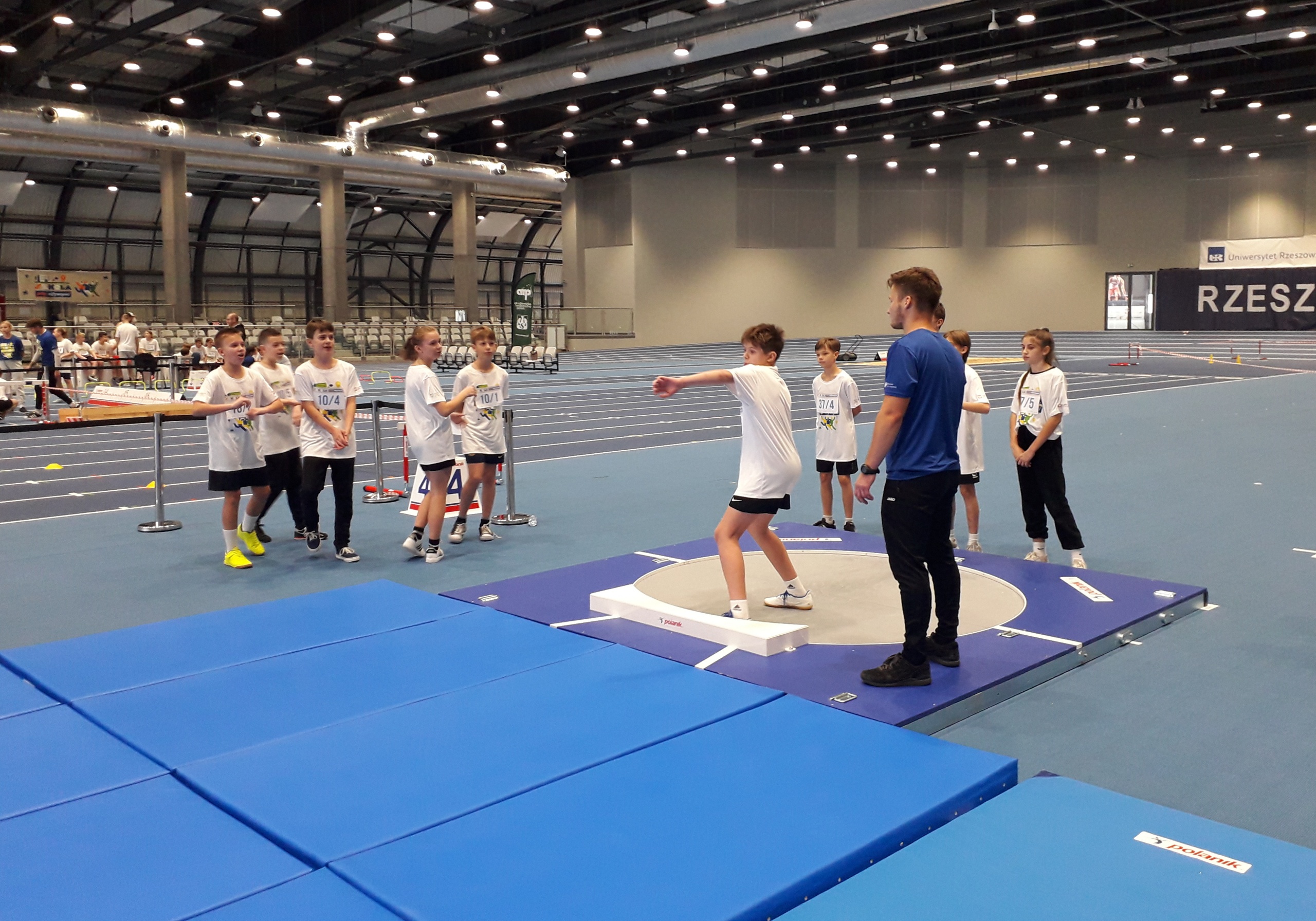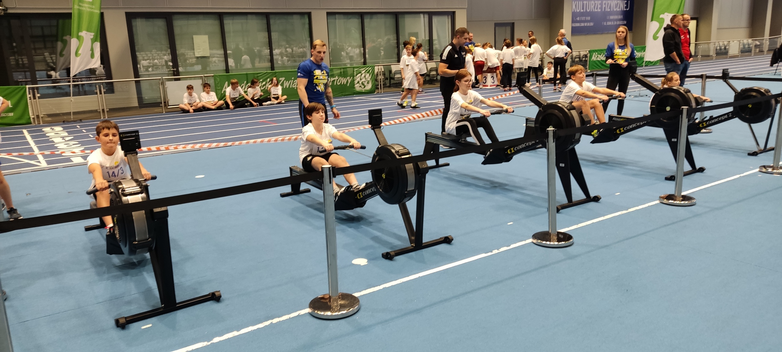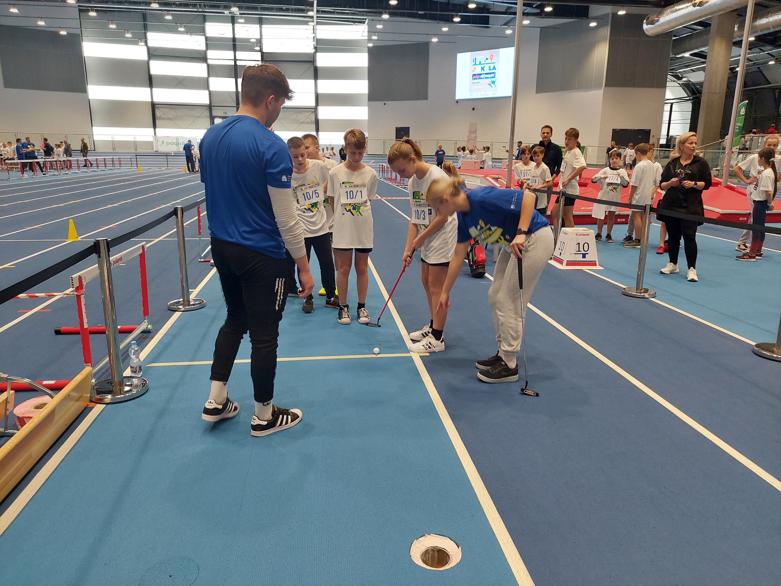 Pięcioosobowe drużyny z naszej szkoły, reprezentujące klasy: 4a, 5a, 5b, 6a i 6b, pod opieką p. Marzeny Grzebyk, p. Radosława Sztaby i p. Piotra Wałacha, 20 października udały się do Uniwersyteckiego Centrum Lekkoatletycznego, by wziąć udział w dziesięciu konkurencjach szybkościowych, celnościowych i sprawnościowych. Wśród zadań, które należało wykonać były: wiosłowanie na ergometrze wioślarskim, rzuty do kosza, sztafeta, przejście toru przeszkód, pchnięcie kulą i gra w golfa. Nie zabrakło także zadań wymagających sprytu i zagadek o tematyce sportowej. W rywalizacji wzięło udział aż 50 drużyn i, mimo że nie udało nam się wywalczyć głównej nagrody, to wszyscy byli zadowoleni z możliwości spędzenia czasu w sposób aktywny, we współpracy ze sobą, zdrowej rywalizacji i miłej atmosferze.