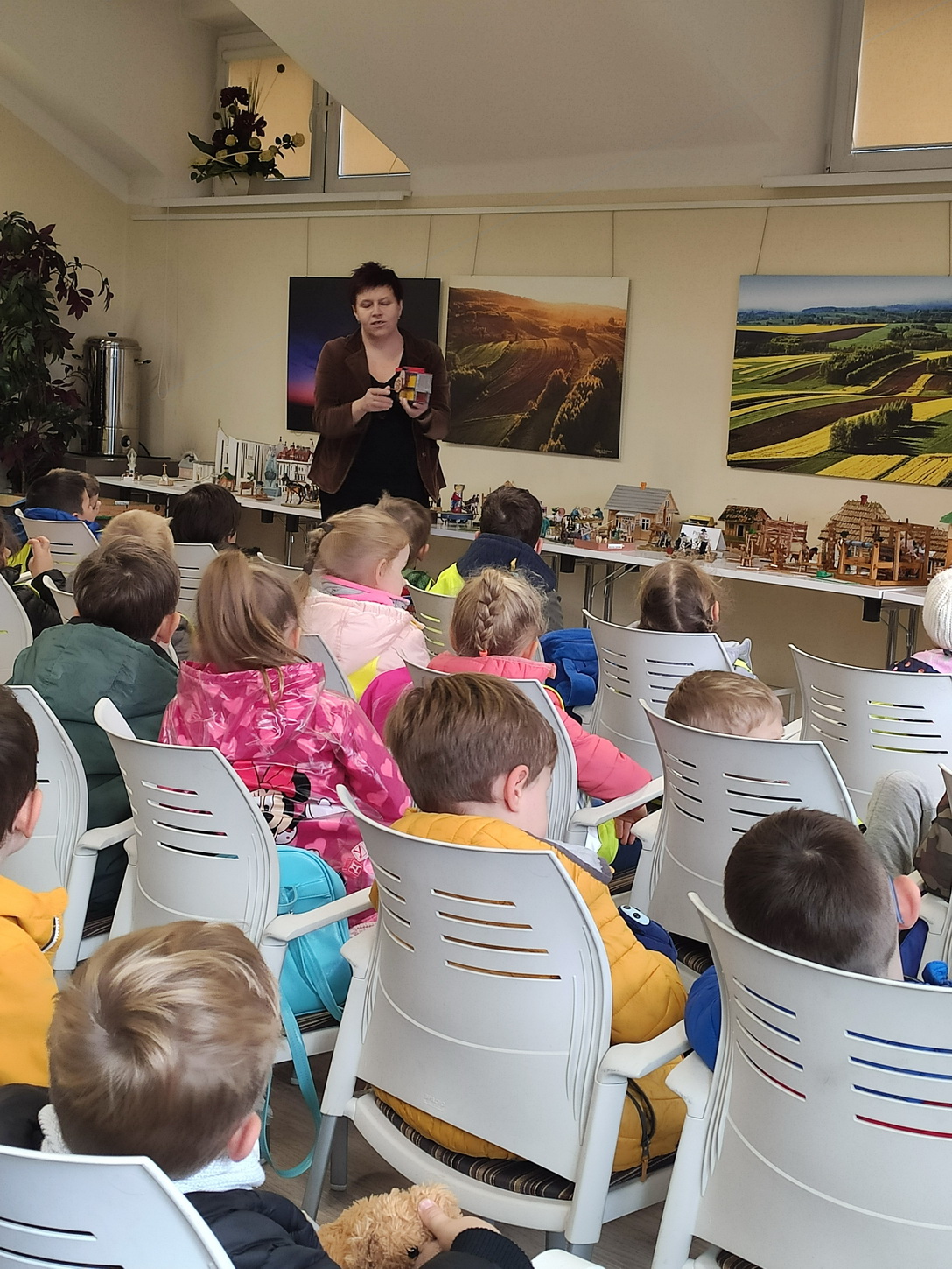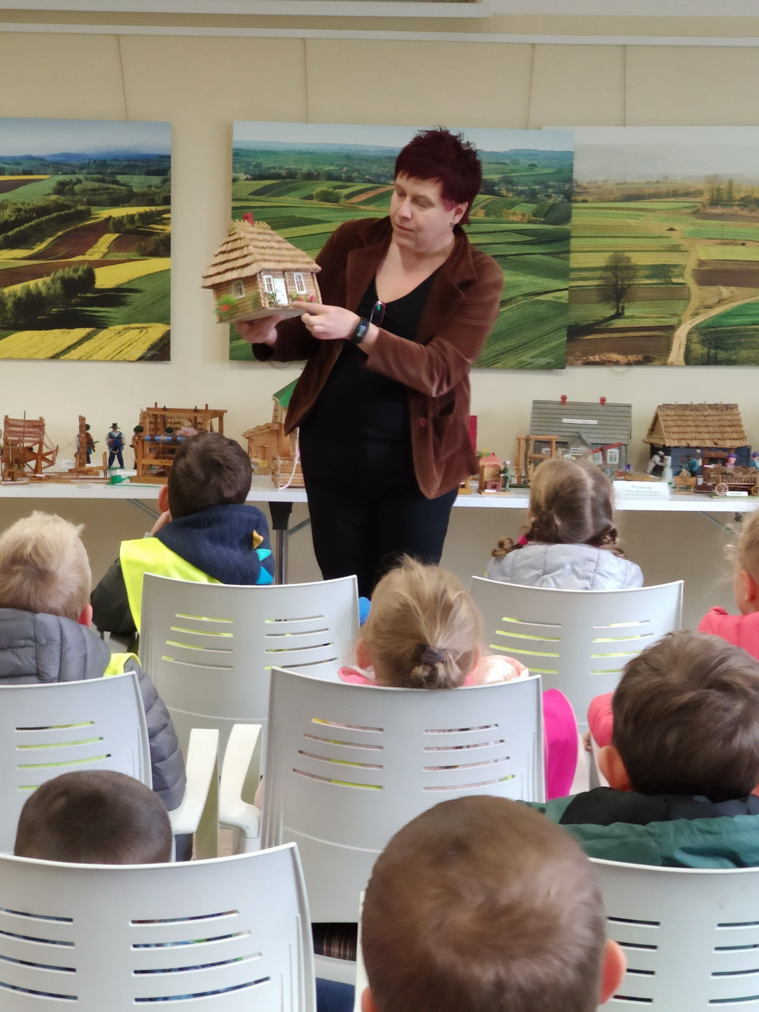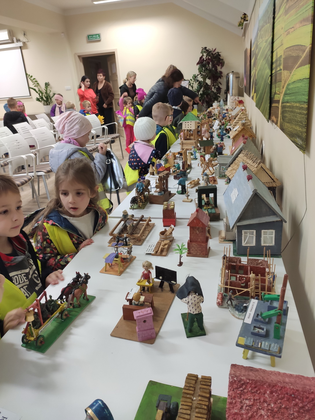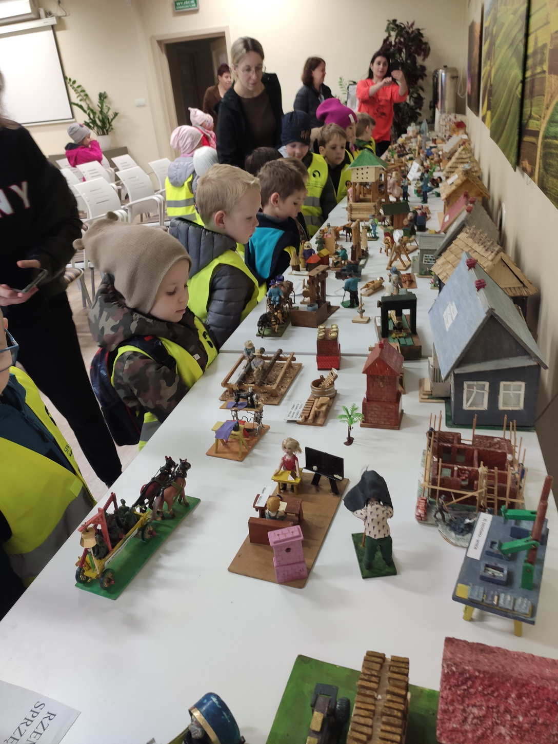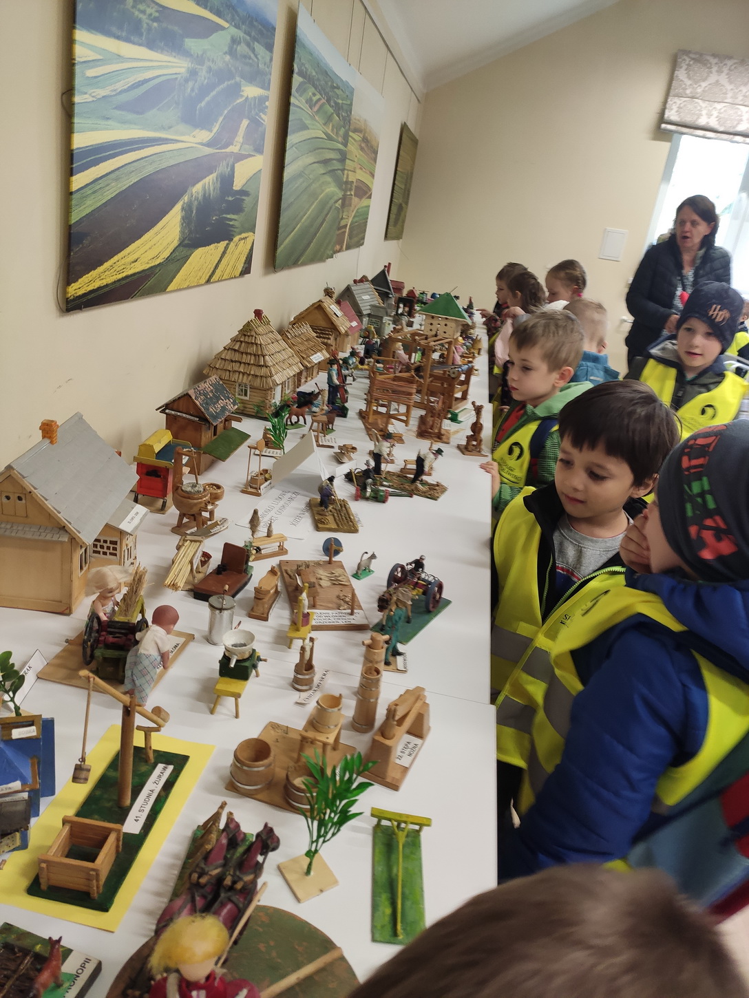 25 października dzieci z grup Biedronki i Tygryski wybrały się na wycieczkę do Gminnej Biblioteki Publicznej i parku w Boguchwale. Na miejscu czekała na nich niesamowita wystawa miniatur, zatytułowana „Ocalić od zapomnienia”. Miniskansen przedstawiał wszystkie urządzenia, jakie były potrzebne do pracy w domu, na polu oraz w warsztatach rzemieślników. Pan Józef Woźnik, czyli autor wystawy, wykonał miniatury własnoręcznie z drewna, sklejek, z opakowań, gwoździ i naturalnych surowców, m.in. słomy czy sznurka. Chciał w ten sposób starszemu pokoleniu przypomnieć czasy dzieciństwa, szczególnie spędzonego na wsi, a młodemu – pokazać, ile trudu wymagała praca dawniej.