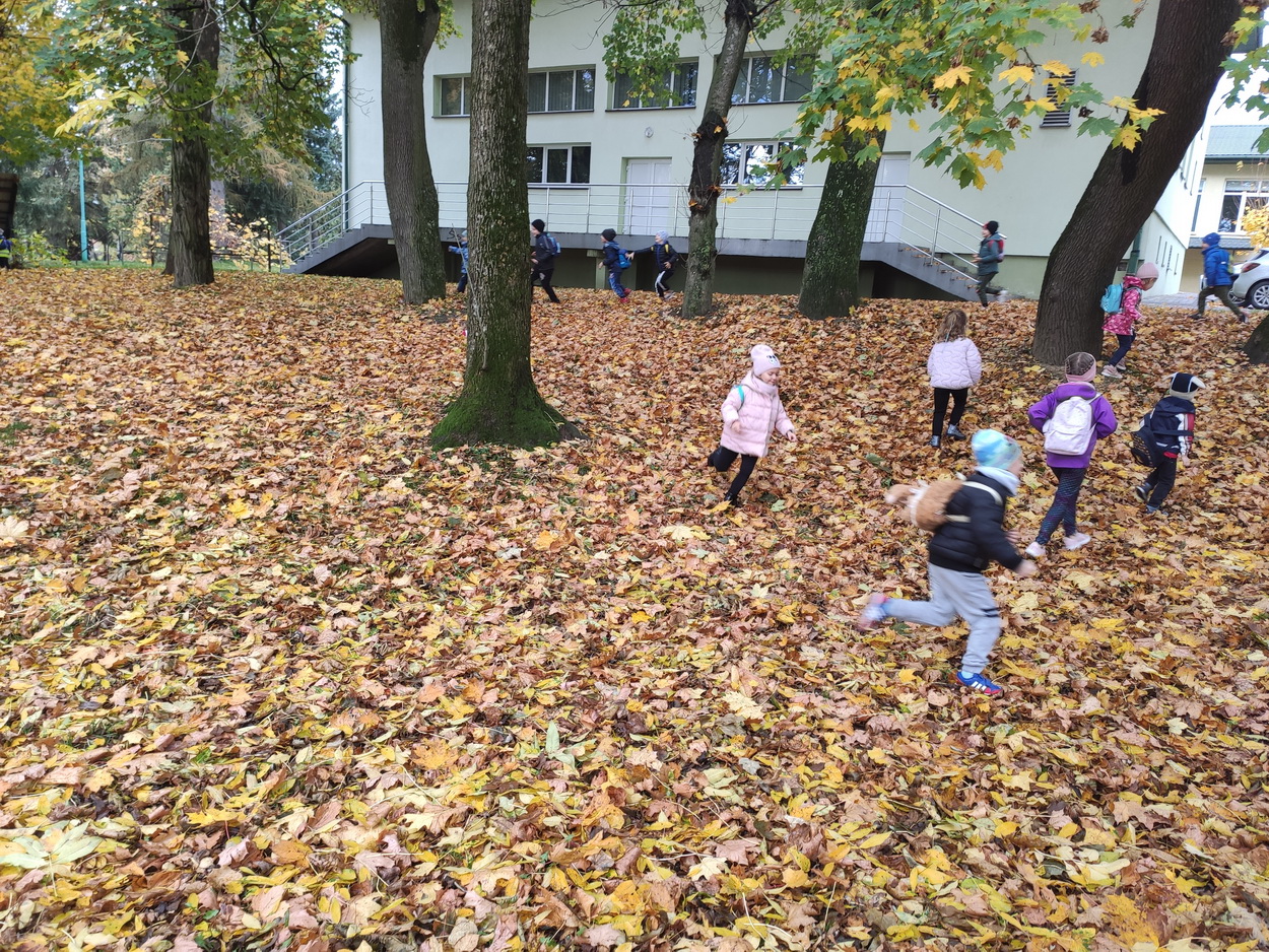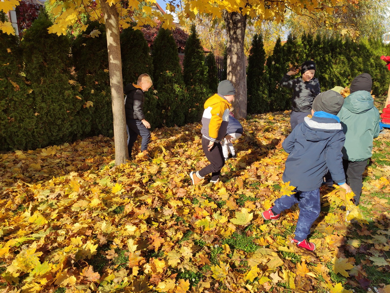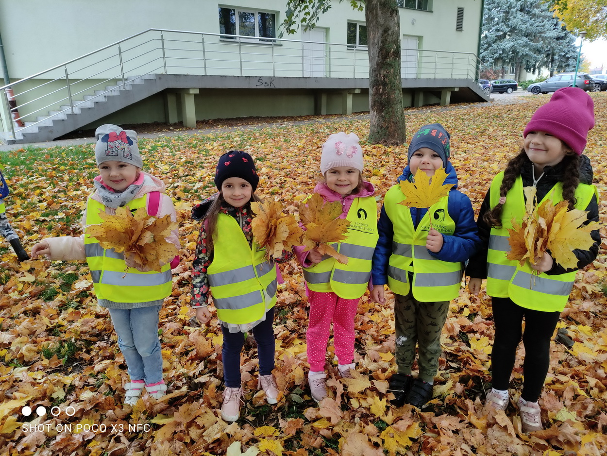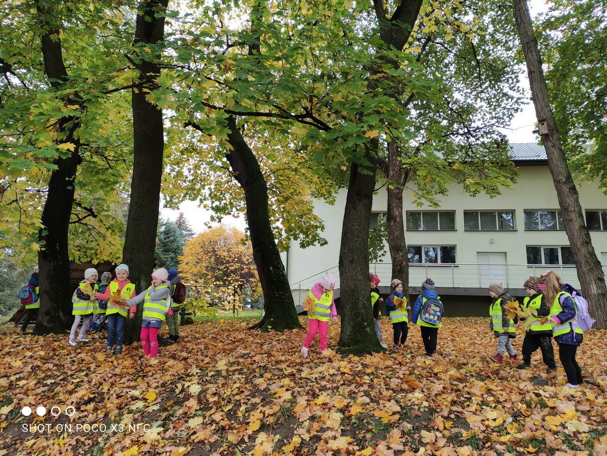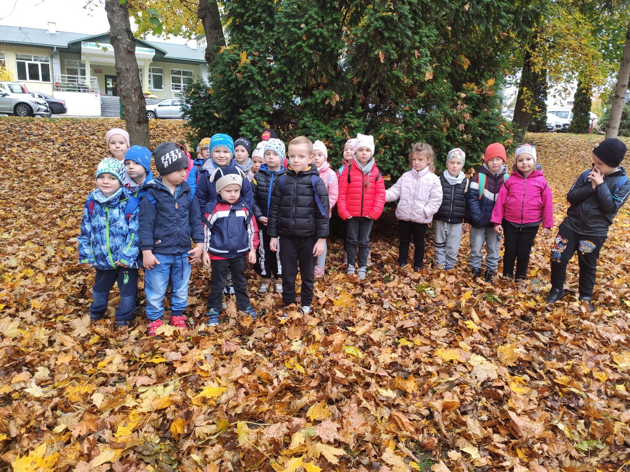 Dziękujemy za wspaniałą lekcję historii. Po wizycie w bibliotece, korzystając z ładnej jesiennej pogody, przedszkolaki pospacerowały parkowymi alejkami, obserwując zmiany zachodzące w przyrodzie. Dzieci zbierały kolorowe liście, z których powstały piękne bukiety.