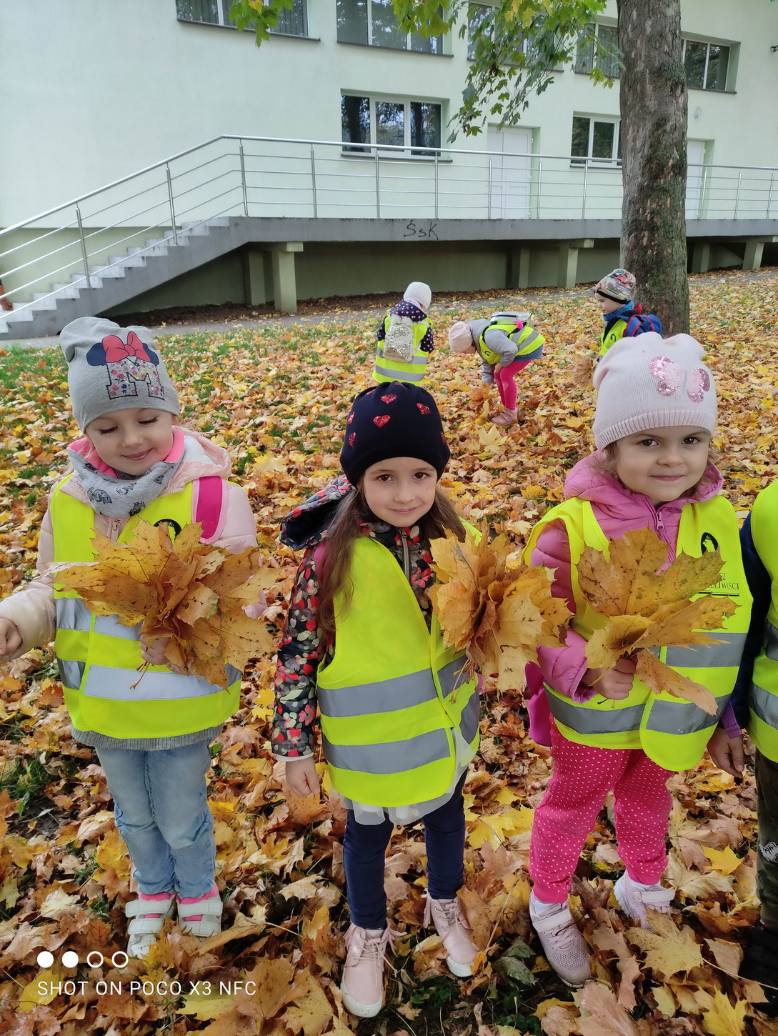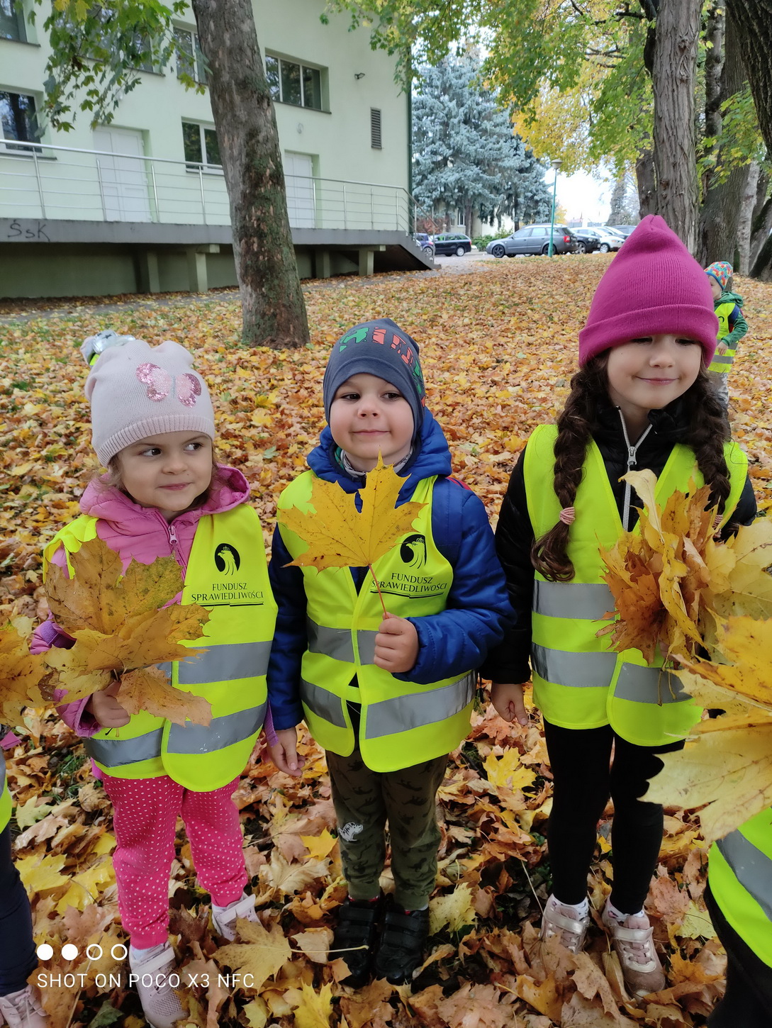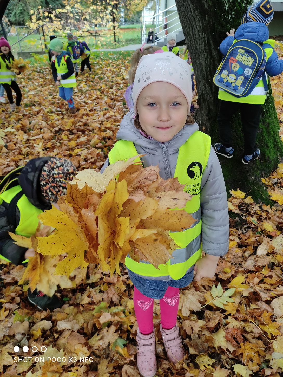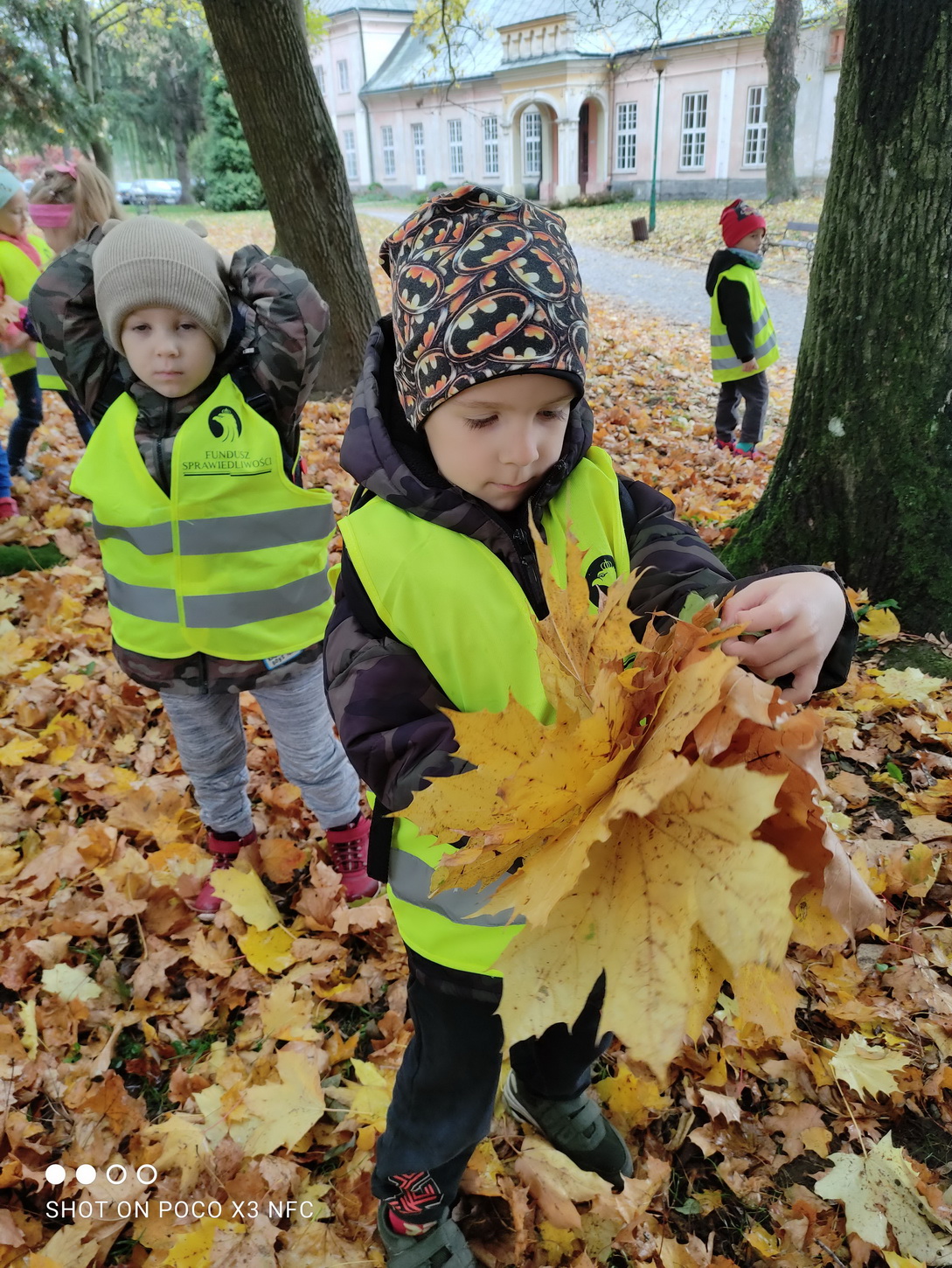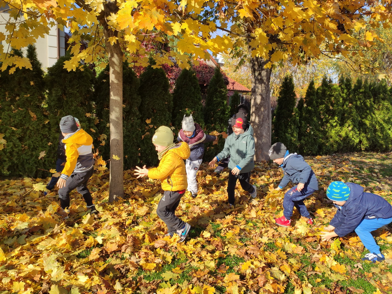 Dziękujemy za wspaniałą lekcję historii. Po wizycie w bibliotece, korzystając z ładnej jesiennej pogody, przedszkolaki pospacerowały parkowymi alejkami, obserwując zmiany zachodzące w przyrodzie. Dzieci zbierały kolorowe liście, z których powstały piękne bukiety.