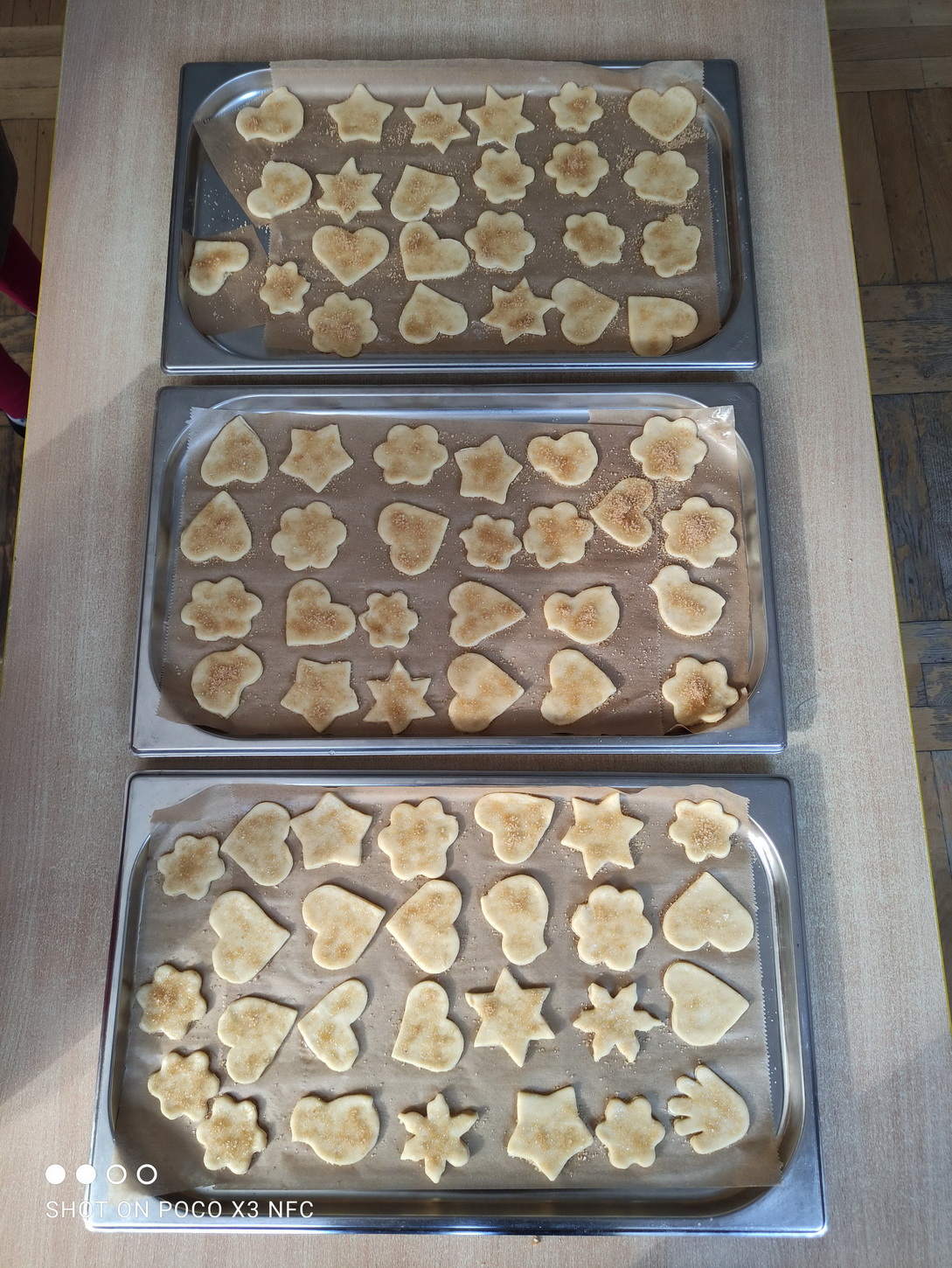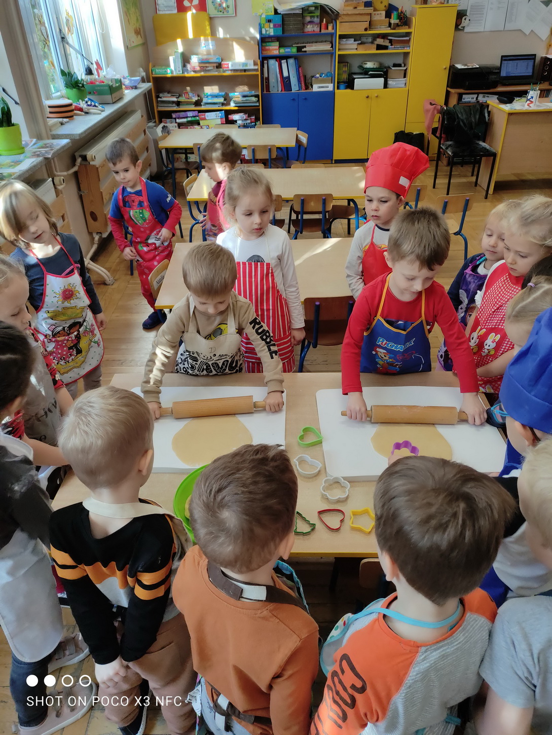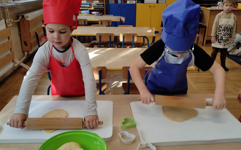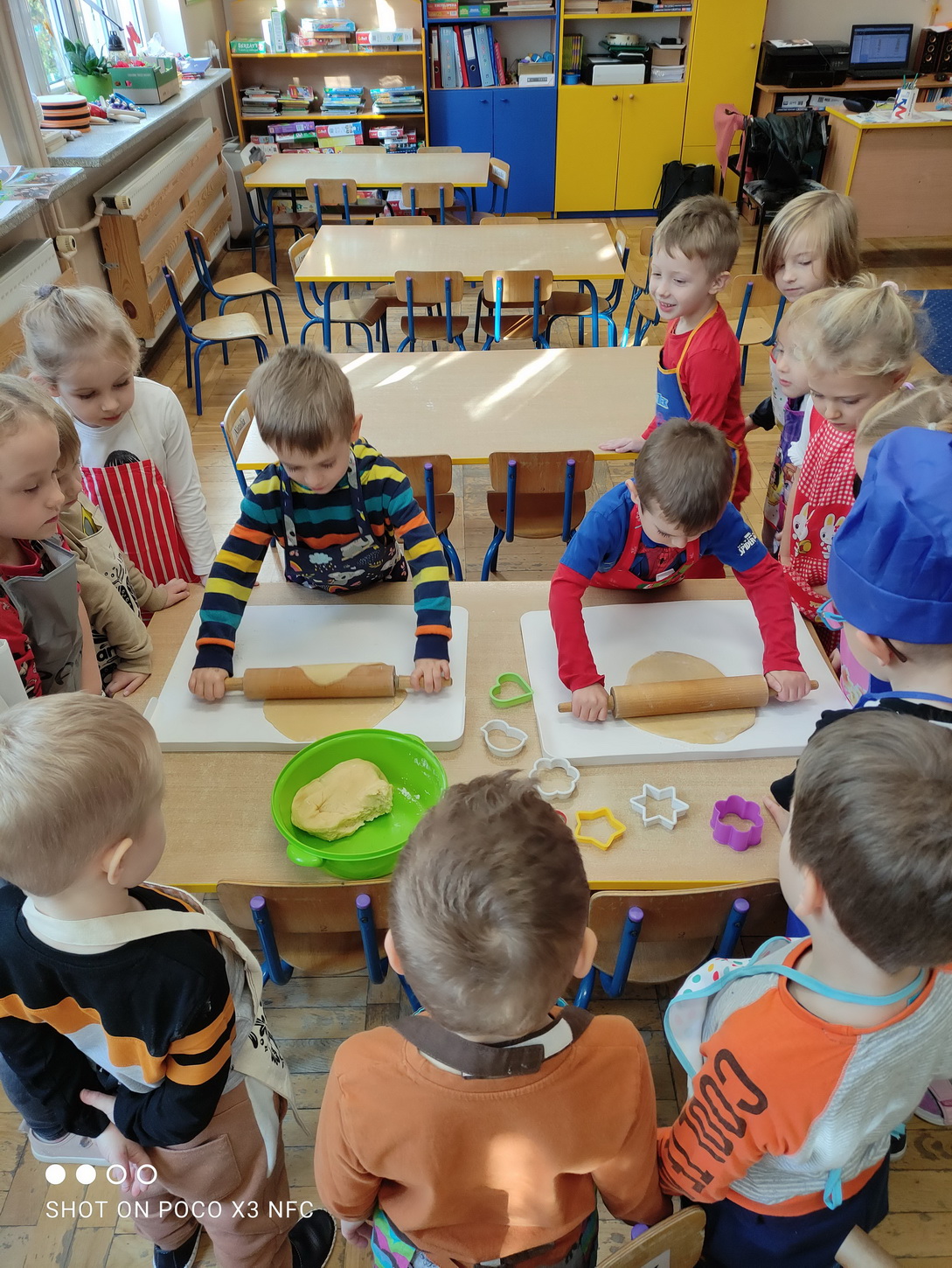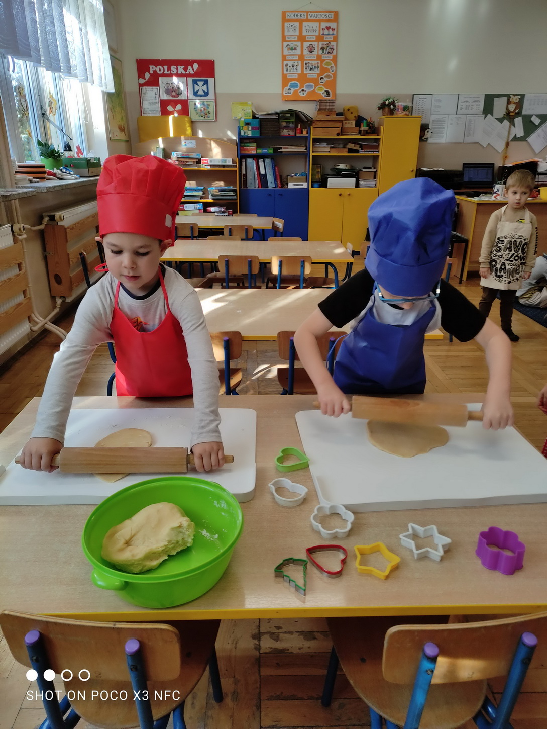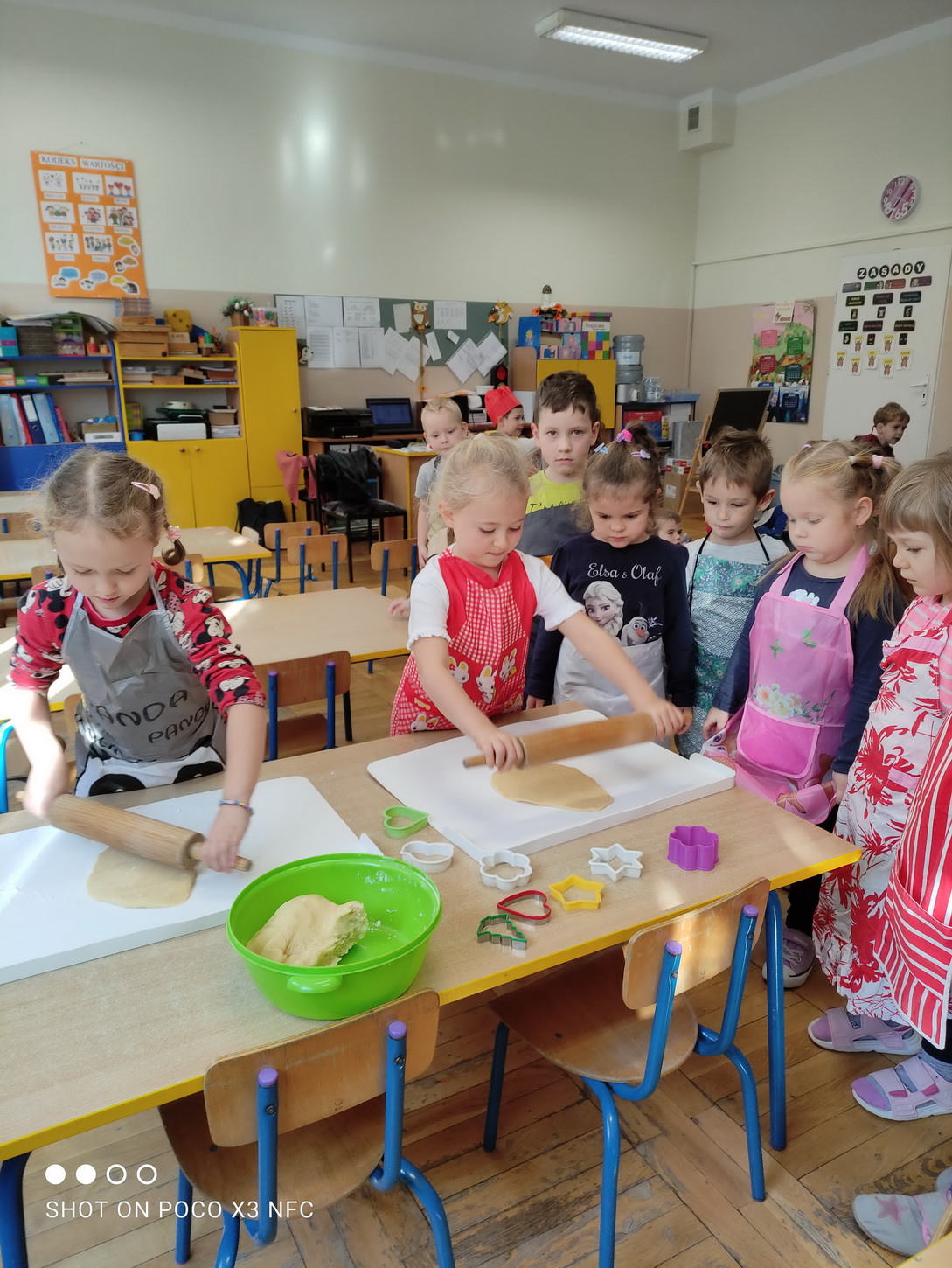 Ostatnie środowe przedpołudnie przedszkolaki z grupy Biedronki spędziły niezwykle pracowicie. Motywem przewodnim tego dnia było pieczenie ciasteczek. Wszystkie dzieci ochoczo i z wielkim zaangażowaniem rozgniatały i wałkowały ciasto. Największą radość sprawiło dzieciom wykrawanie ciasteczek przy użyciu foremek. Były między innymi serduszka, gwiazdeczki czy kwiatuszki. Następnie ciasteczka zostały upieczone w przedszkolnej kuchni, a dookoła rozchodził się aromatyczny zapach…