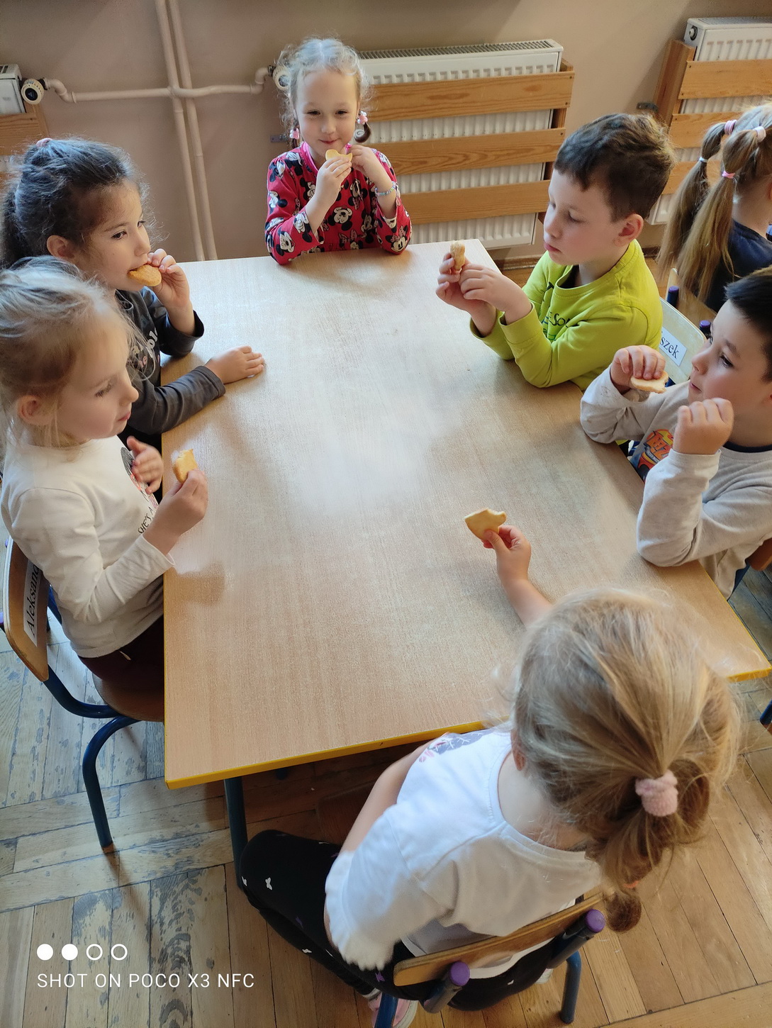 Wspólne wypieki dostarczyły wielu niezapomnianych wrażeń, ale chyba największą przyjemność sprawiła degustacja naszych słodkości. Nieocenione okazały się panie pracujące w kuchni, które wcześniej przygotowały ciasto, a później pomagały upiec smakołyki. Bardzo dziękujemy paniom za pomoc.
