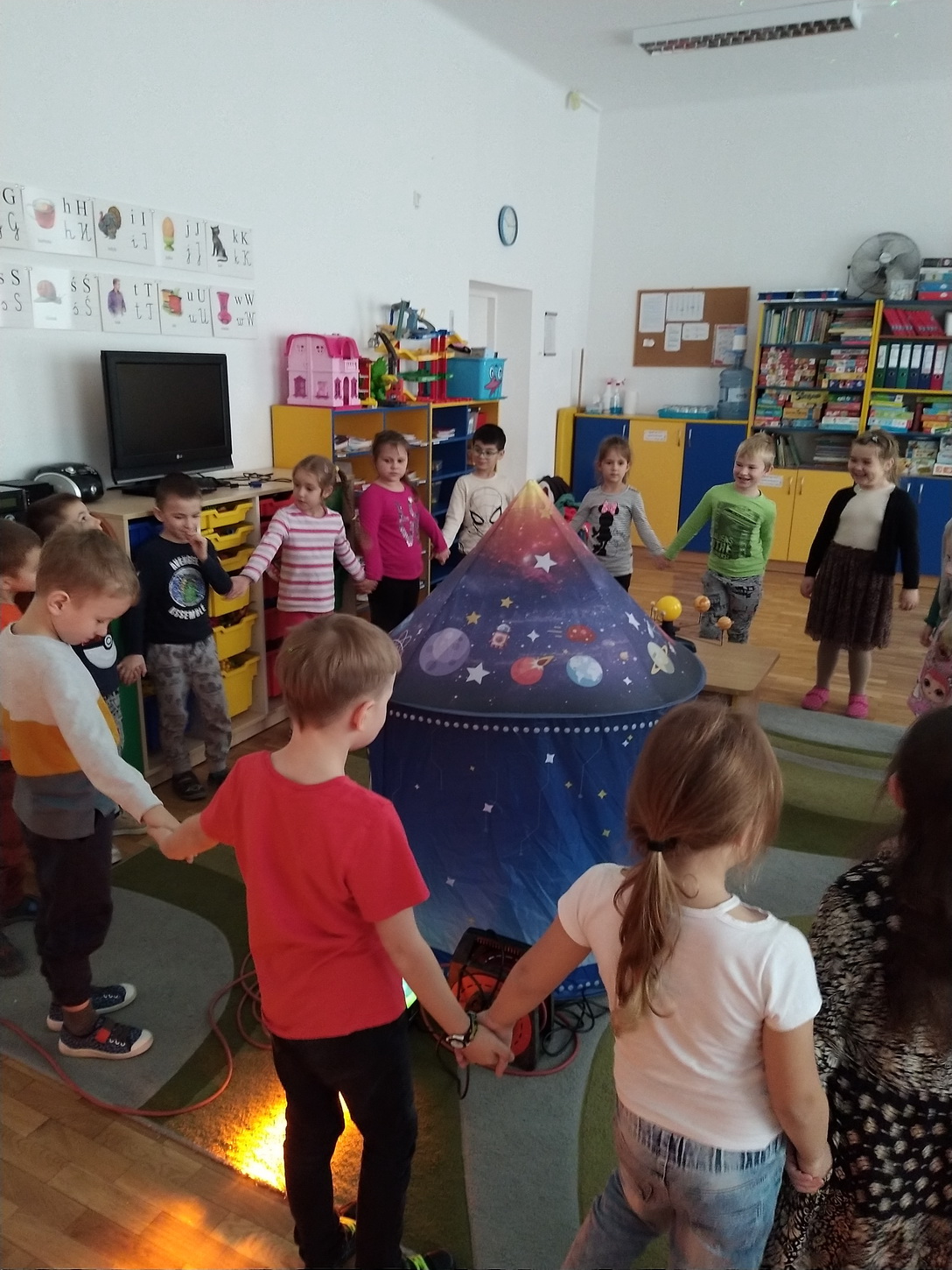 Sale naszego przedszkola na chwilę zmieniły się w stacje kosmiczne, a dzieci odbyły wspaniałą kosmiczną podróż. Podczas lotu spotkaliśmy oczywiście prawdziwych kosmitów, którzy zamieszkują inne, odległe planety.