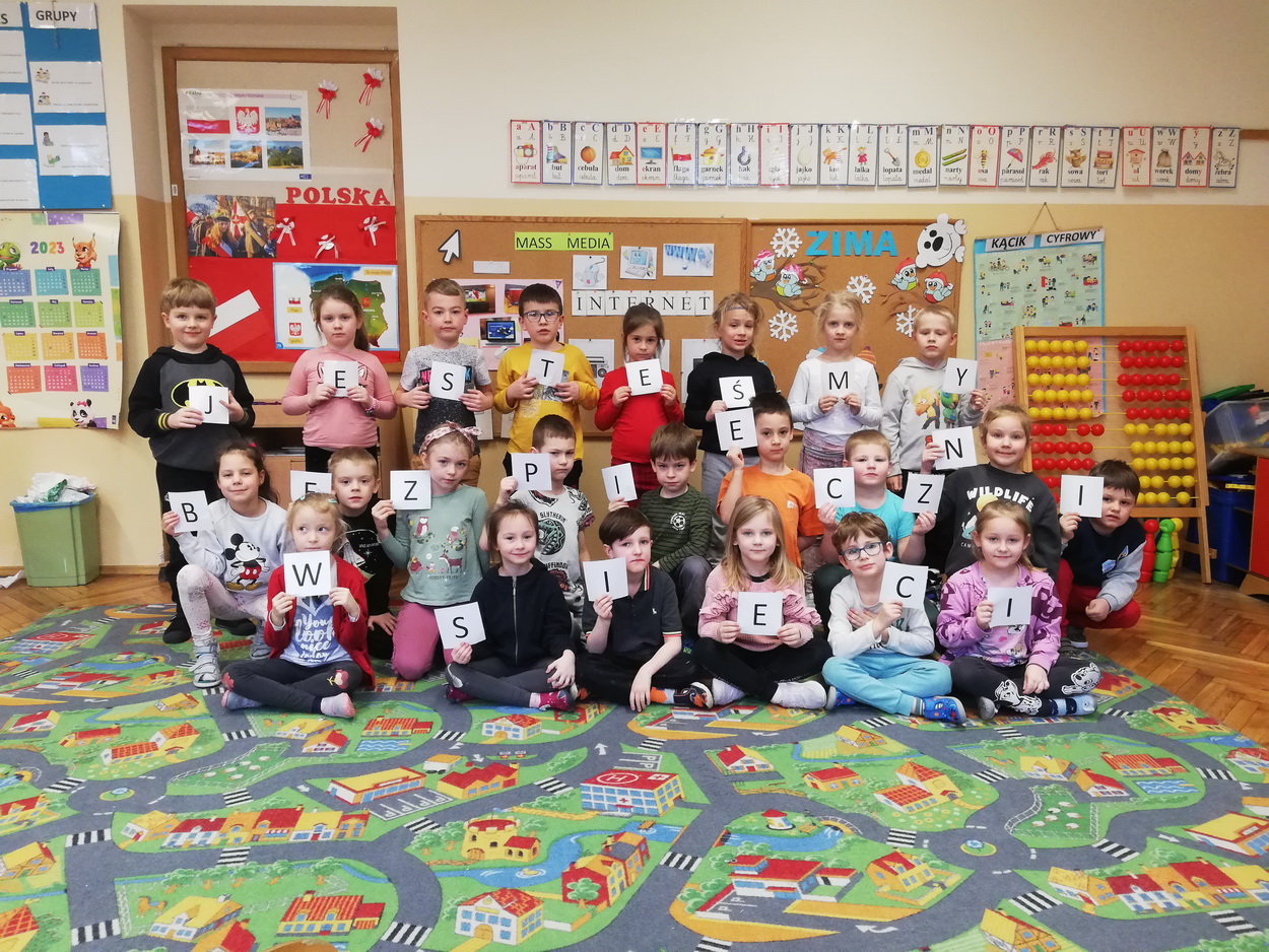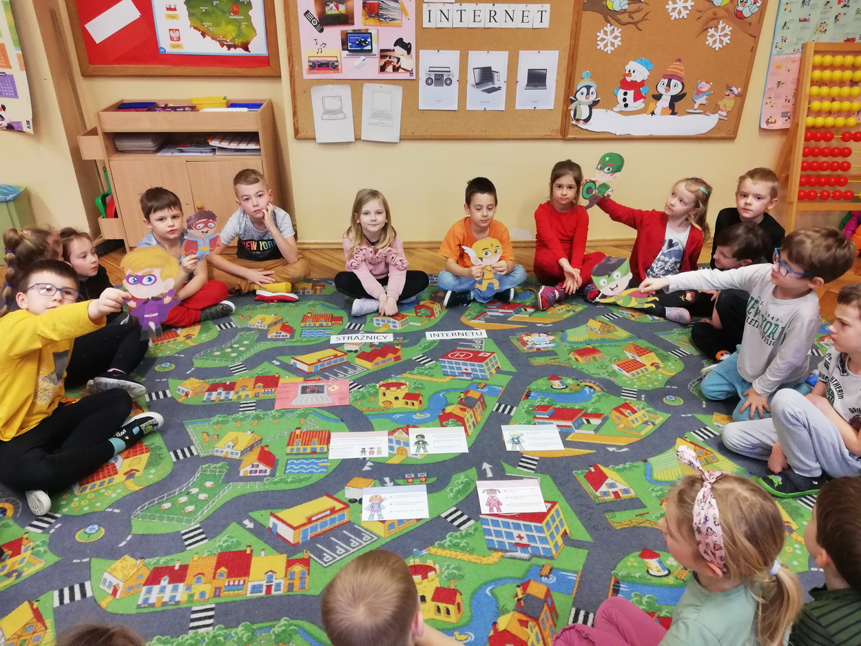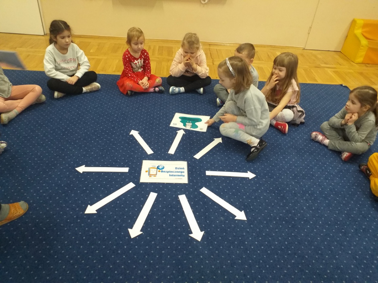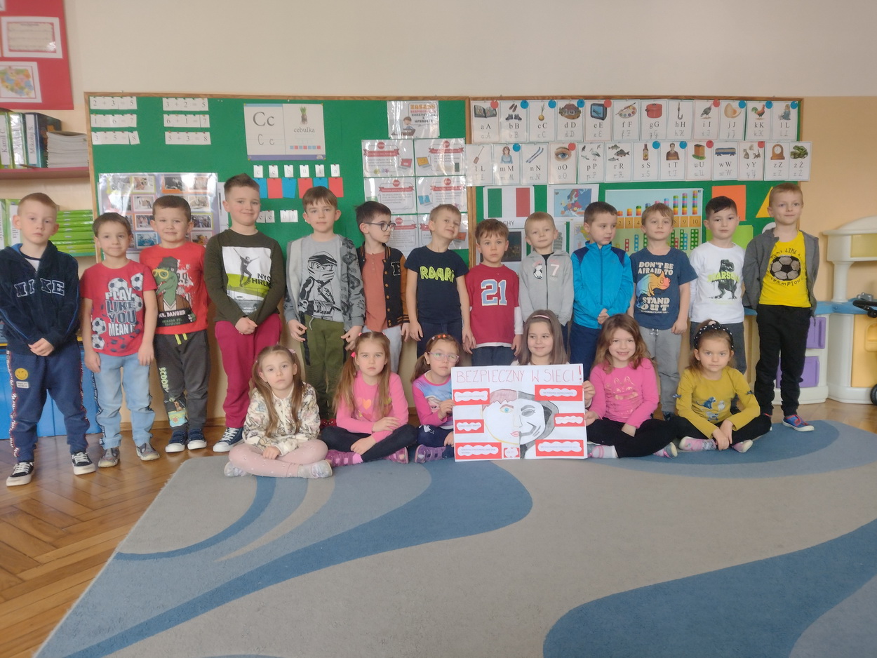 7 lutego starsze grupy przedszkolne obchodziły Dzień Bezpiecznego Internetu. Przedszkolaki zostały zapoznane z podstawowymi zasadami bezpiecznego korzystania z zasobów internetowych. Dzieci doskonale poradziły sobie z quizem dotyczącym Internetu, jego walorów i zagrożeń. Podsumowaniem ustalonych zasad było wykonanie plakatu “Bezpieczny w sieci!”. Wychowankowie na macie do kodowania ułożyli symbol sieci wi-fi, a także stworzyli “własną sieć”, dzięki której mogli wysłać wiadomość do swojego kolegi. Niesamowitą atrakcją, wprowadzającą do świata technologii, było również samodzielne wykonanie laptopów, które ułatwiają komunikację na odległość.