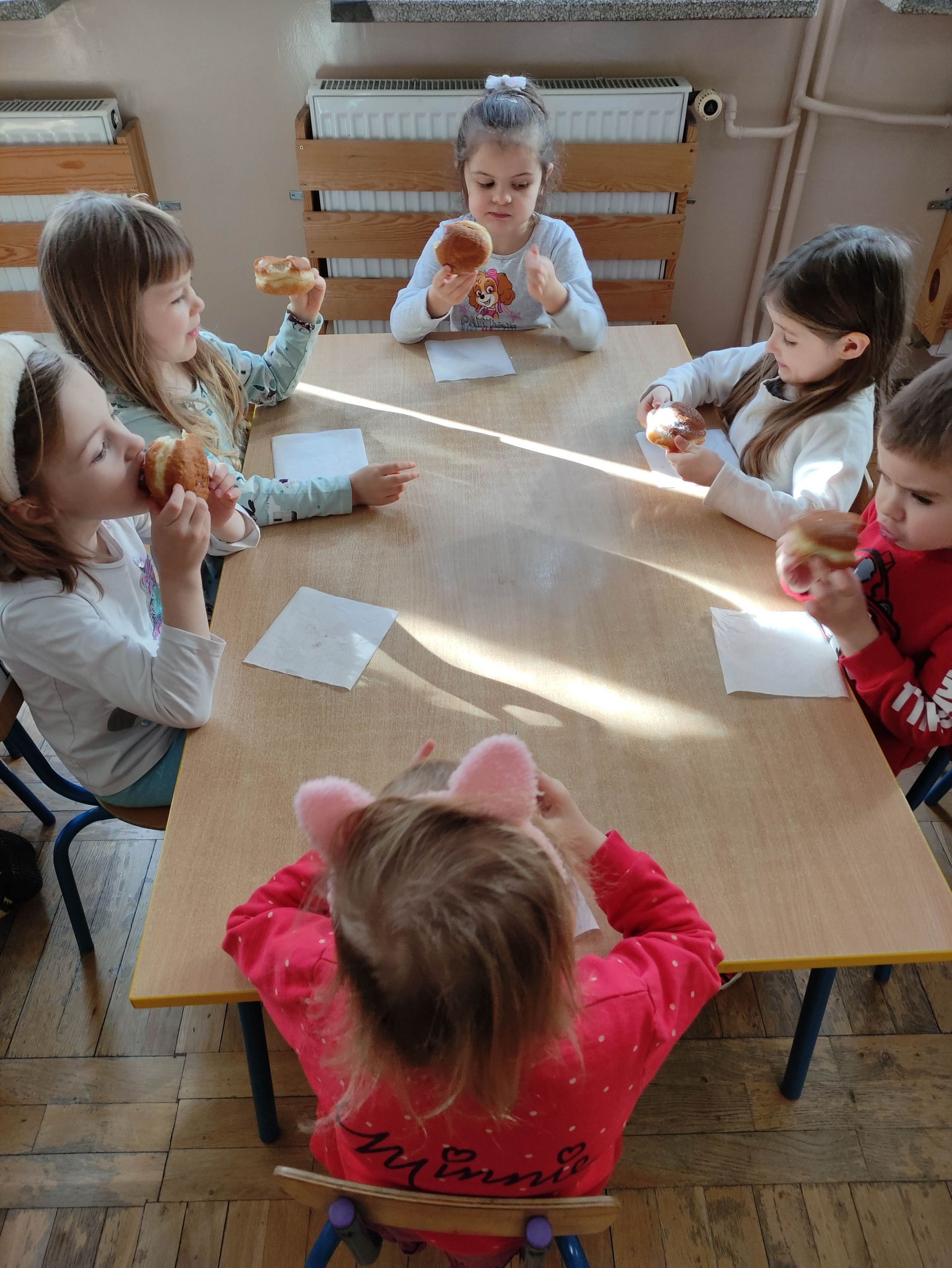 W naszym przedszkolu dbamy o nasze tradycje, te poważne, narodowe, i te bardziej zabawne, ale niezwykle smaczne, jak chociażby Tłusty Czwartek. W tym dniu przedszkolaki z grupy Biedronki wybrały się na wycieczkę do pobliskiej cukierni „U Żyrka”. Dzieci zapoznały się z pracą cukiernika, oglądały dekorowanie tradycyjnych pączków. Oczywiście w naszym przedszkolu nie zabrakło pysznych, puszystych i pachnących smakołyków. Przedszkolaki z wszystkich grup jednogłośnie stwierdziły, że Tłusty Czwartek to wyjątkowo smaczne święto!