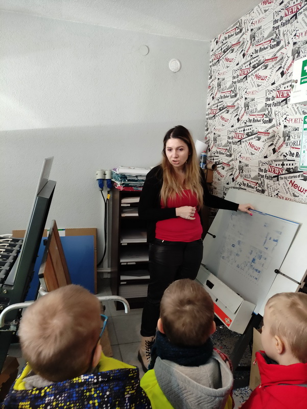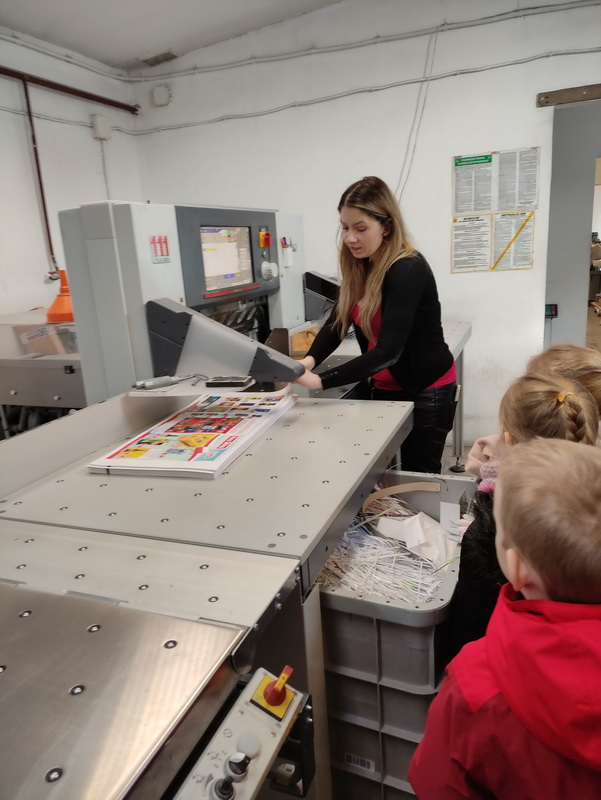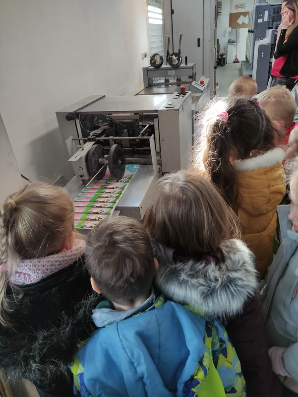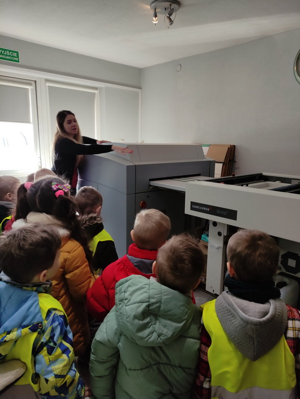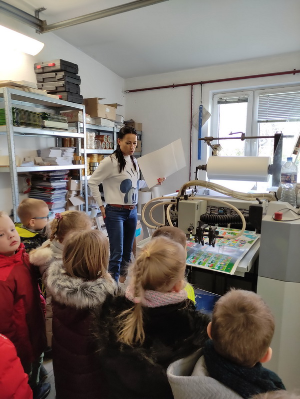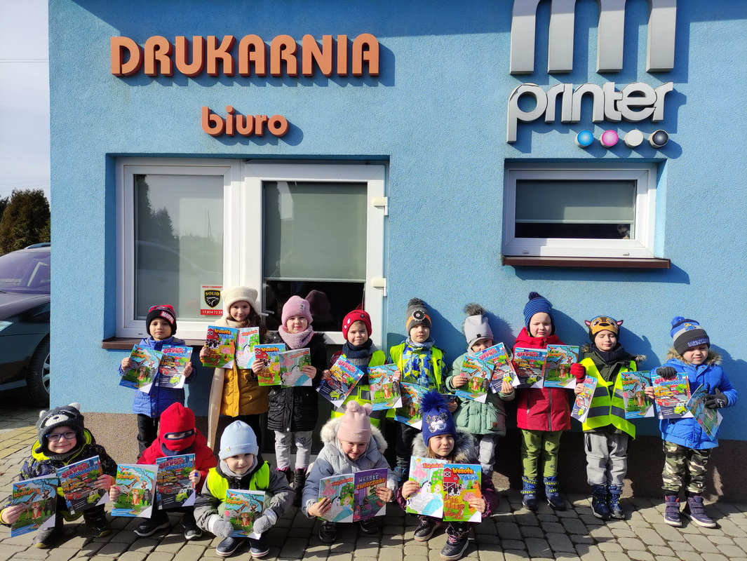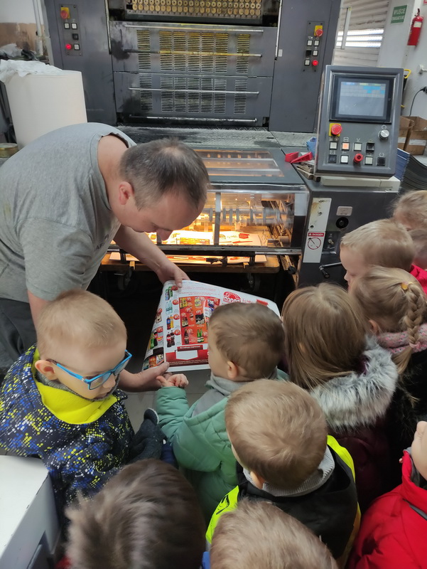Przedszkolaki z grupy Biedronki udały się do drukarni „RM-PRINTER” w Rzeszowie. Głównym celem wizyty było zapoznanie z pracą drukarza oraz z etapami powstawania książki czy gazetki. Dzieci po raz pierwszy mogły zobaczyć profesjonalne maszyny poligraficzne. Wszyscy z zaciekawieniem słuchali opowieści o tym, jaką drogę musi pokonać biała, pusta kartka, aby zamienić się w kolorowy druk. Na koniec wycieczki czekała nas miła niespodzianka. Każdy przedszkolak na pamiątkę wizyty w drukarni otrzymał piękne kolorowanki i słodkości.