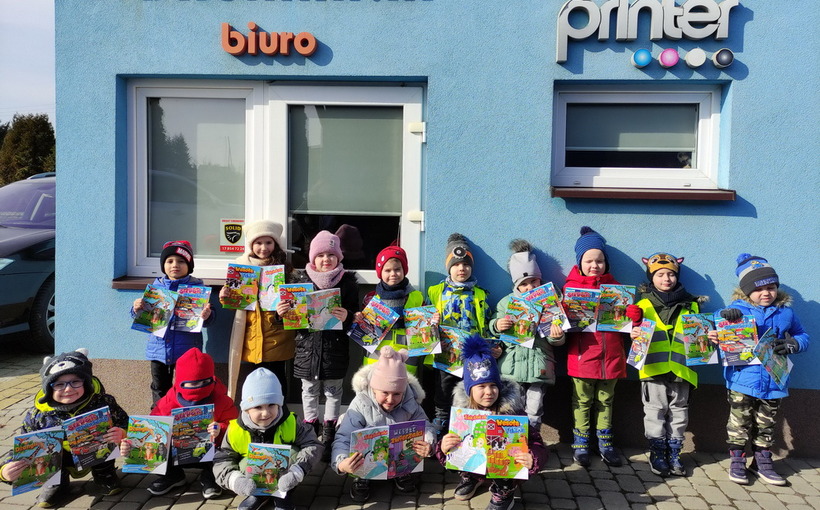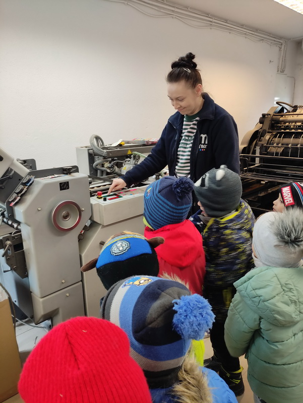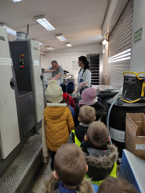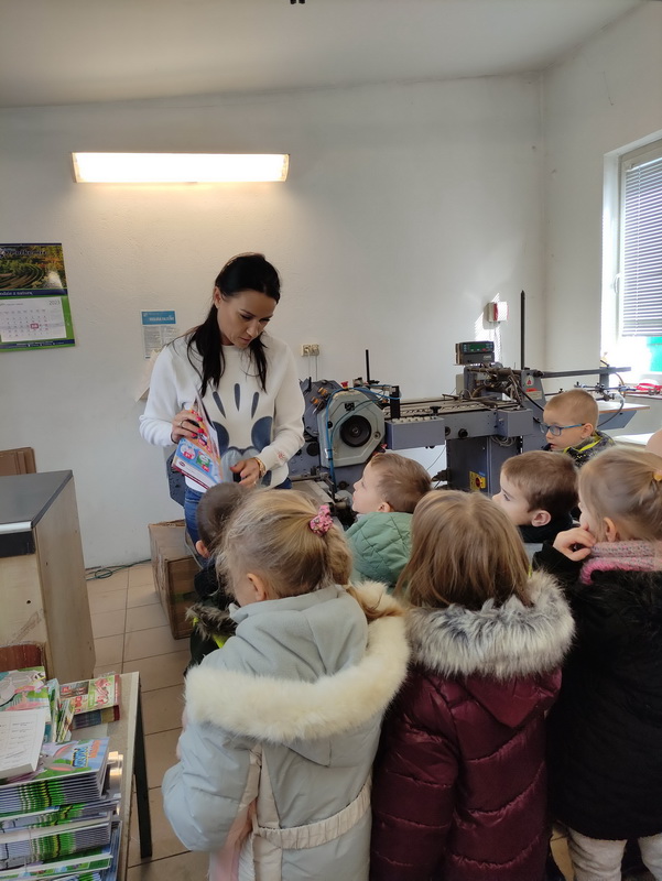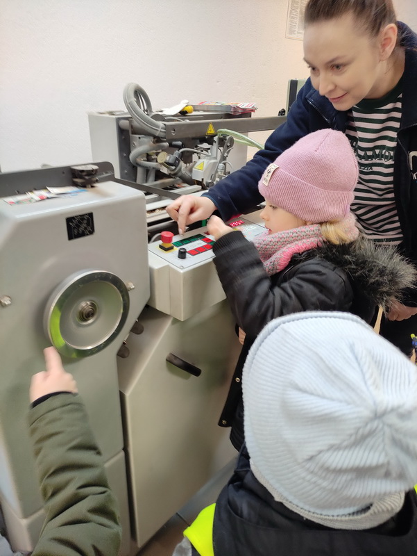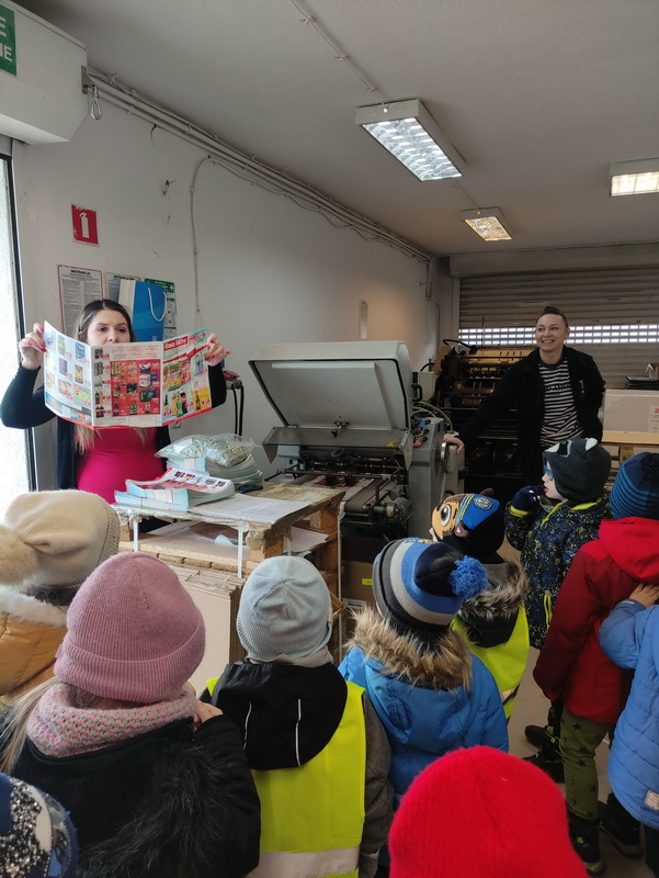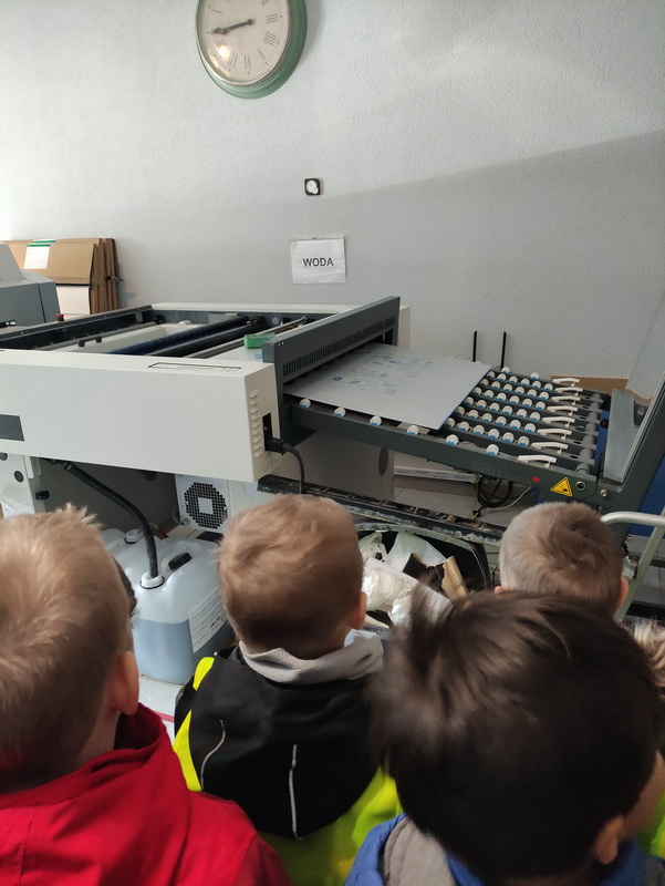 Przedszkolaki z grupy Biedronki udały się do drukarni „RM-PRINTER” w Rzeszowie. Głównym celem wizyty było zapoznanie z pracą drukarza oraz z etapami powstawania książki czy gazetki. Dzieci po raz pierwszy mogły zobaczyć profesjonalne maszyny poligraficzne. Wszyscy z zaciekawieniem słuchali opowieści o tym, jaką drogę musi pokonać biała, pusta kartka, aby zamienić się w kolorowy druk. Na koniec wycieczki czekała nas miła niespodzianka. Każdy przedszkolak na pamiątkę wizyty w drukarni otrzymał piękne kolorowanki i słodkości.