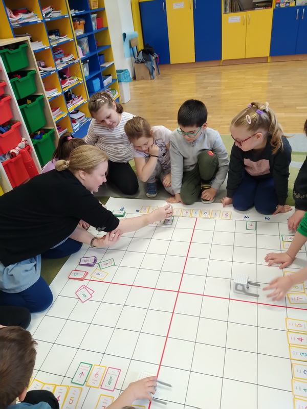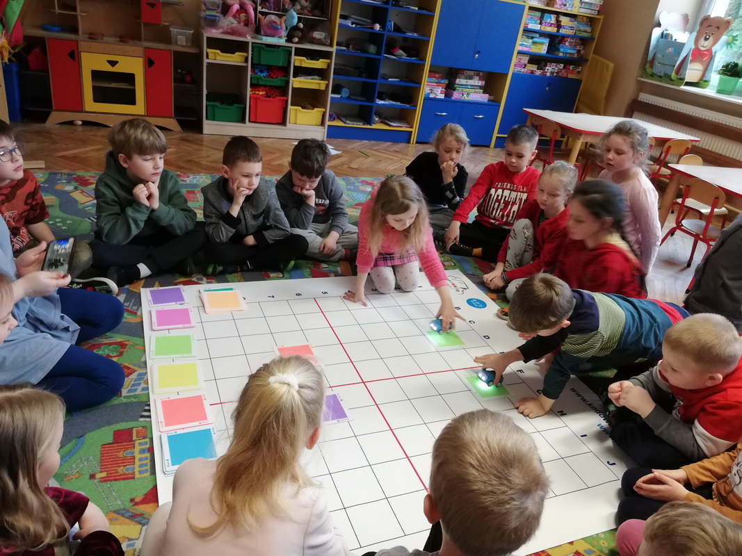 W poniedziałek 27 marca przedszkolaki z grup Smerfy i Pszczółki wzięły udział w warsztatach z kodowania, prowadzonych przez Annę Świć – promotorkę kodowania w całej Polsce. Umiejętności logicznego myślenia i pracy w zespole, a także kreatywność – to cechy promowane we współczesnym świecie dorosłych. Aby człowiek został w nie należycie wyposażony, należy rozpocząć pracę już od najmłodszych lat. Możliwości takie stwarza zabawa zawierająca elementy kodowania.