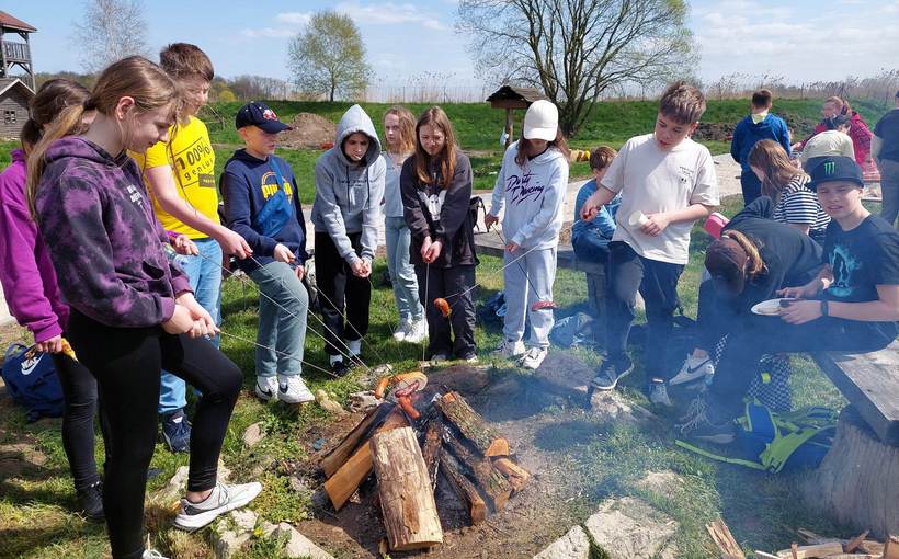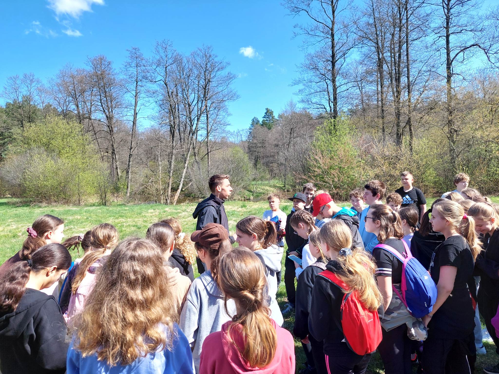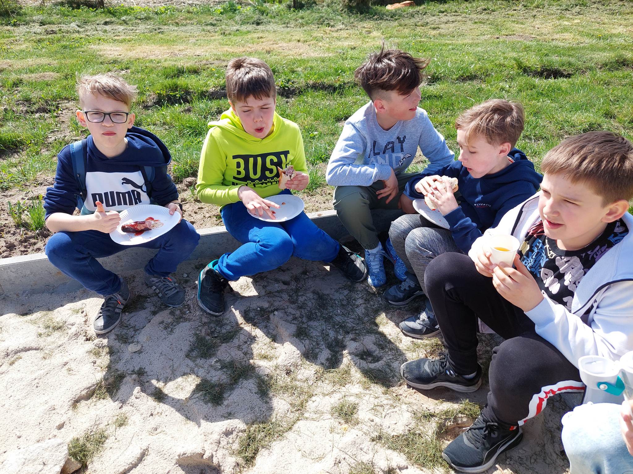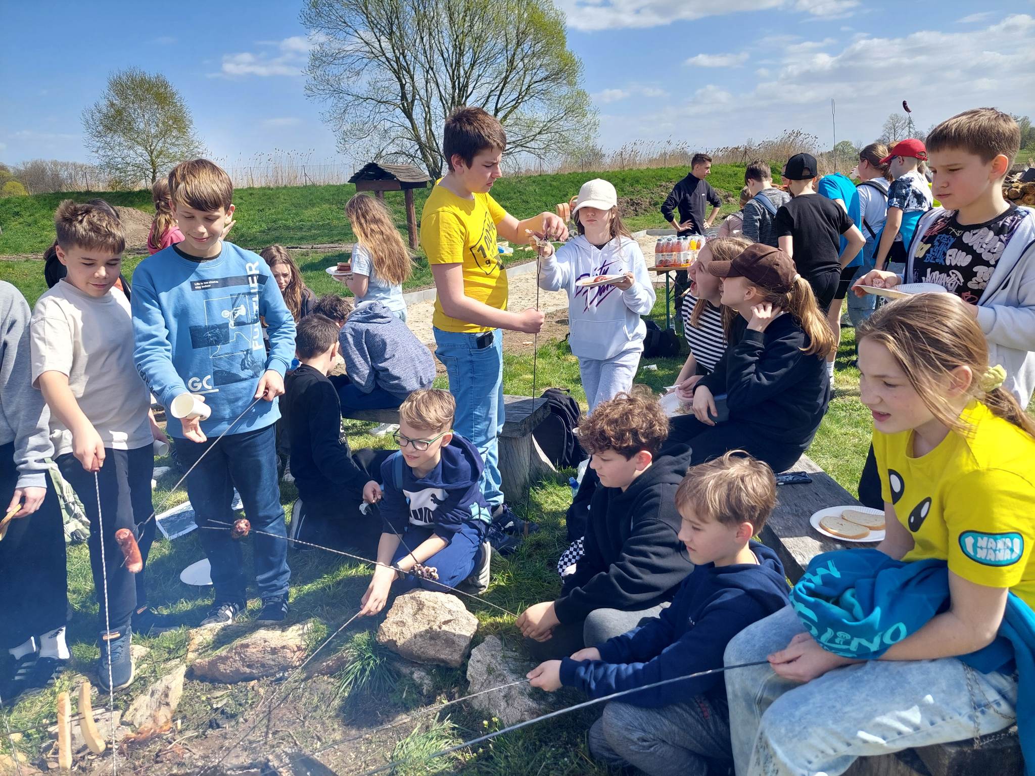 Pierwszym punktem wycieczki był spacer po rezerwacie Szumy nad Tanwią, dowiedzieliśmy się wielu ciekawych rzeczy o walorach tego miejsca i obserwowaliśmy budzącą się do życia przyrodę. Później udaliśmy się do centrum Cieszanowa, gdzie animatorzy zorganizowali dla nas grę miejską, podczas której należało wykazać się prędkością, sprytem i bacznym obserwowaniem uliczek, wśród których się poruszaliśmy. Kiedy dotarliśmy do Teddy-Camp, czekało już na nas ognisko, na którym upiekliśmy pyszne kiełbaski. Po chwili przerwy rozpoczęliśmy grę “Kto ukradł misia”? Dzięki licznym zadaniom sprawnościowym zdobywaliśmy kolejne podpowiedzi prowadzące do rozwiązania zagadki. Okazało się, że miś został skradziony przez Ryszarda, ale ten zdążył już uciec z terenu ośrodka…