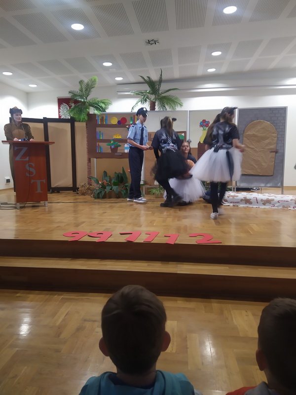 W minioną środę przedszkolaki z dwóch najstarszych grup, Smerfy i Pszczółki, odwiedziły Zespół Szkół Technicznych w Rzeszowie, gdzie uczniowie szkoły zaprezentowali spektakl pt. „Gdy pomocy szukasz właśnie, wybierz numer 112”. Historia pewnej kociej rodziny mieszkającej przy ulicy Mysiej, przypomniała nam niezwykle ważne zasady zachowania się, w sytuacji zagrożenia czyjegoś zdrowia lub życia. Po przedstawieniu przedszkolaki wysłuchały prelekcji przedstawiciela Wydziału Prewencji Komendy Wojewódzkiej Policji w Rzeszowie. Pan policjant przypomniał wszystkim, jak się zachowywać, a czego robić nie wolno, by dzieciom żyło się spokojnie i bezpiecznie. Dziękujemy młodzieży z Zespołu Szkół Technicznych za tę wartościową lekcję.