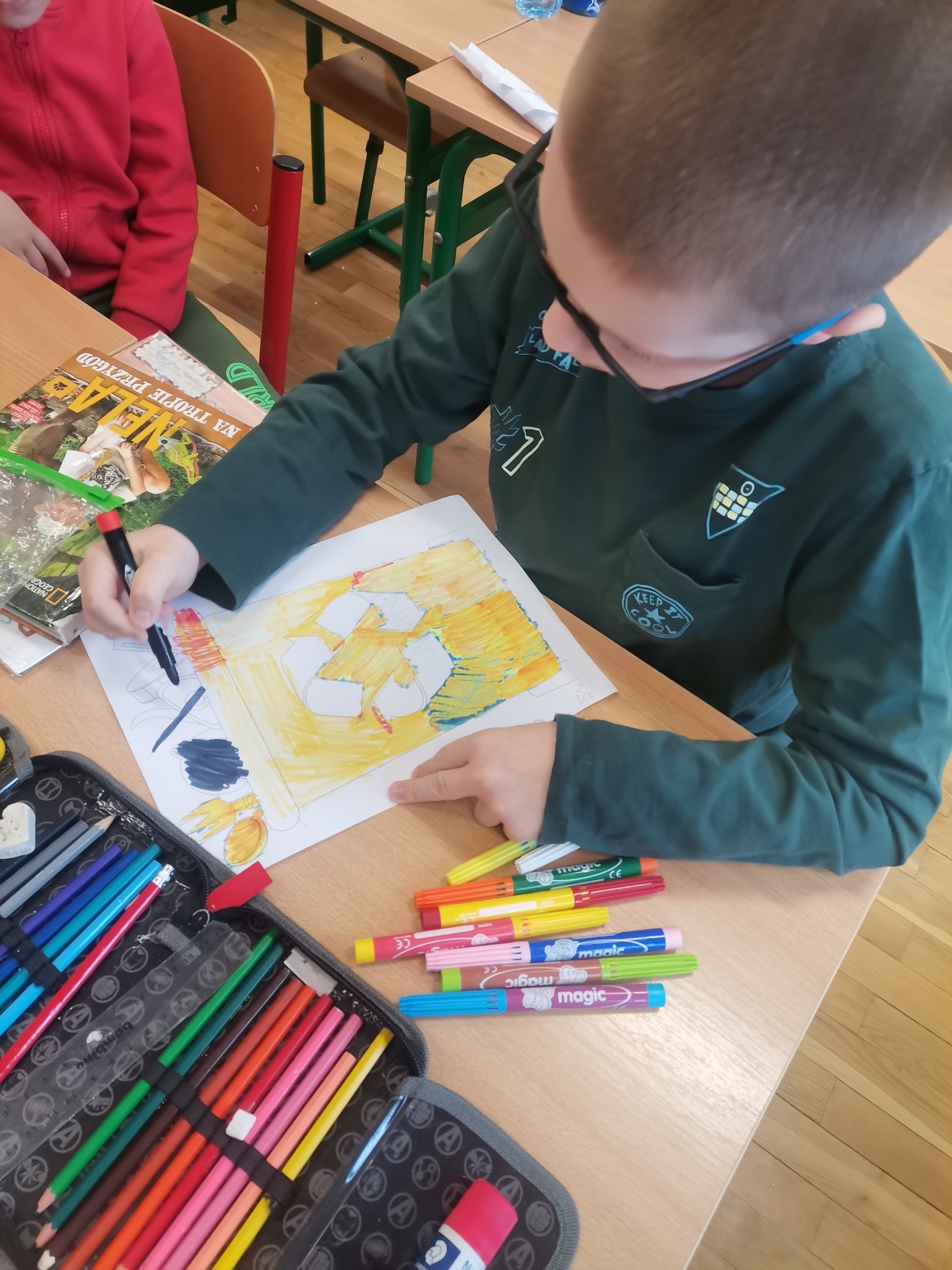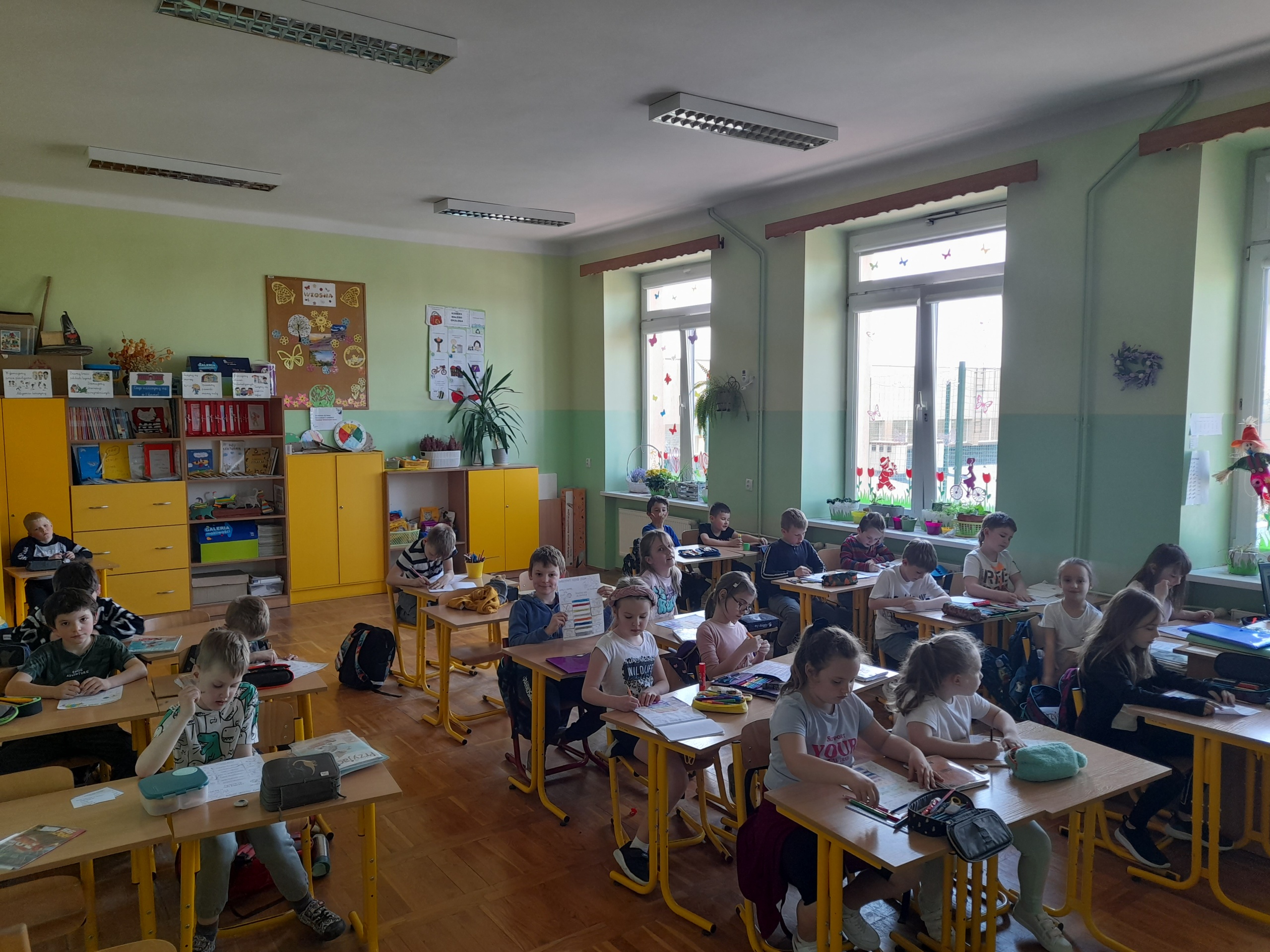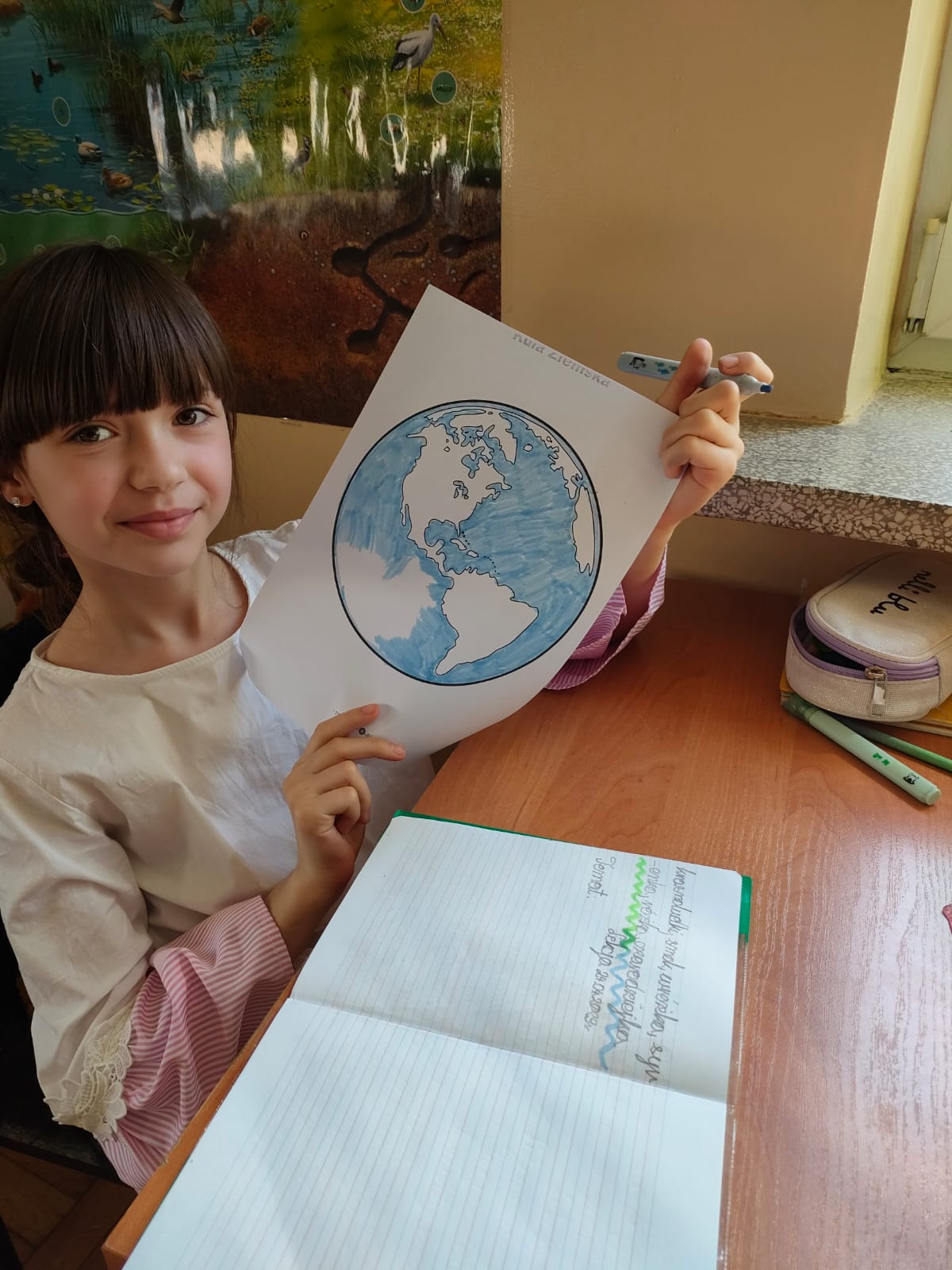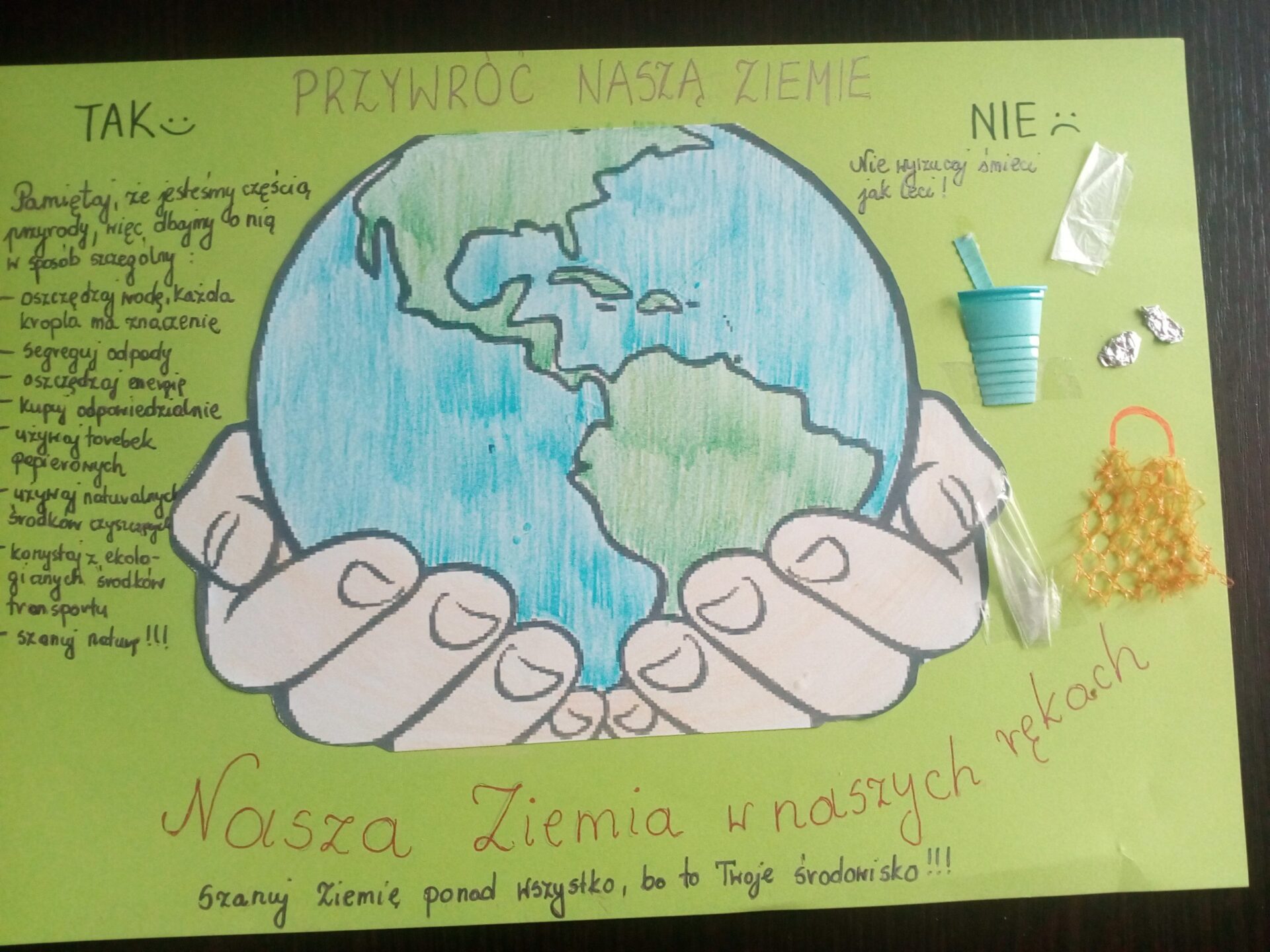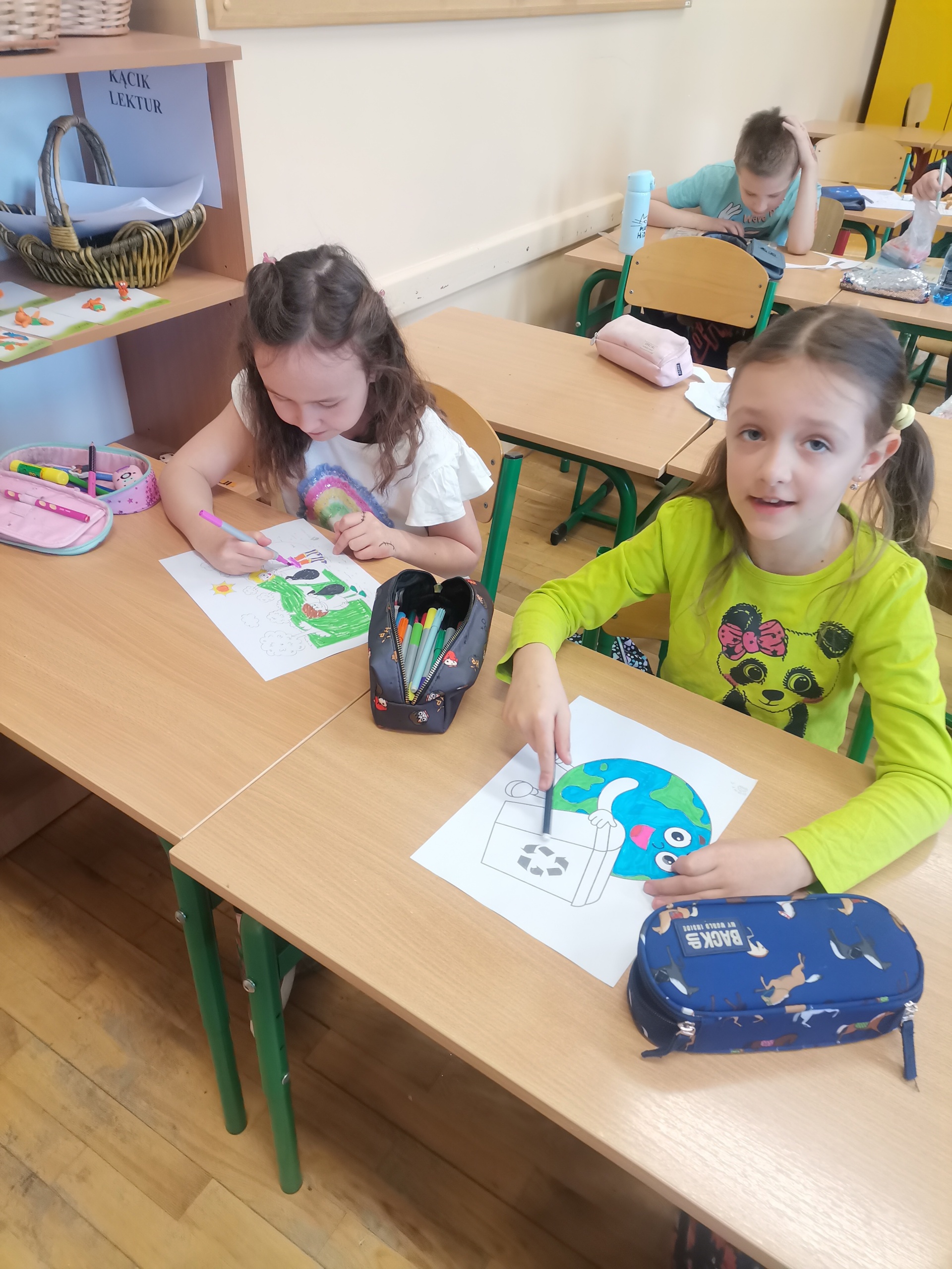 Uczniowie klas 1-3 bardzo aktywnie uczestniczyli w zajęciach poświęconych naszej planecie: rozwiązywali krzyżówki i zagadki ekologiczne, wykonali rysunki przestawiające Ziemię za tysiąc lat. Dzieci wykonały plakaty ,,SOS dla Ziemi” i obejrzały prezentację pt.: ,,Ziemia – nasz dom”, podczas której dowiedziały się, jakie nasza planeta ma dla nas przepiękne dary oraz co ją zatruwa i niszczy.