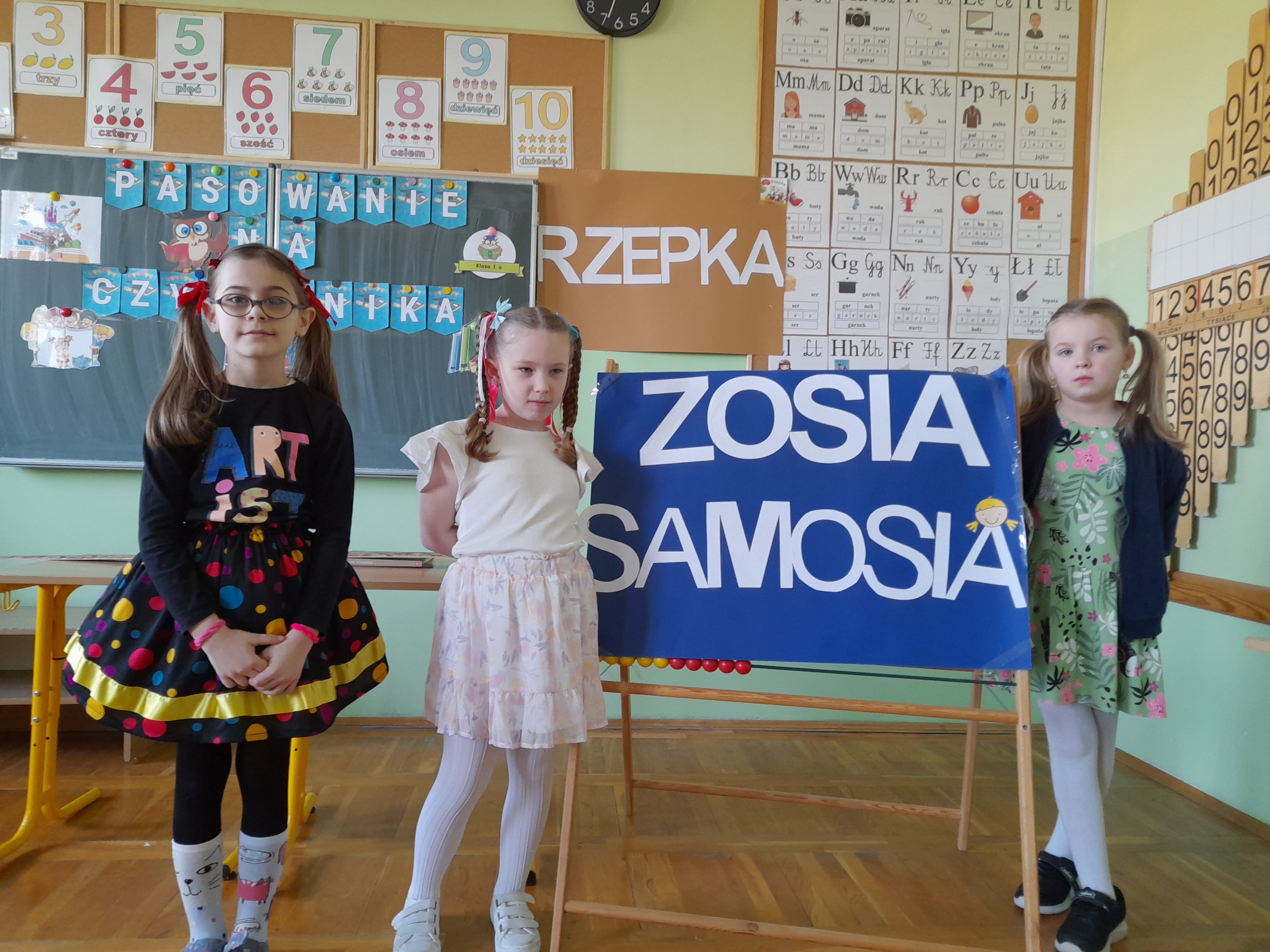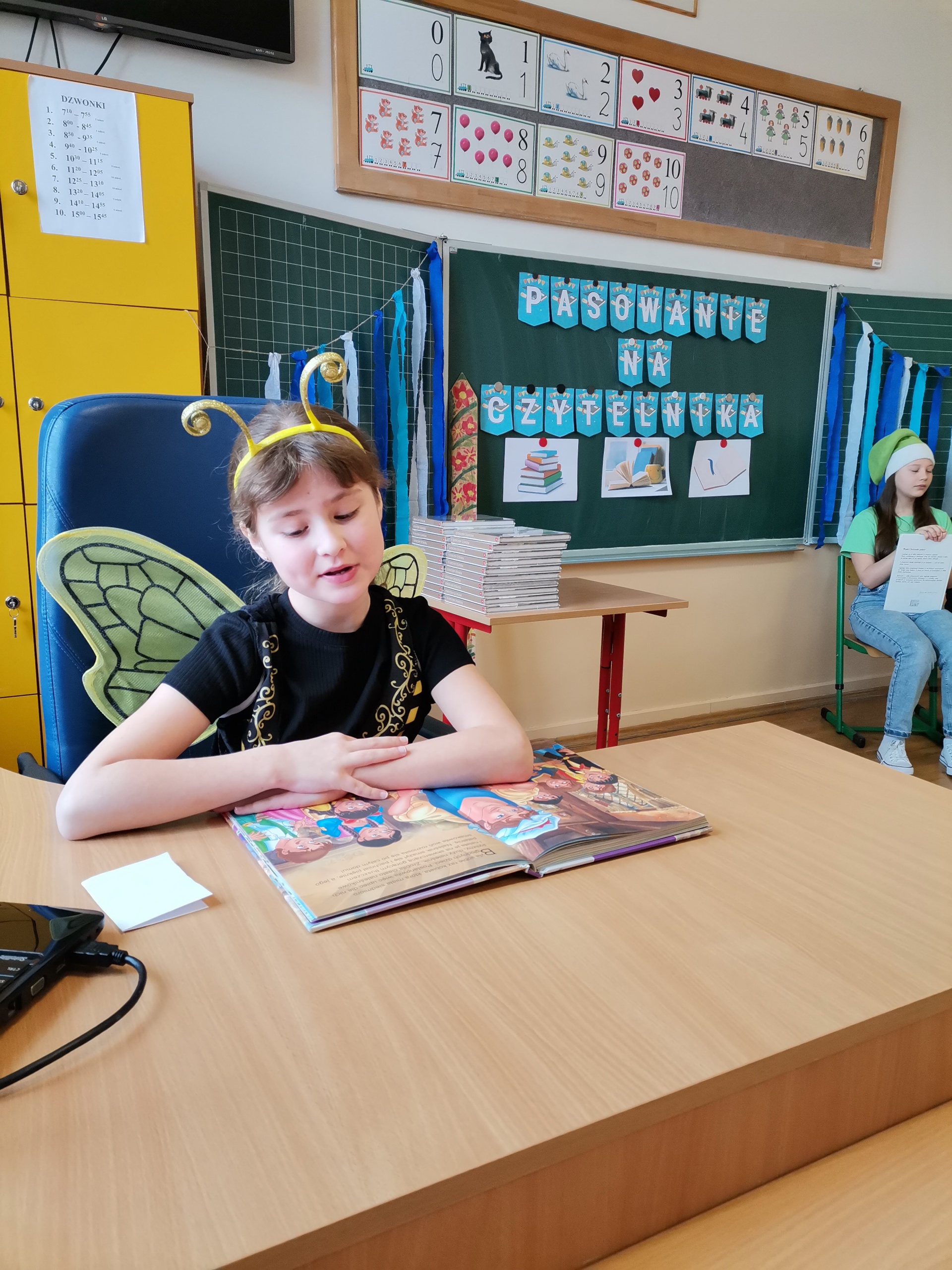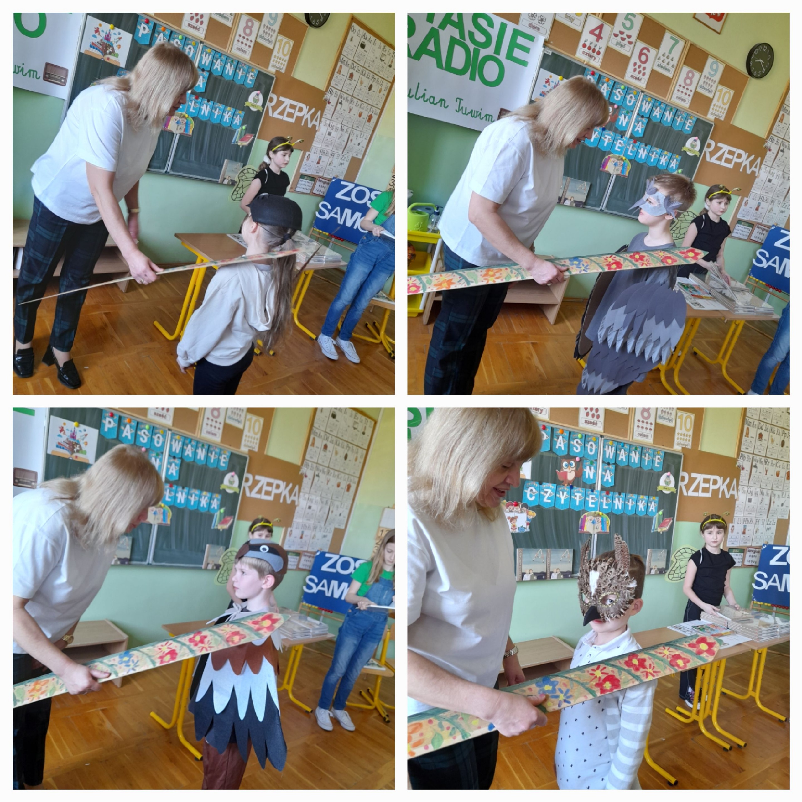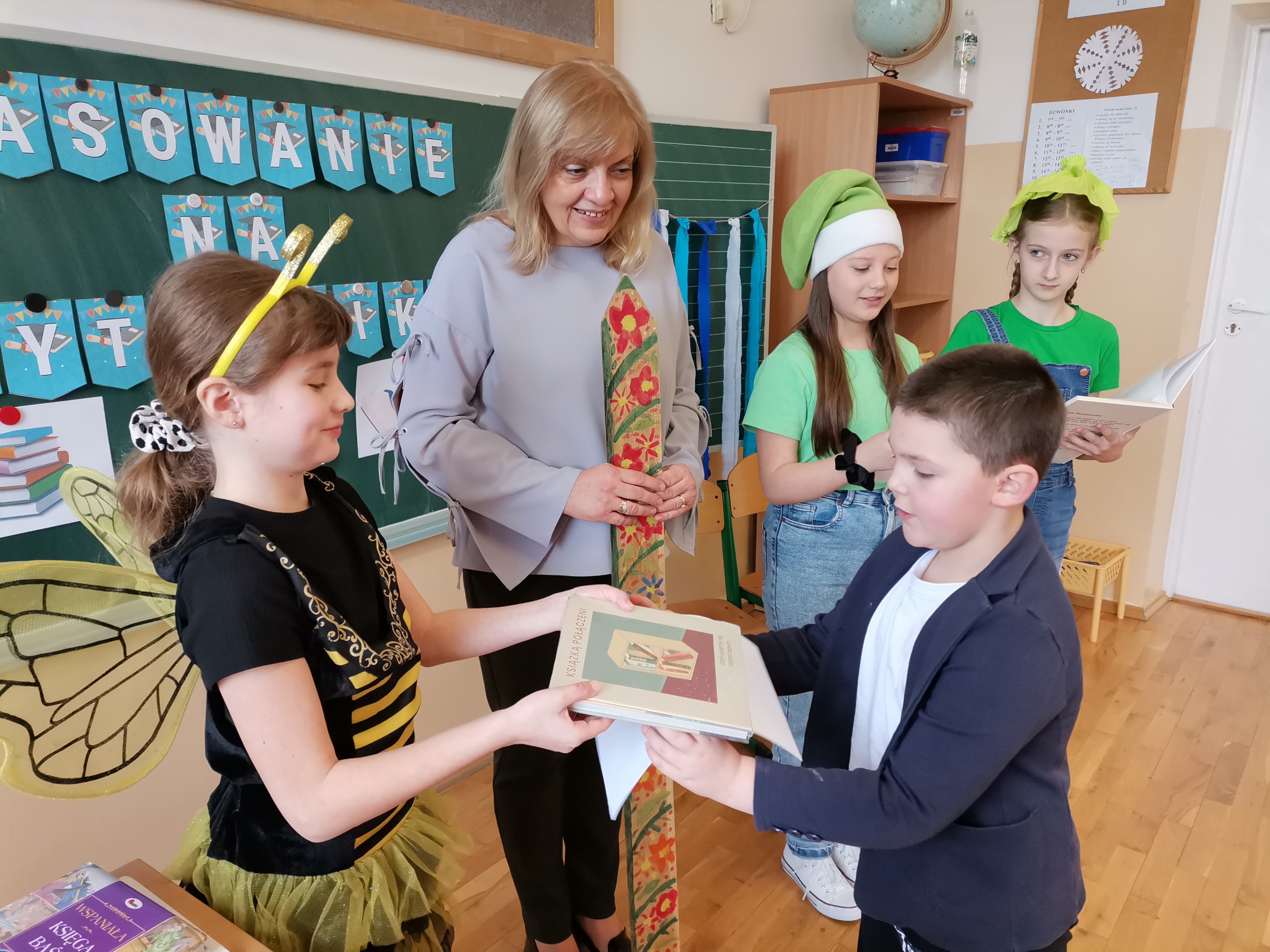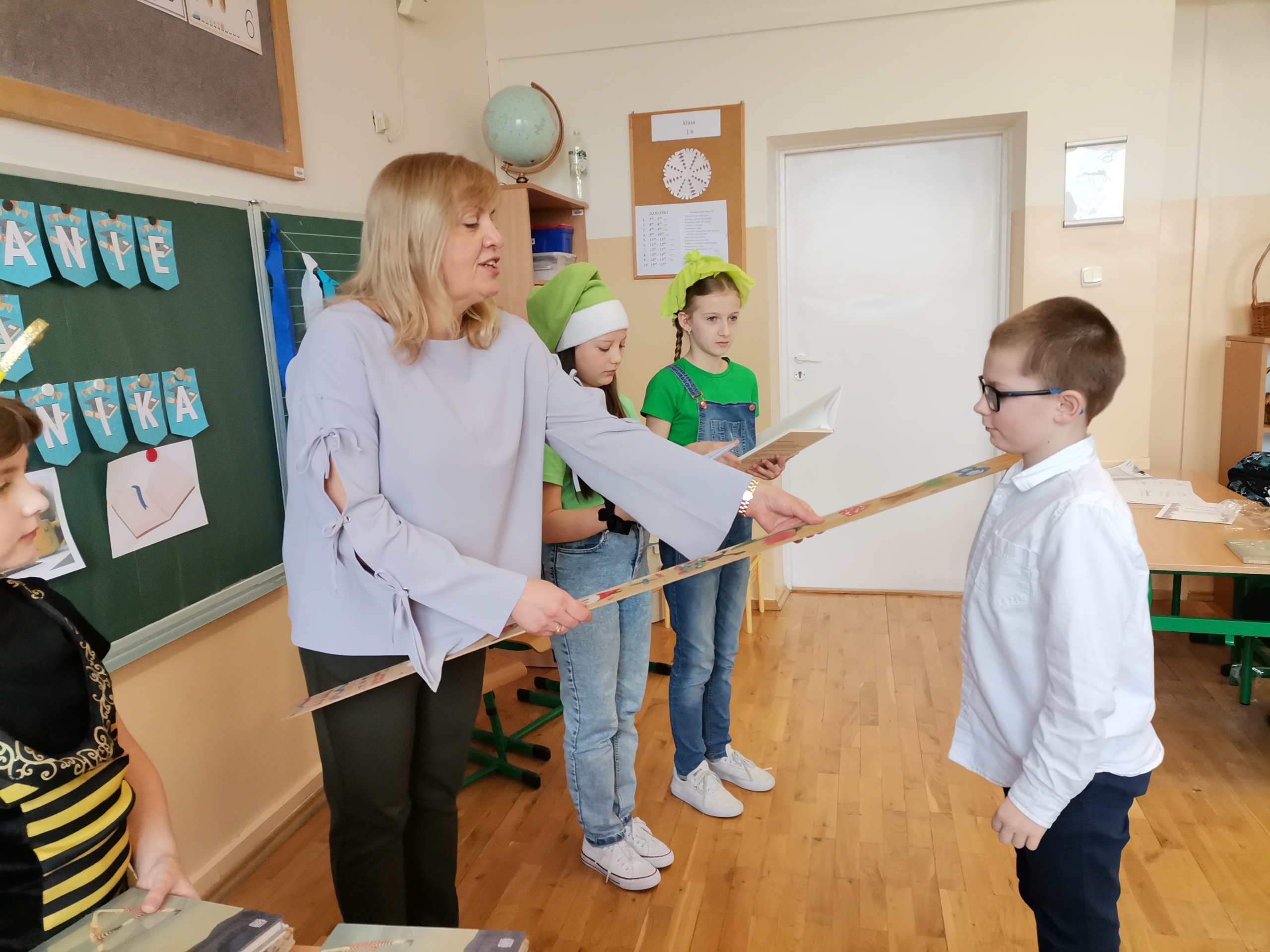 Najmłodsi uczniowie naszej placówki zostali uroczyście przyjęci w poczet czytelników biblioteki szkolnej. Uczniowie podczas uroczystości recytowali wiersze Juliana Tuwima: „Ptasie radio”, „Zosia Samosia”, „Rzepka” oraz z powodzeniem rozwiązywali zagadki związane ze znajomością dziecięcej literatury. Pierwszoklasiści złożyli uroczyste przyrzeczenie, że będą kochać i szanować książki. Od tego momentu uczniowie klas pierwszych stali się pełnoprawnymi czytelnikami biblioteki szkolnej. Na zakończenie uroczystości uczniowie klas pierwszych otrzymali z rąk nauczyciela bibliotekarza pamiątkowe książki.