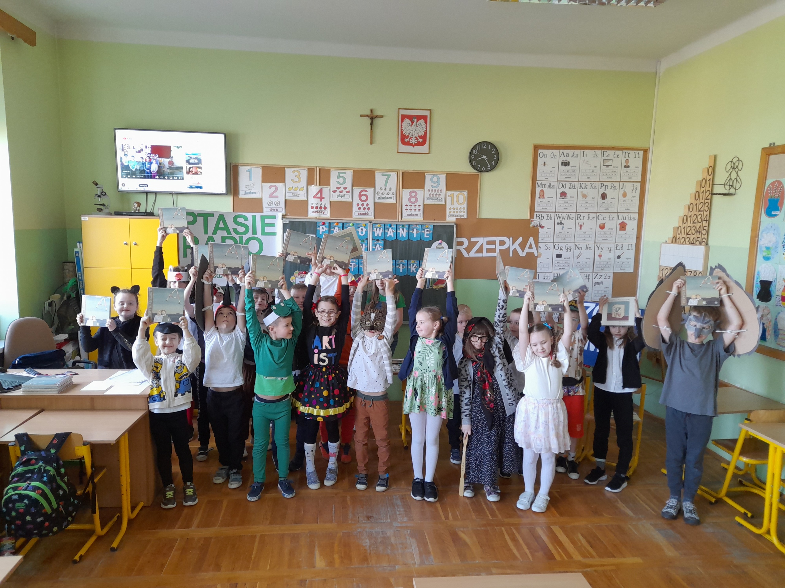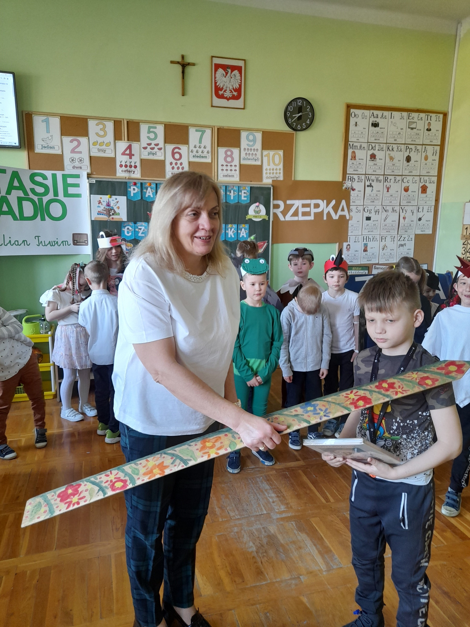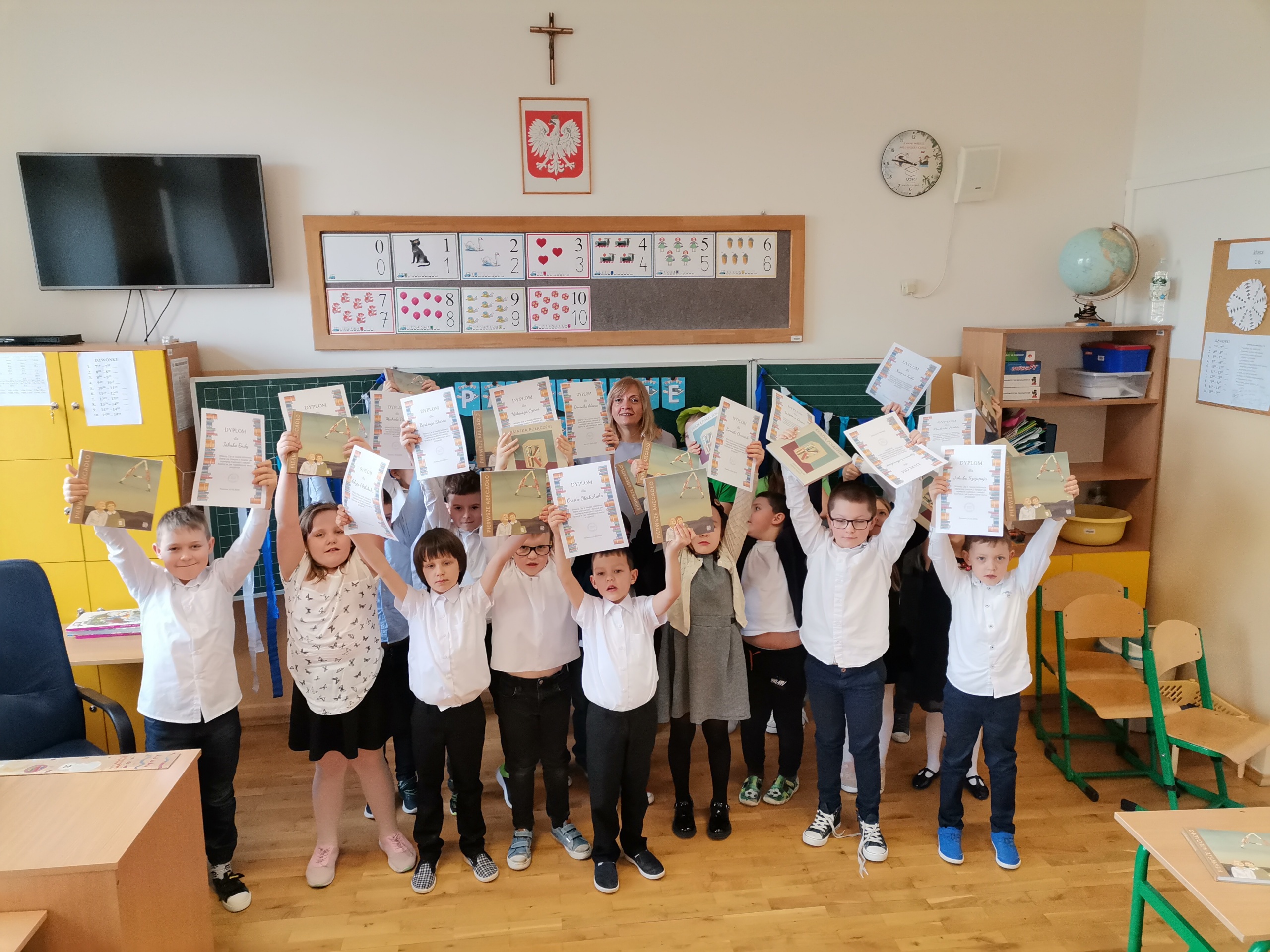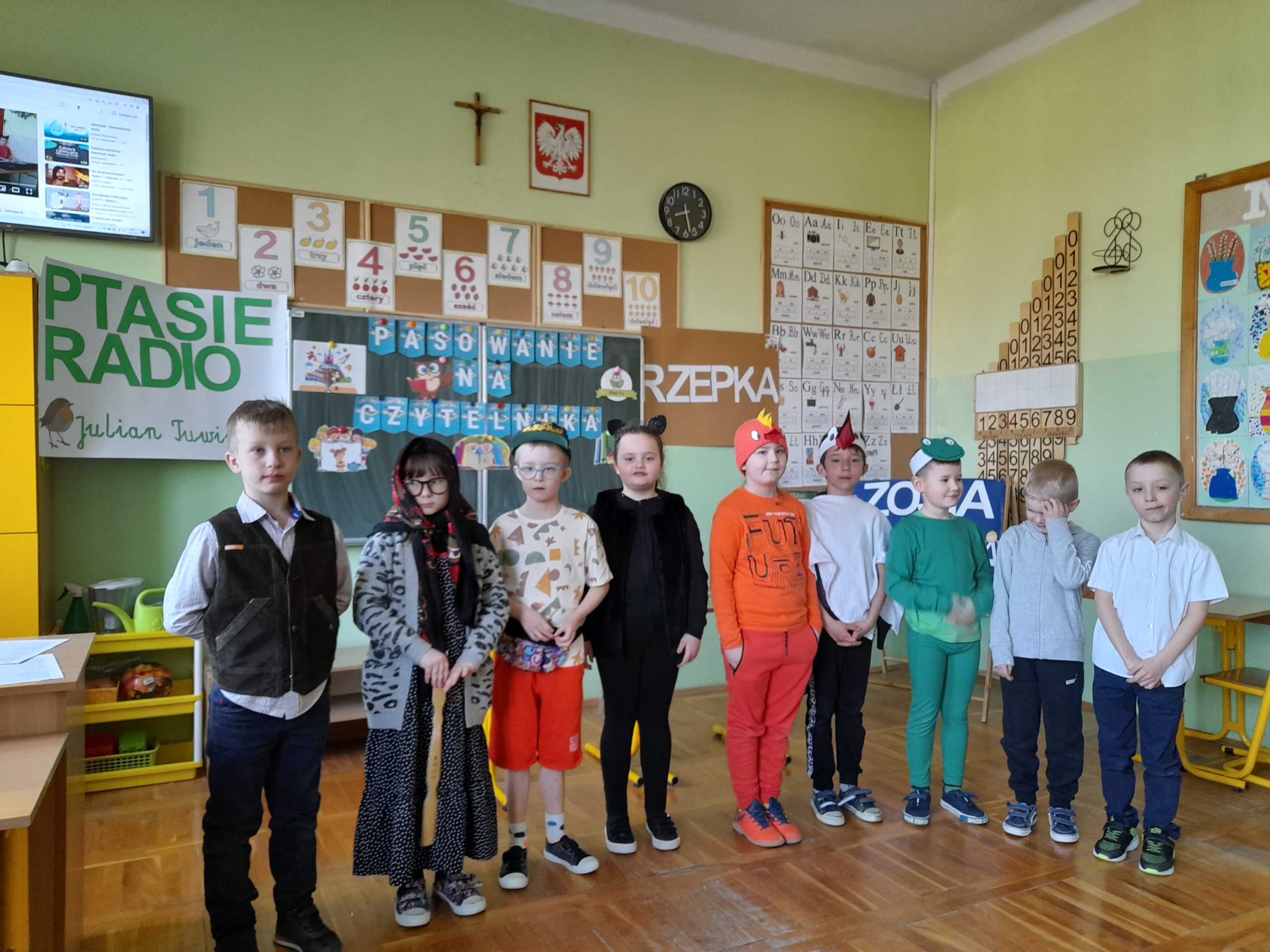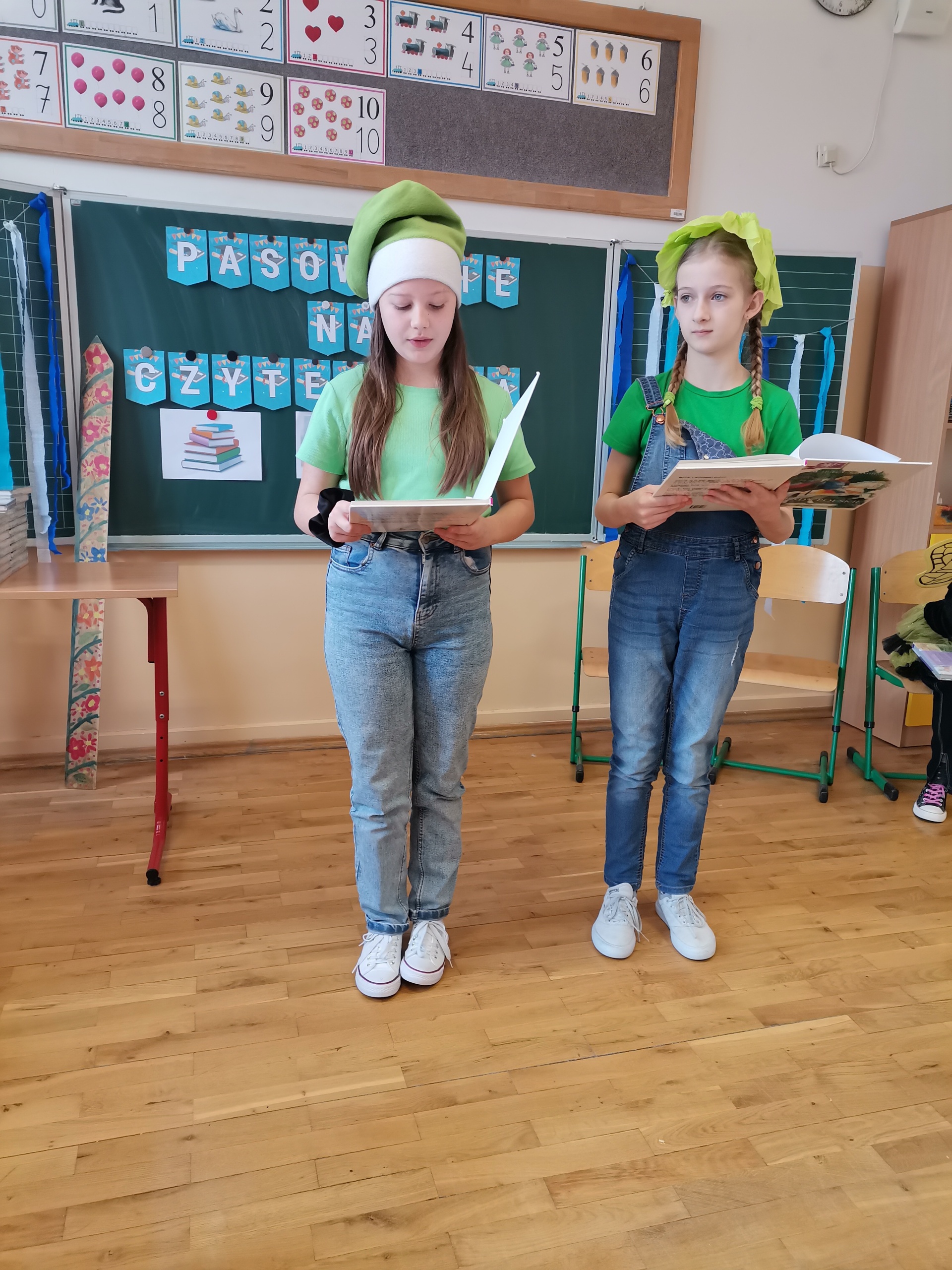 Najmłodsi uczniowie naszej placówki zostali uroczyście przyjęci w poczet czytelników biblioteki szkolnej. Uczniowie podczas uroczystości recytowali wiersze Juliana Tuwima: „Ptasie radio”, „Zosia Samosia”, „Rzepka” oraz z powodzeniem rozwiązywali zagadki związane ze znajomością dziecięcej literatury. Pierwszoklasiści złożyli uroczyste przyrzeczenie, że będą kochać i szanować książki. Od tego momentu uczniowie klas pierwszych stali się pełnoprawnymi czytelnikami biblioteki szkolnej. Na zakończenie uroczystości uczniowie klas pierwszych otrzymali z rąk nauczyciela bibliotekarza pamiątkowe książki.