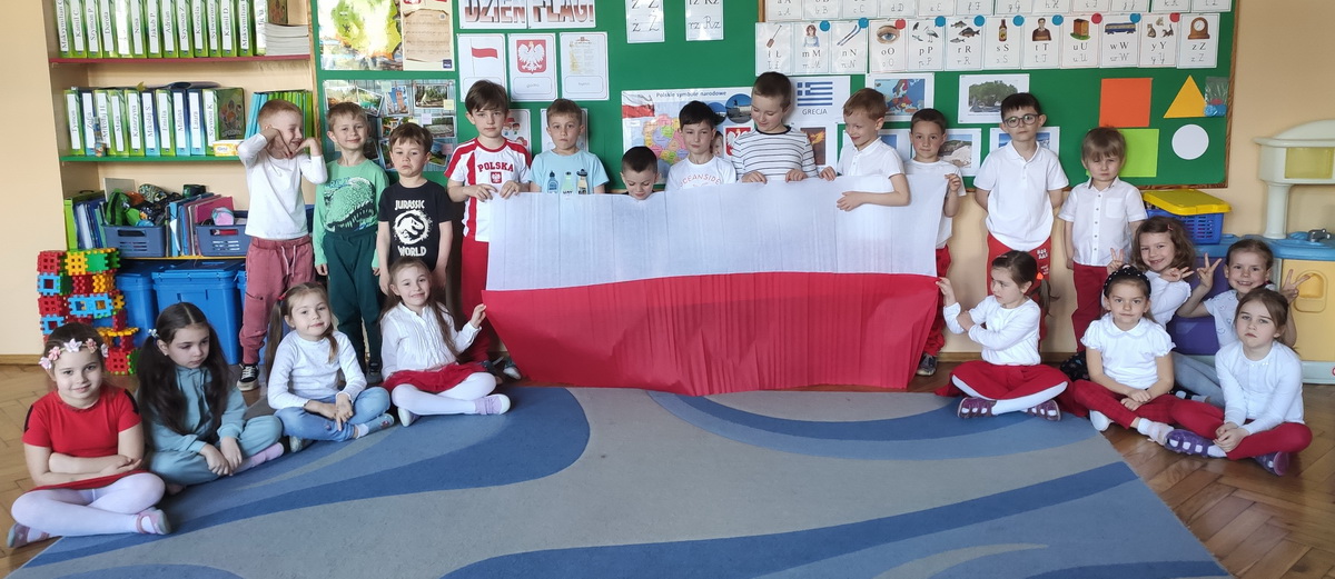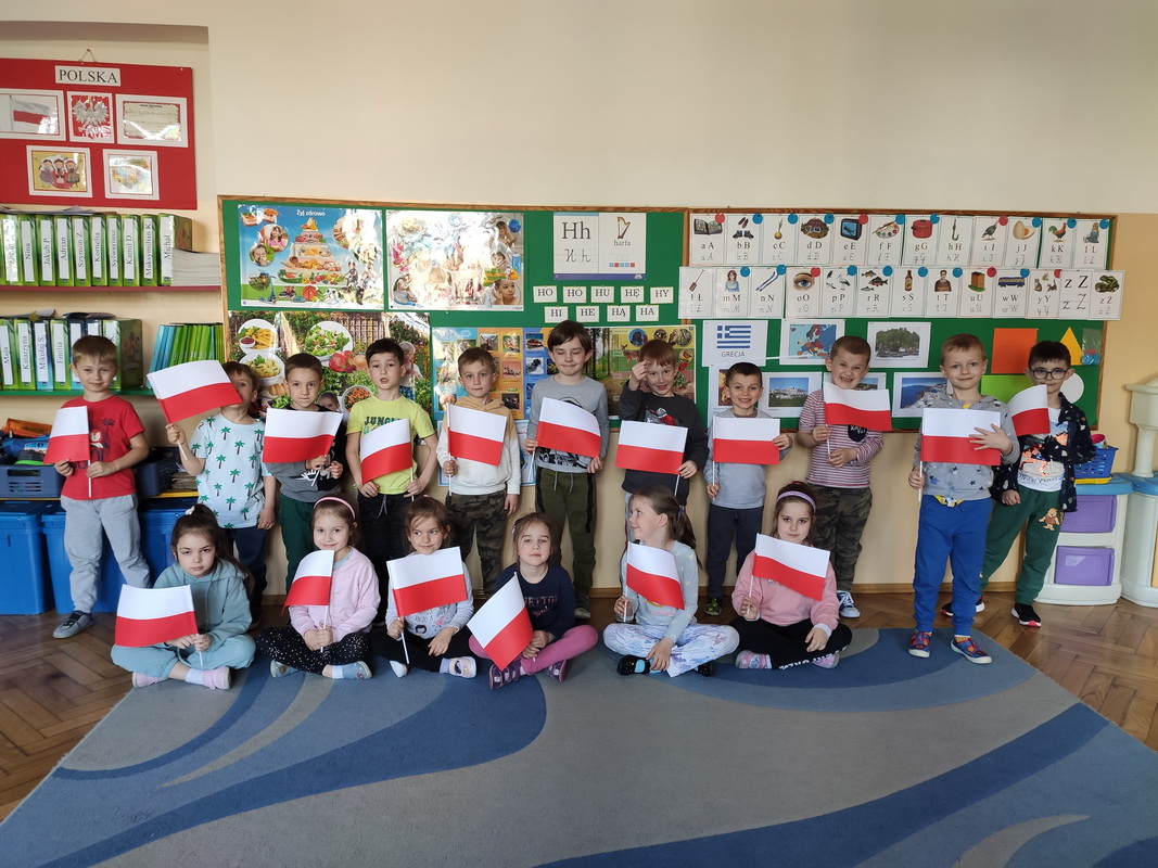 Przedszkolaki w czasie zajęć miały okazję przypomnieć sobie symboliczną wymowę barw polskiej flagi i to, jak symbole narodowe szanować. Słuchały wierszy o Polsce i znanych piosenek. Wspólnie odśpiewały „Mazurka Dąbrowskiego”, oczywiście stojąc na baczność.