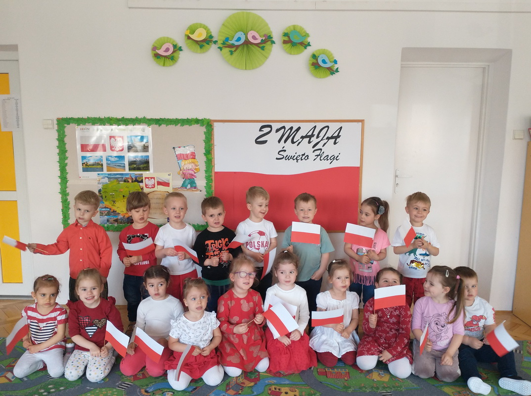 2 maja obchodzony jest Dzień Flagi Rzeczypospolitej Polskiej. Z tej okazji dzieci z naszego przedszkola postanowiły uczcić nasze barwy ojczyste. Po całym tygodniu zajęć poświęconych poznawaniu naszych symboli narodowych i najważniejszych miejsc w Polsce, w każdej grupie wiekowej zorganizowaliśmy skromne obchody tego święta.