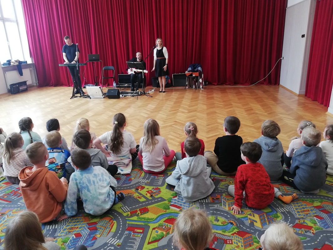 W trakcie naszego majowego spotkania z artystami Filharmonii Podkarpackiej, dzieci z przedszkola dowiedziały się, w jaki sposób tworzone są piosenki. Pan Bartek przedstawił wszystkie tajniki nagrywania poszczególnych instrumentów – tak, żeby powstała z nich całość, która na końcu tego skomplikowanego procesu stworzy piękną piosenkę. Przedszkolaki odkryły, czym tak naprawdę są fale dźwiękowe i czy można je obserwować, tak jak fale na morzu. Wszyscy byli niezwykle zainteresowani ciekawostkami z majowego spotkania.